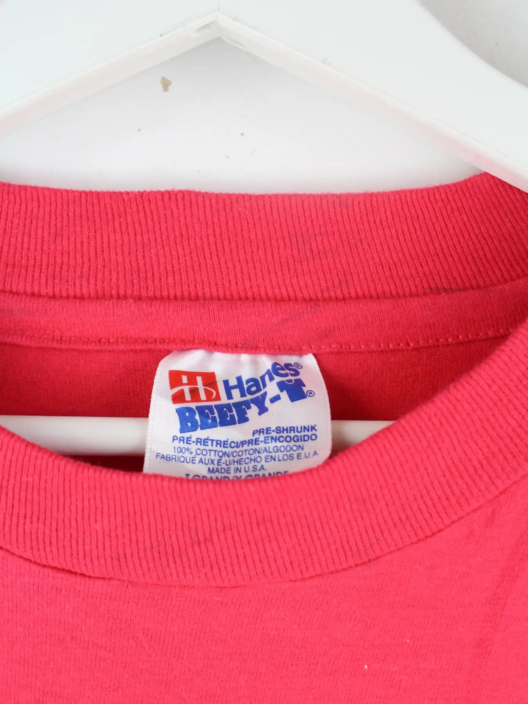 Rotes T-Shirt aus dem Hause Hanes aus den 90'ern in Größe XXL. Es ist aus Baumwolle gefertigt. Den Zustand würden wir als 'In Ordnung' bezeichnen (vergl. Bilder).Mit schickem Clinton Print.