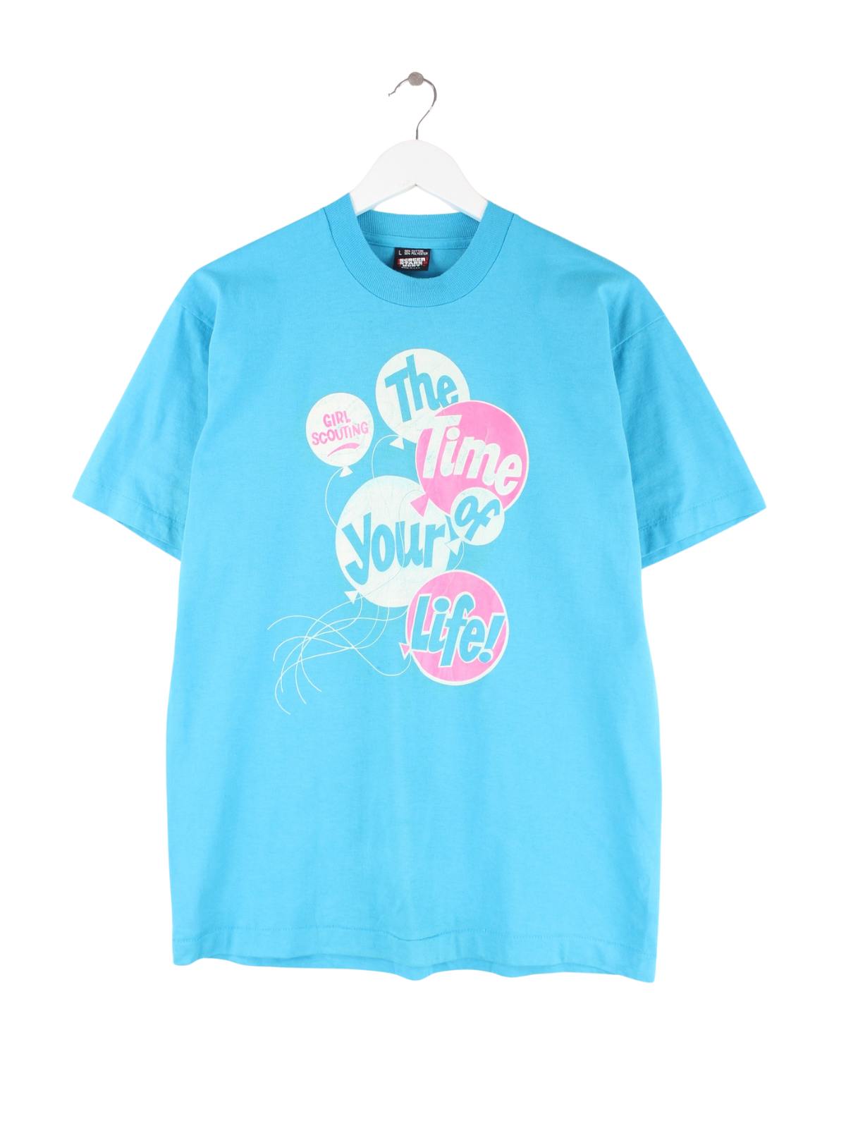 Screen Stars 90s Vintage Time Of Life Print Single Stitch T-Shirt Blau L