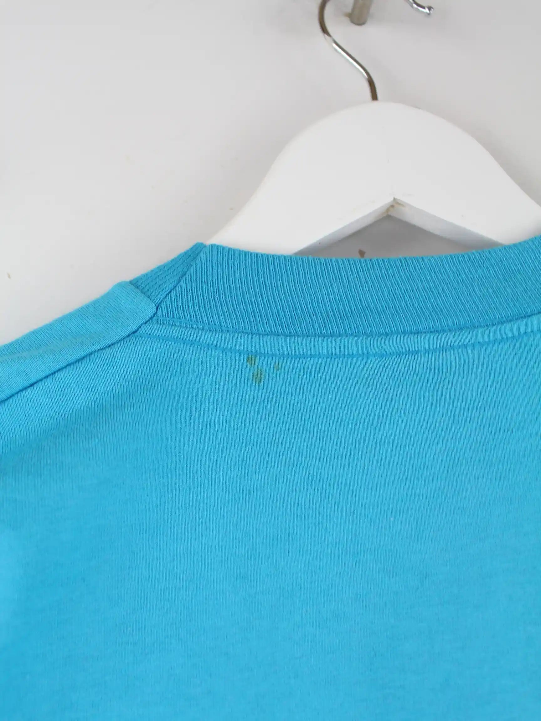 Blaues T-Shirt aus dem Hause Screen Stars aus den 90'ern in Größe L. Es ist aus Baumwolle hergestellt. Den Zustand würden wir als 'In Ordnung' bezeichnen (vergl. Bilder).Mit seltenem Life Print.