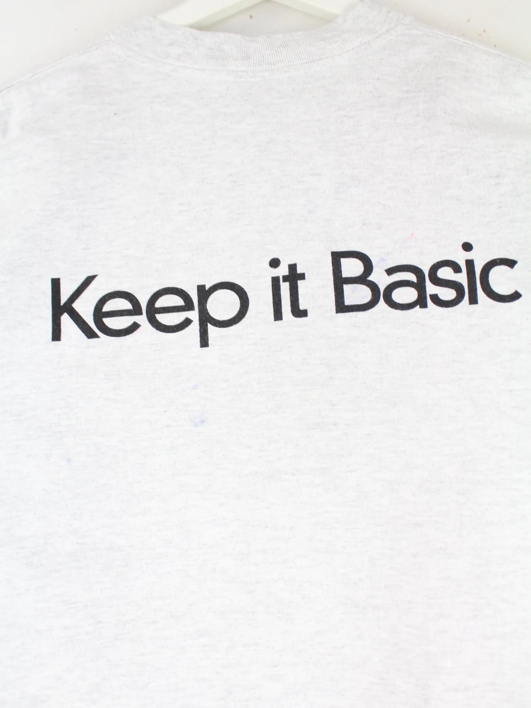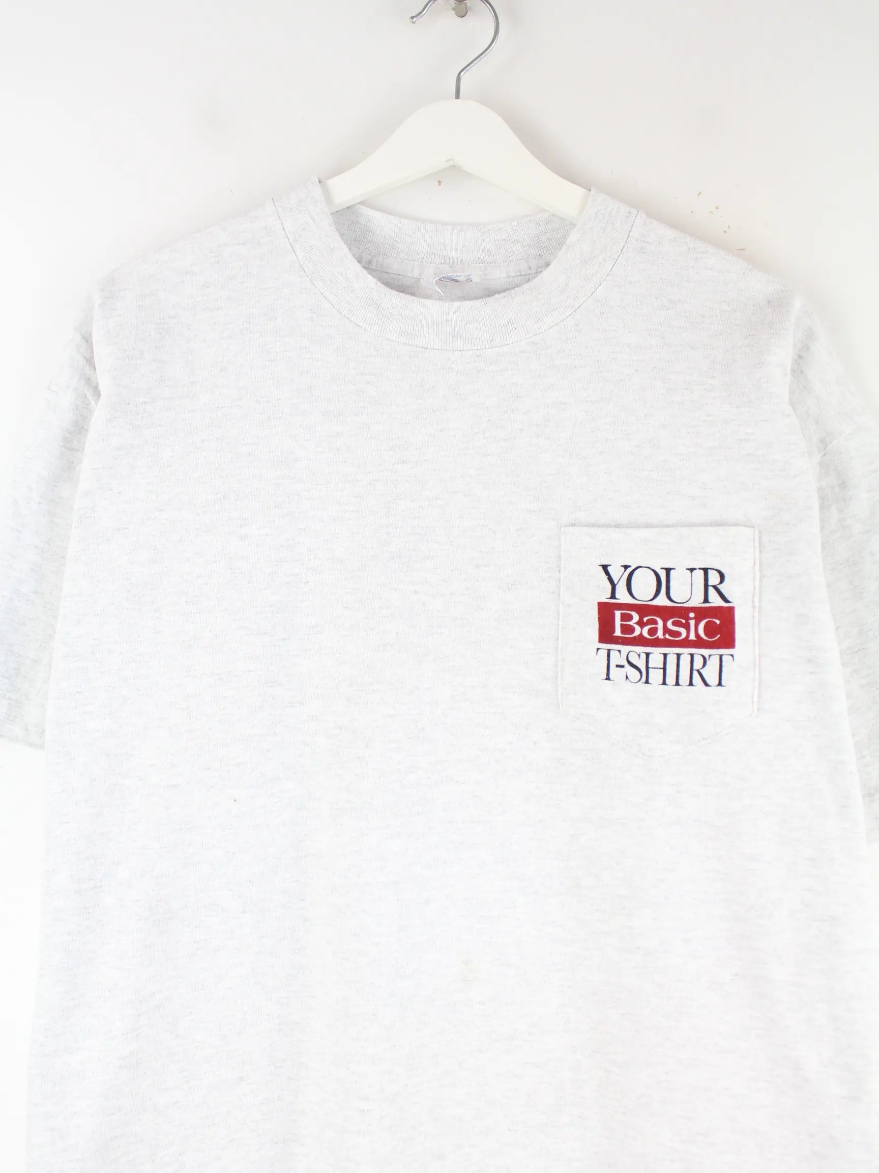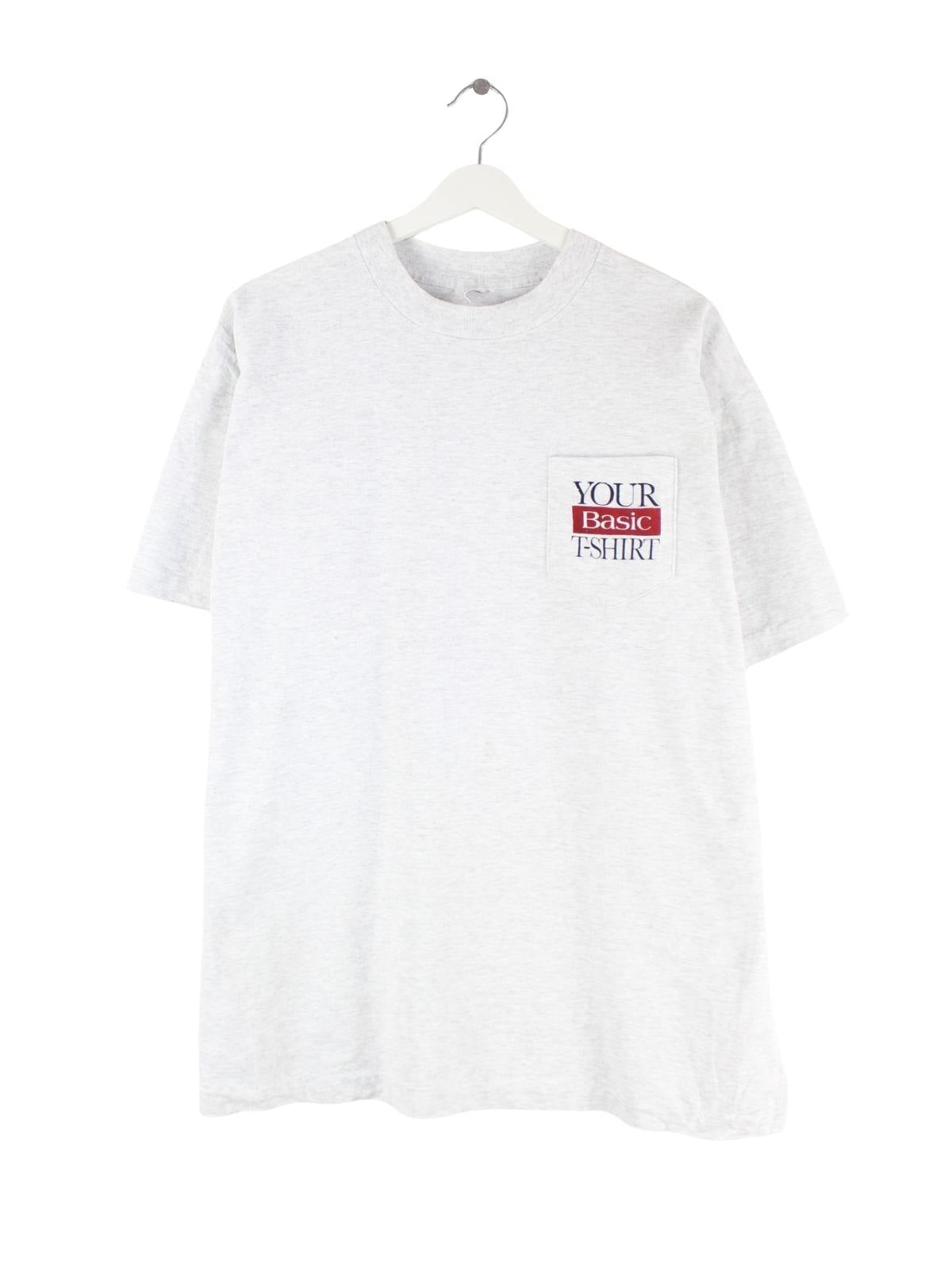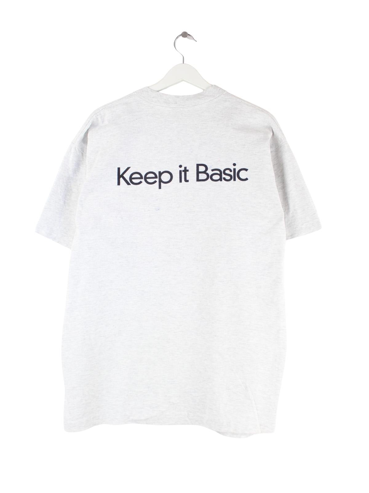 Vintage T-Shirt in Größe XL aus den 90'ern. Es ist aus Baumwolle hergestellt und in Grau lieferbar. Mit schönem Basic Print.