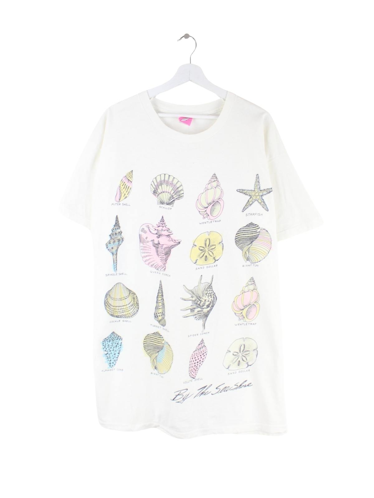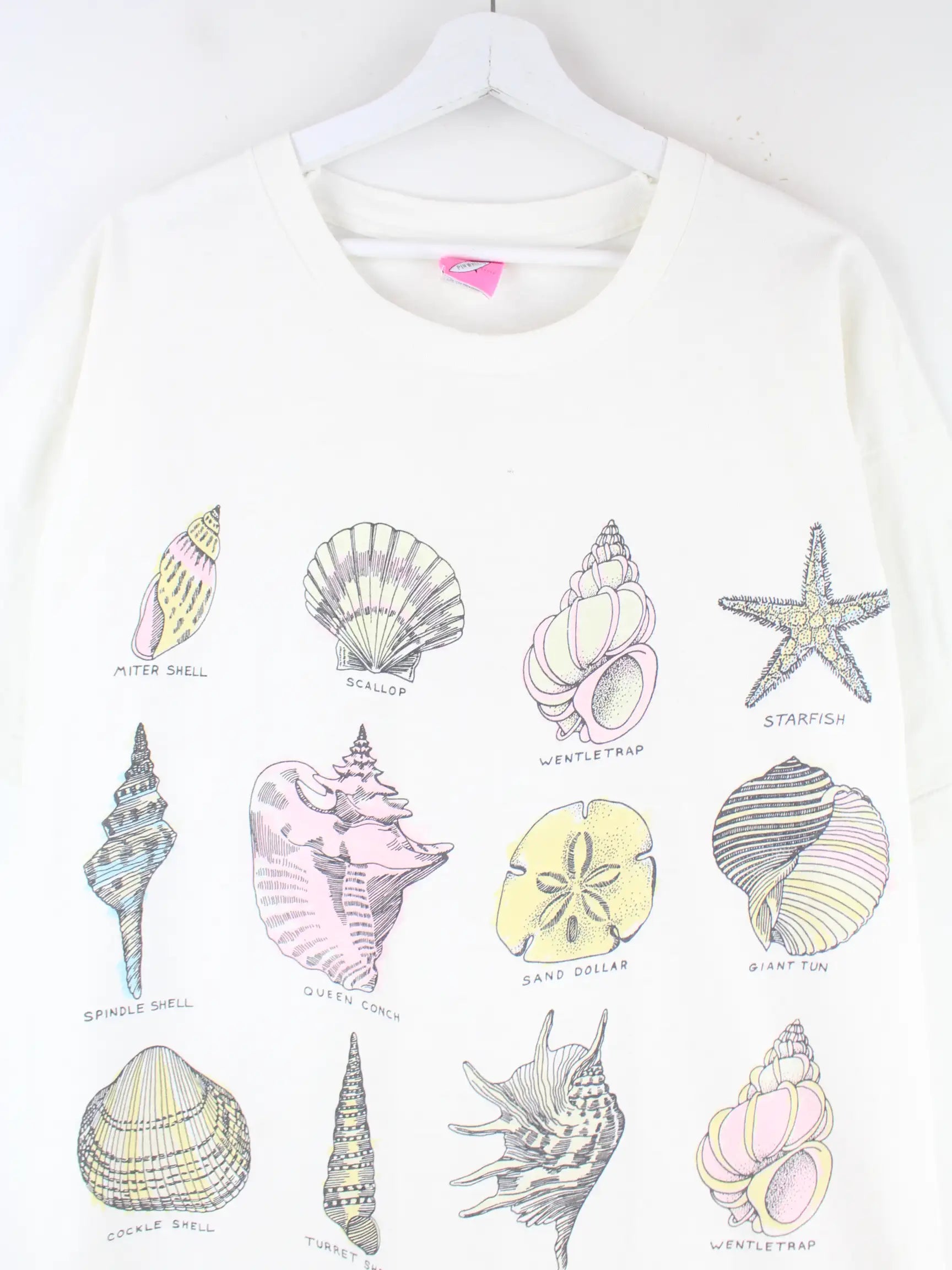 Vintage 90s Seashell Print Single Stitch T-Shirt Weiß XL