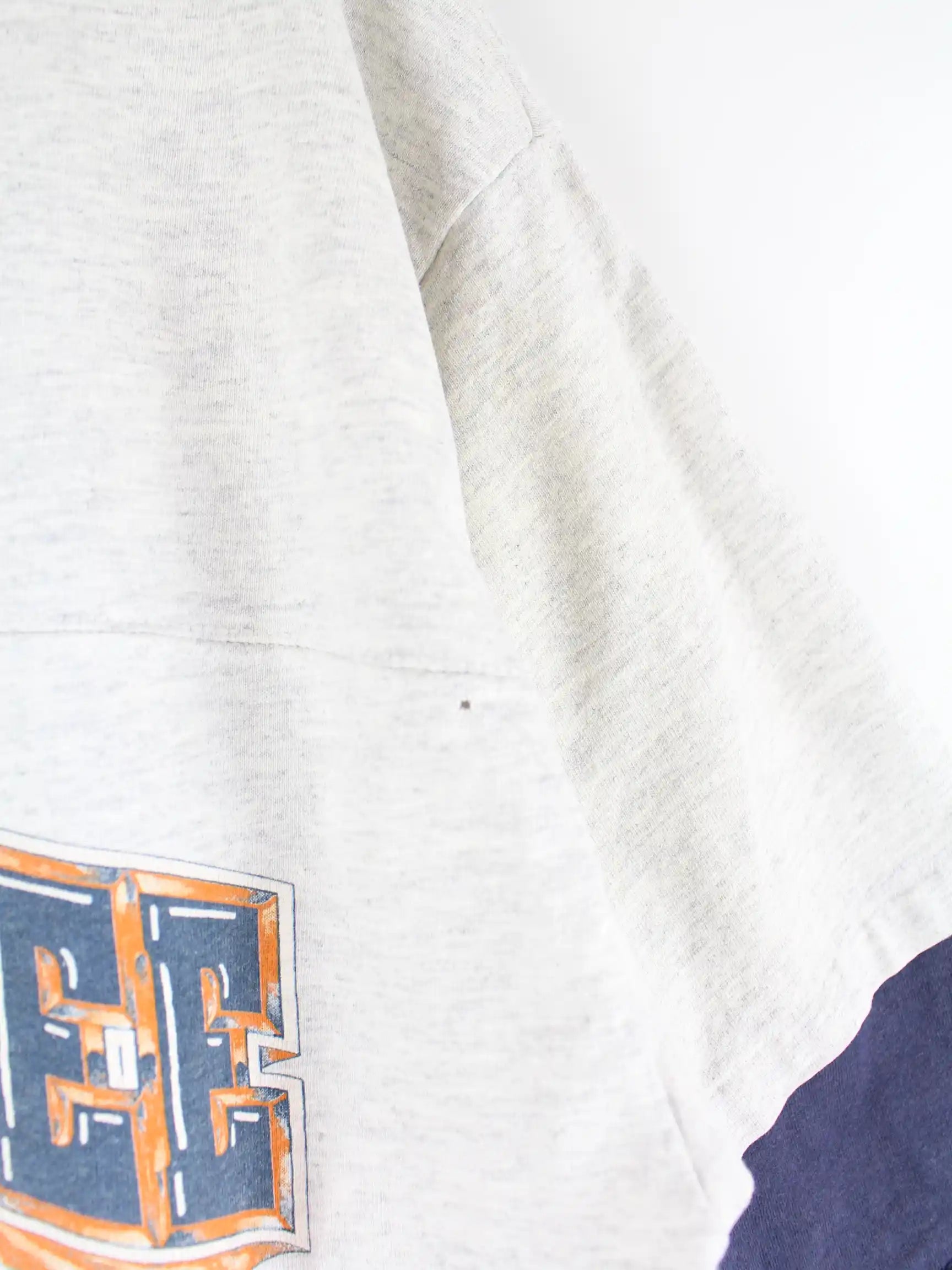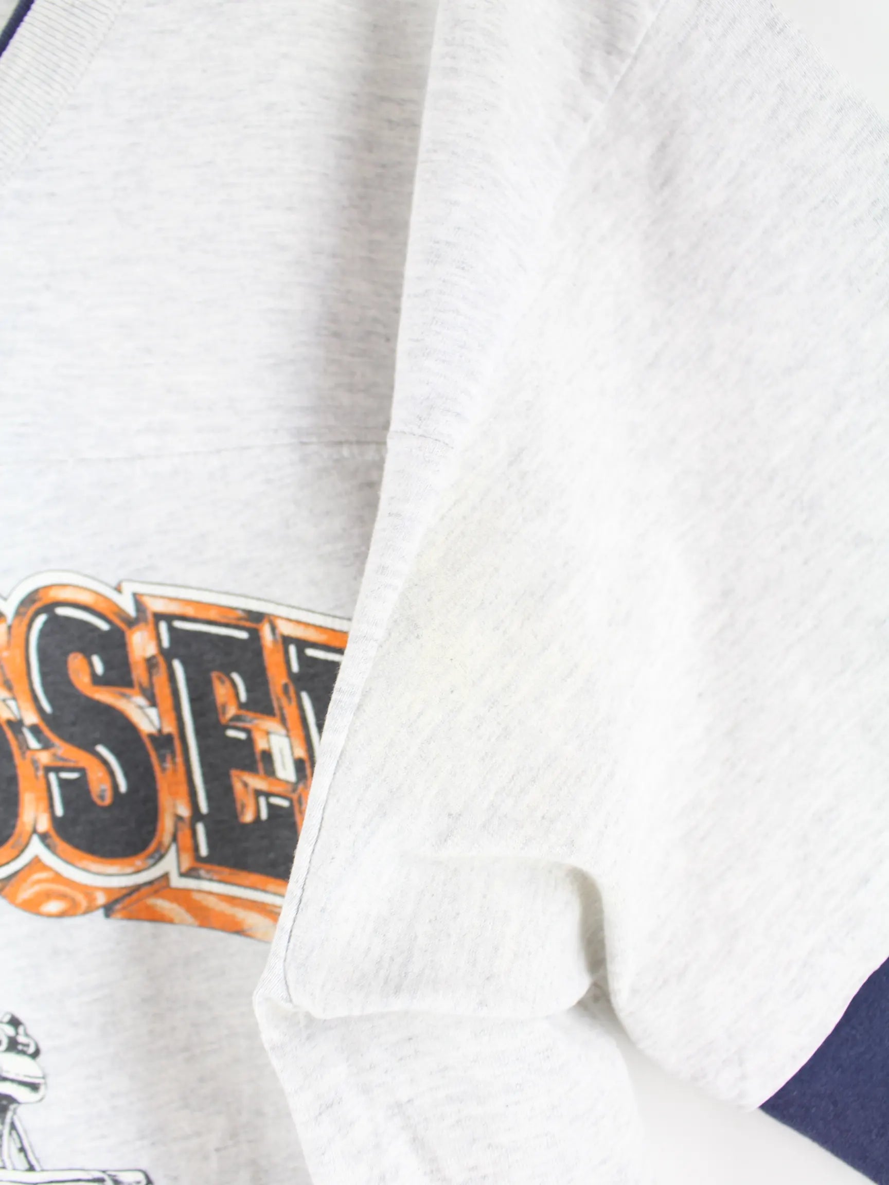 Graues Vintage T-Shirt aus den 90'ern in Größe XL. Es ist aus Baumwolle hergestellt. Den Zustand würden wir als 'In Ordnung' bezeichnen (vergl. Bilder).Mit schickem Football Print.