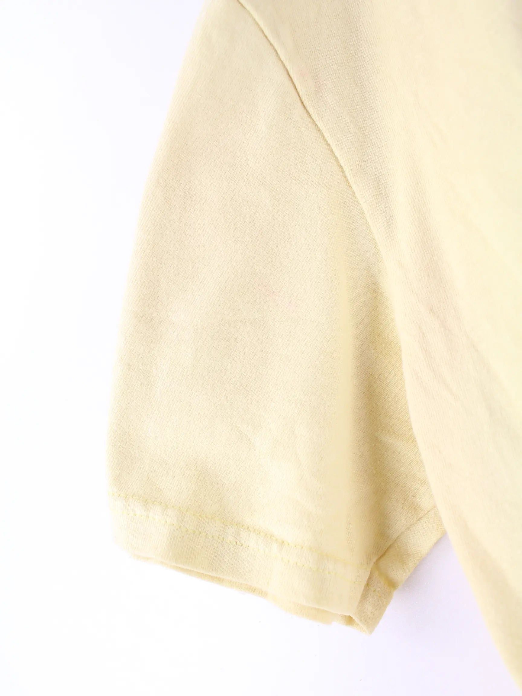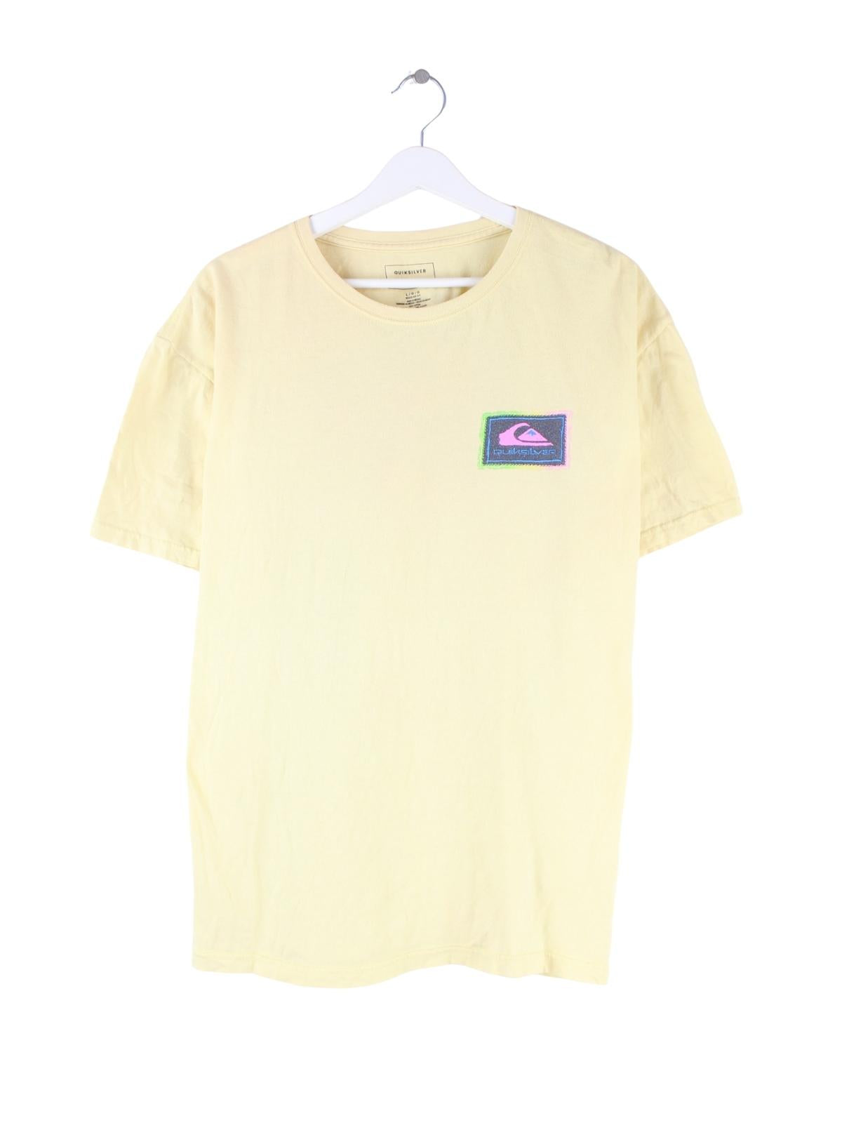 Gelbes T-Shirt des Labels Quiksilver in Größe L. Es ist aus Baumwolle produziert und in gutem Zustand auf Lager. Mit seltenem Print.