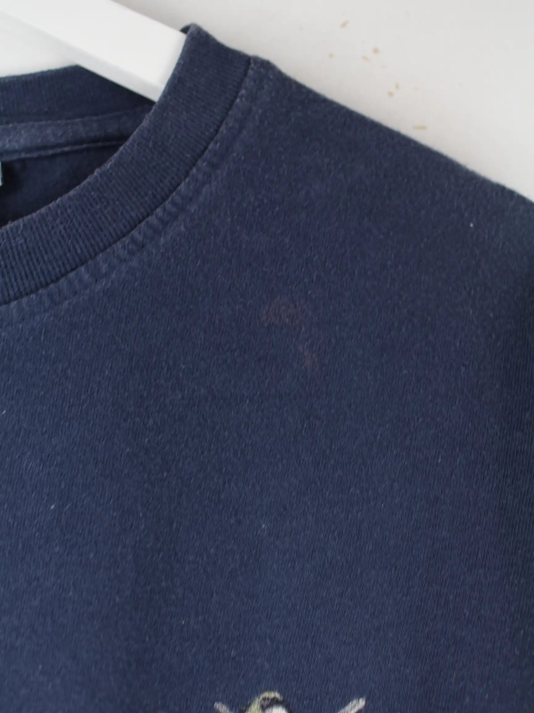Blaues T-Shirt der Brand Weird Fish in Größe L. Es ist aus Baumwolle angefertigt und in gutem Zustand vorrätig. Mit schickem 00s Print.