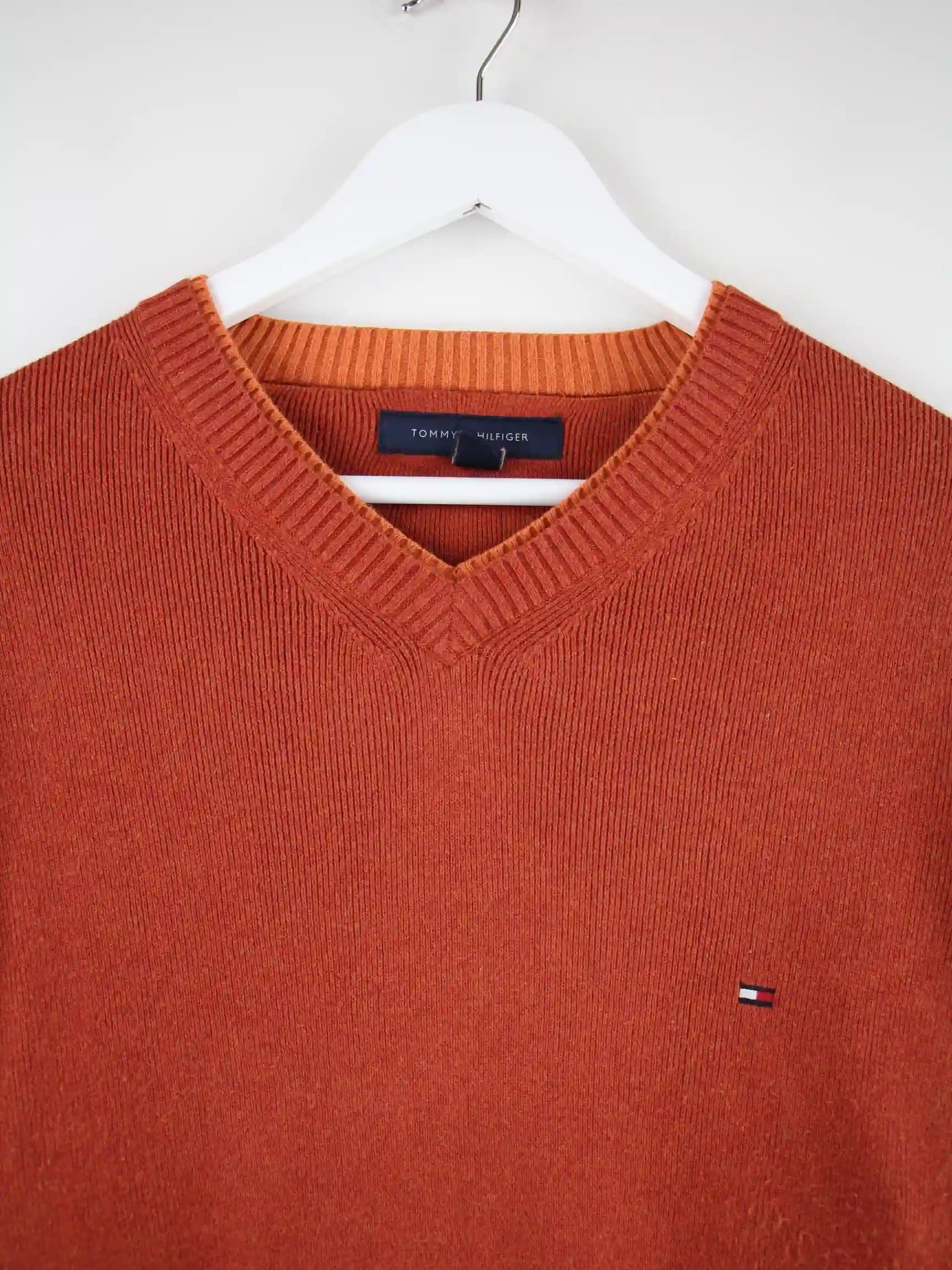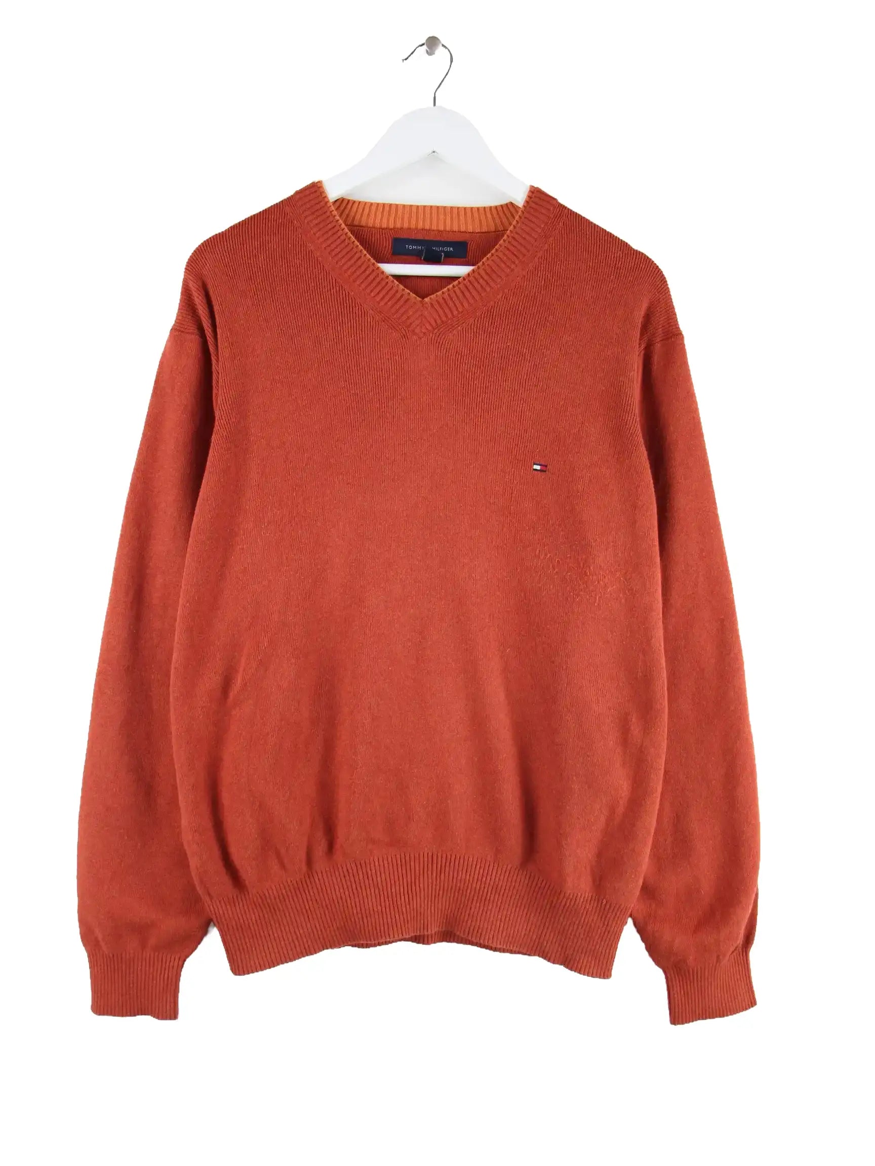 Orangefarbener Pullover der Marke Tommy Hilfiger in Größe M. Er ist aus Baumwolle und in gutem Zustand vorrätig.