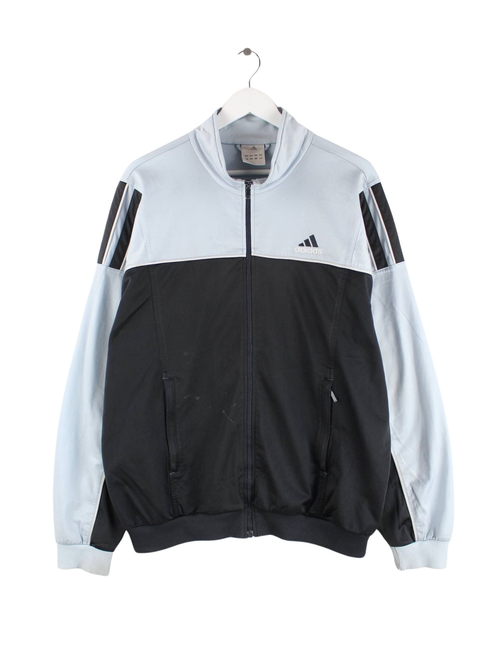 Trainingsjacke aus dem Hause Adidas mit gestickten Motiven in Größe XXL. Sie ist aus Synthetik produziert und in Blau lieferbar.