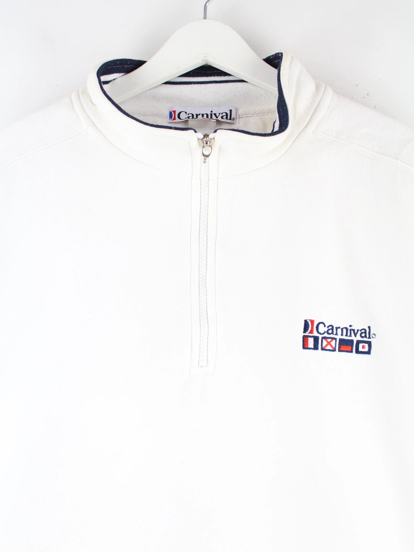 Vintage 90s Carnival Embroidered Half Zip Sweater Weiß L