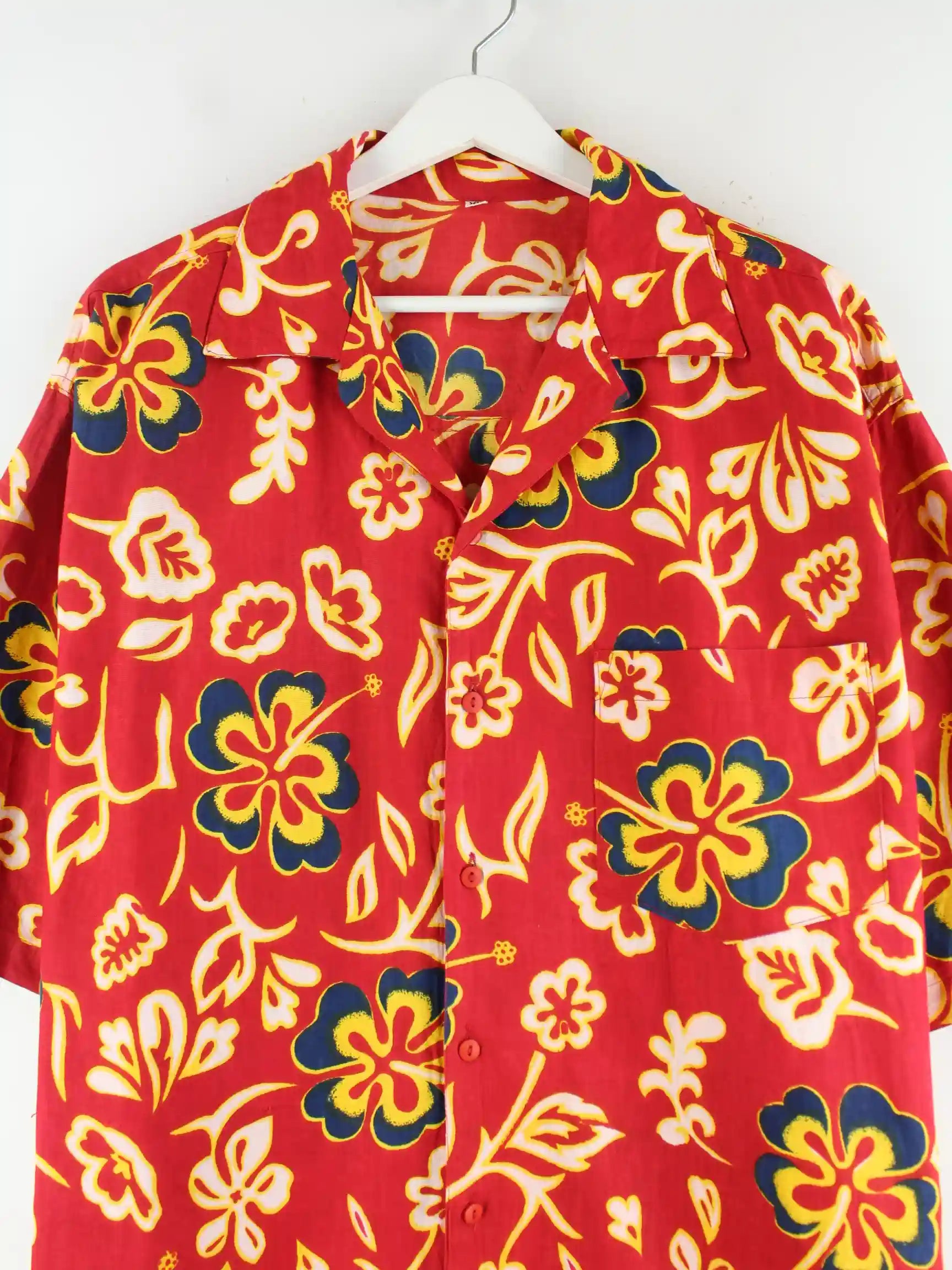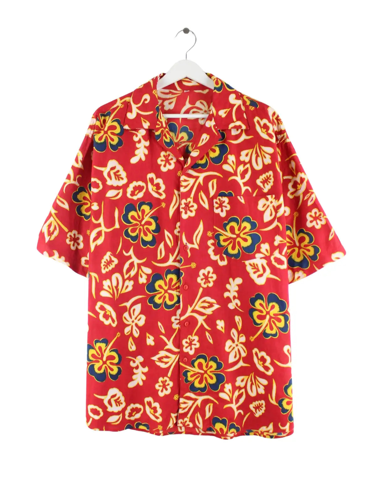 Vintage 90s Flower Pattern Hawaii Hemd Rot XL