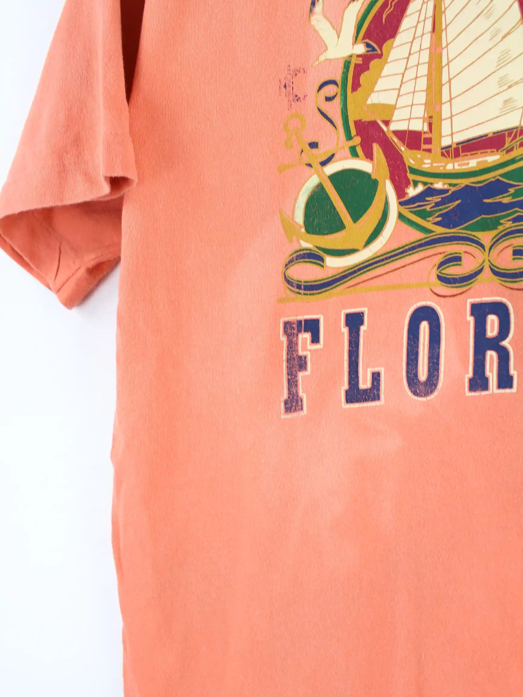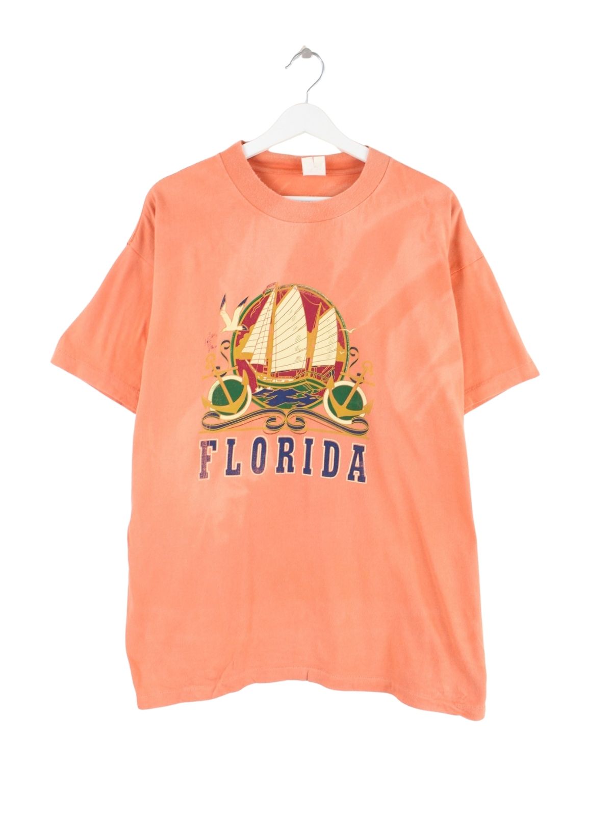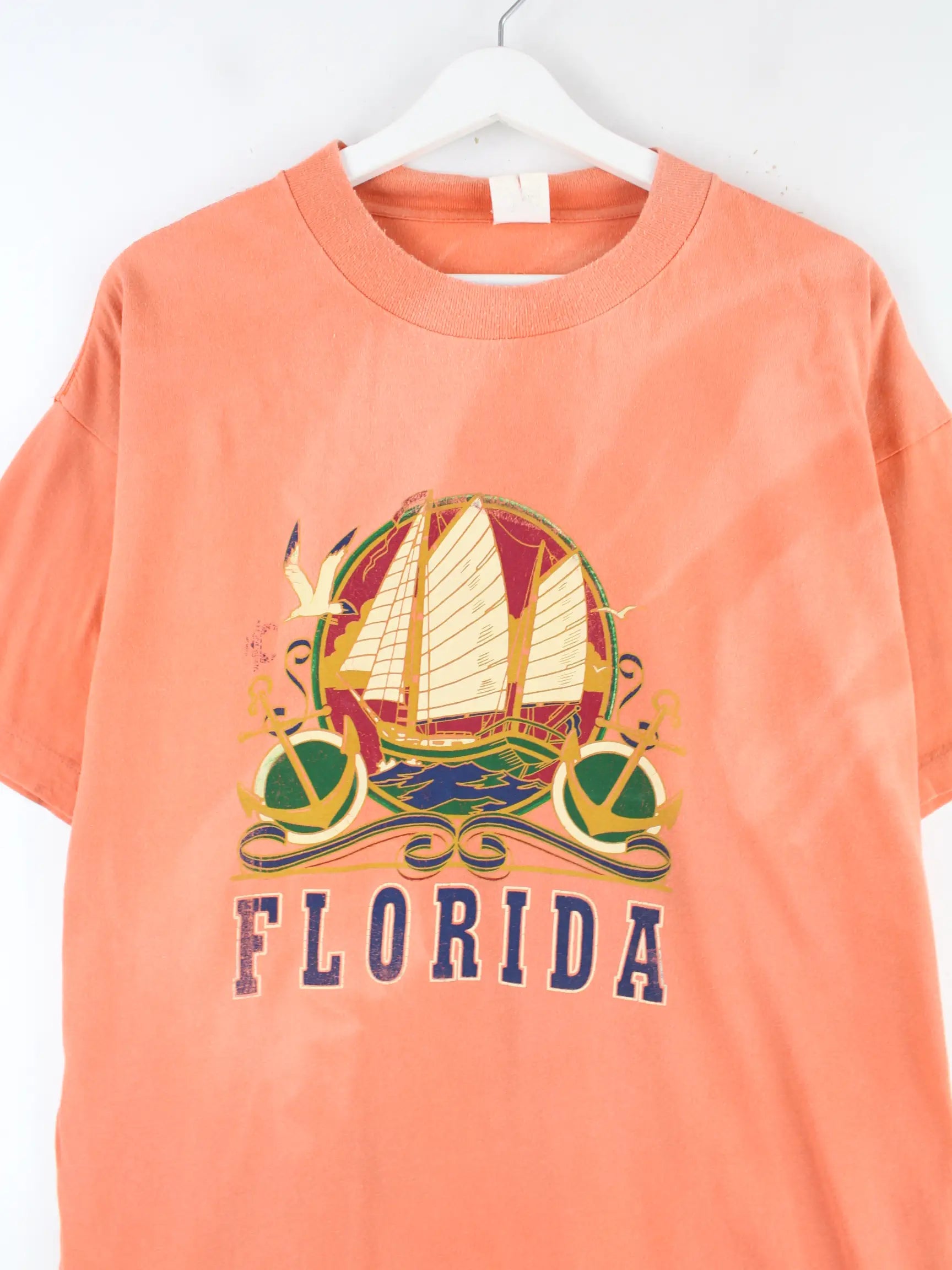Vintage 90s Florida Print Single Stitch T-Shirt Orange XL