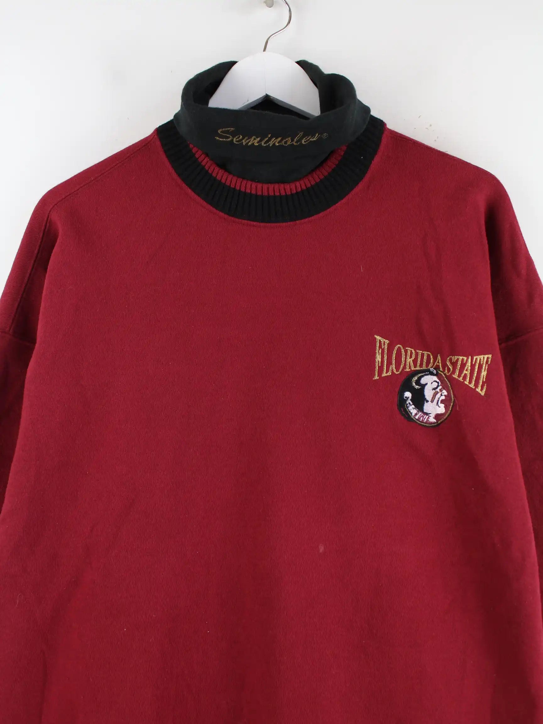 Vintage 90s Florida State Embroidered Turtleneck Sweater Rot XL