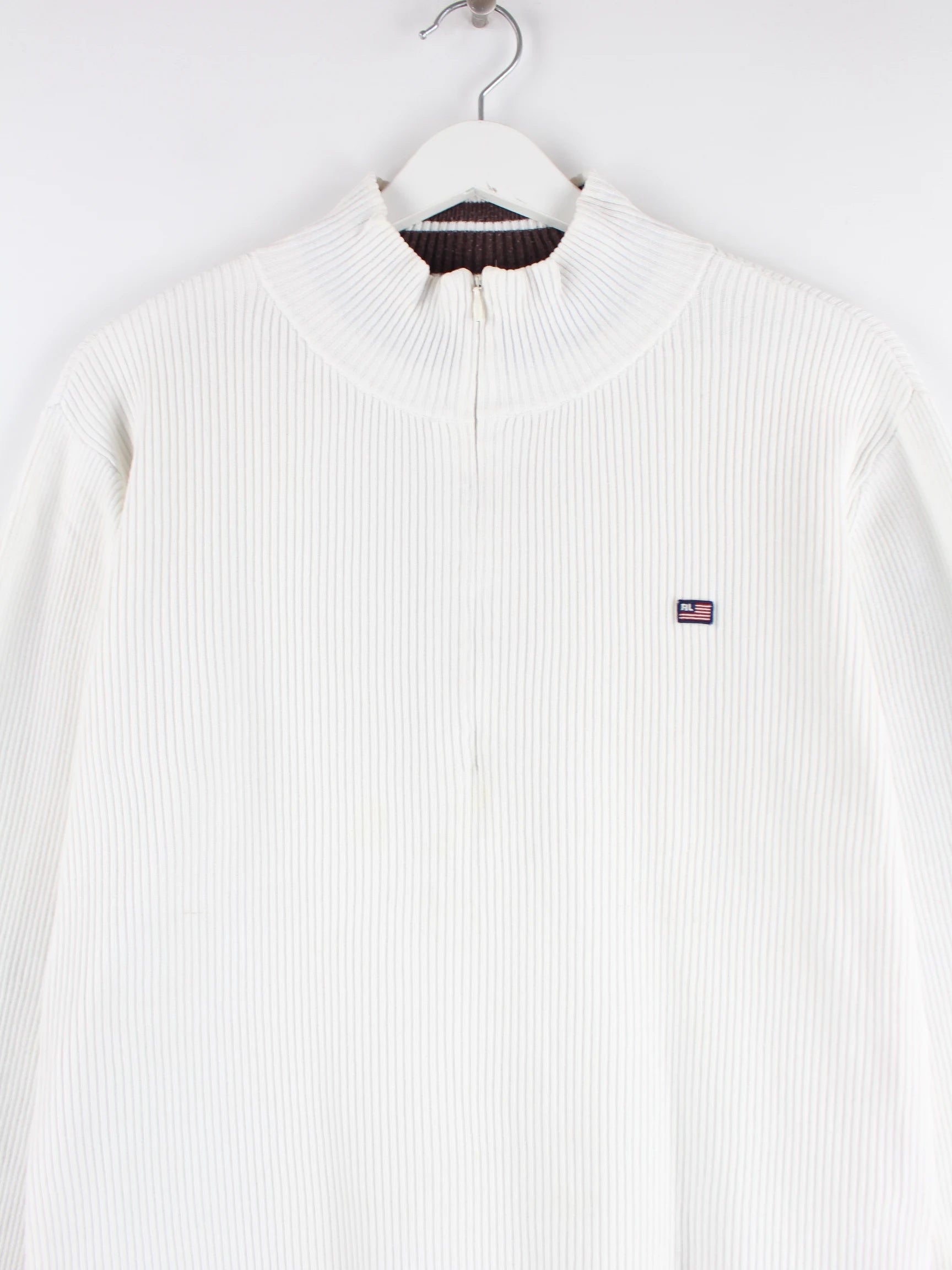 Pullover vom Label Ralph Lauren mit kurzem Reißverschluß in Größe XL. Er ist aus Baumwolle und in Weiß bei uns vorrätig.