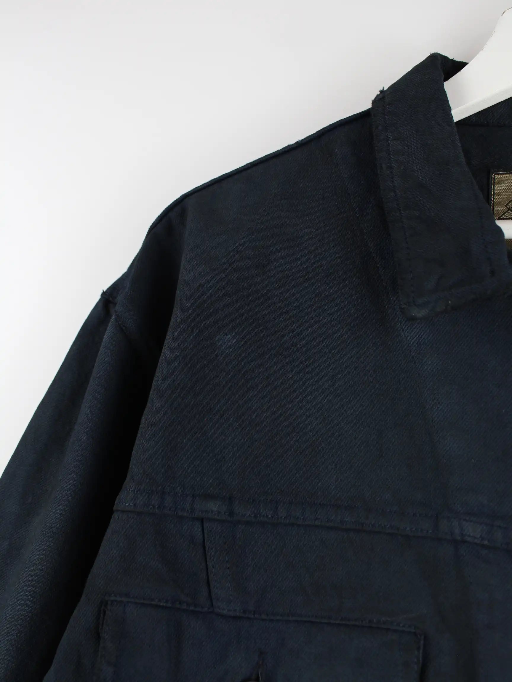 Schwarze Leichte Jacke des Labels Armani aus den 90'ern in Größe XL. Sie ist aus Baumwolle hergestellt. Den Zustand würden wir als 'In Ordnung' bezeichnen (vergl. Bilder).