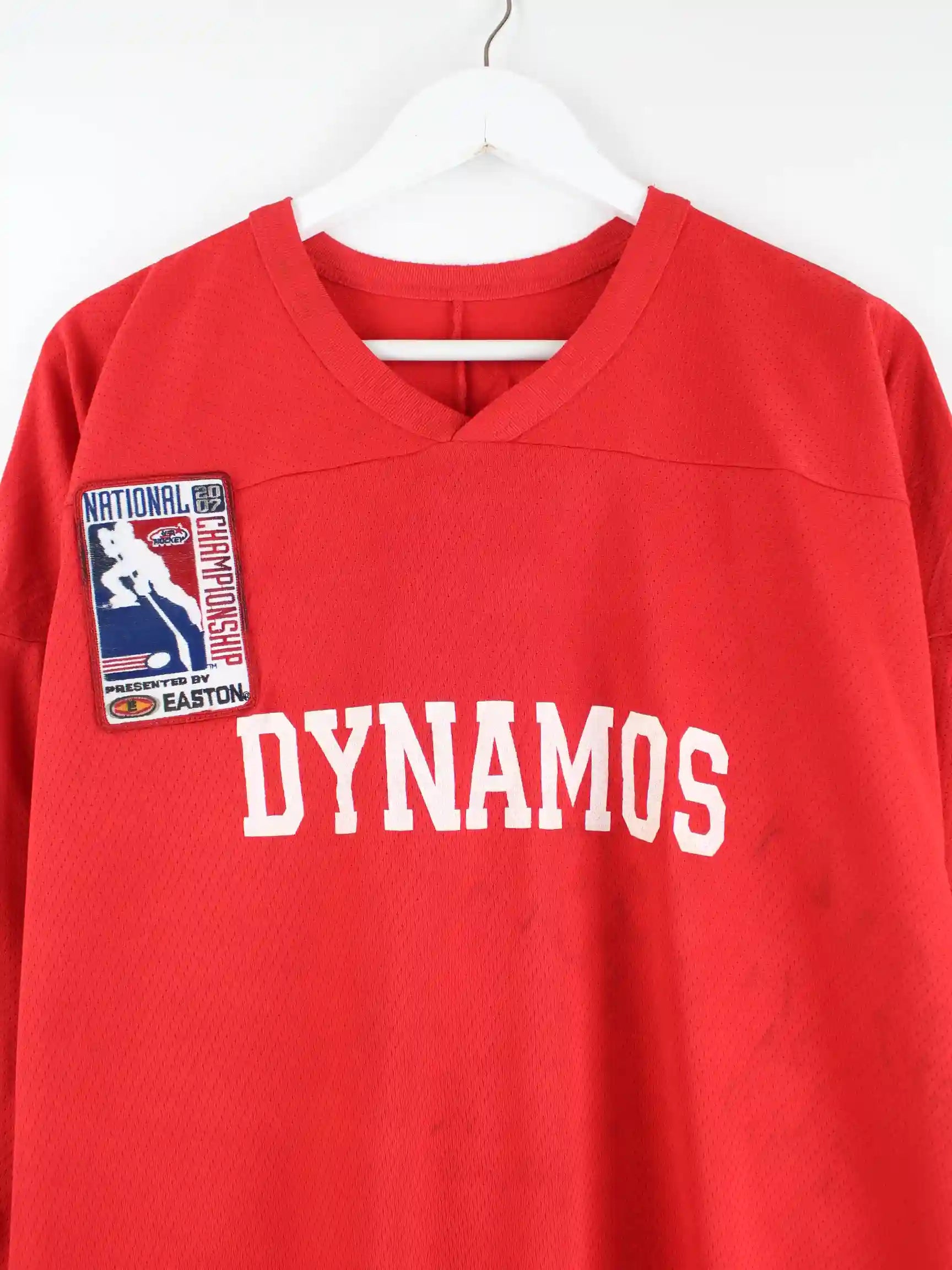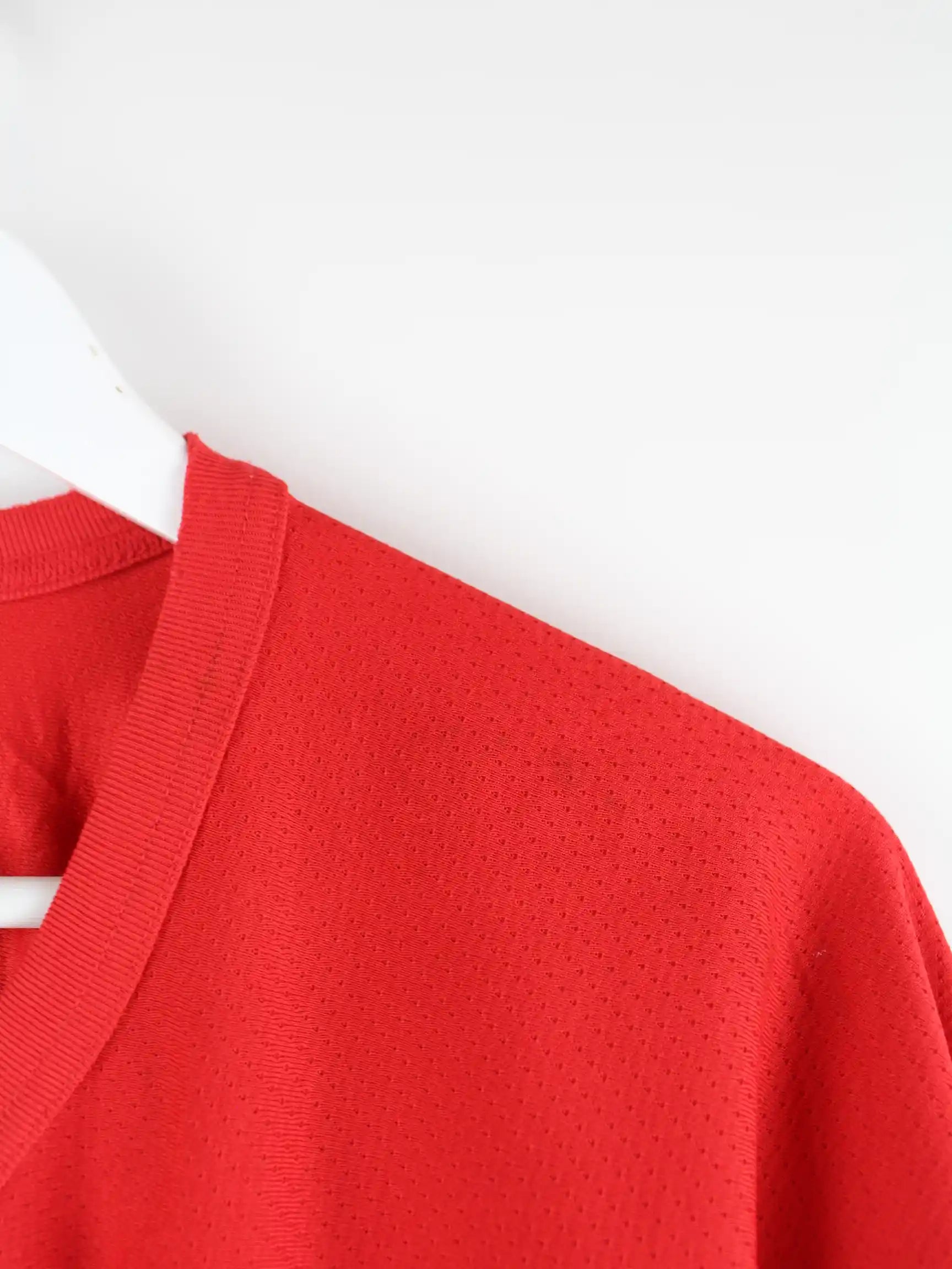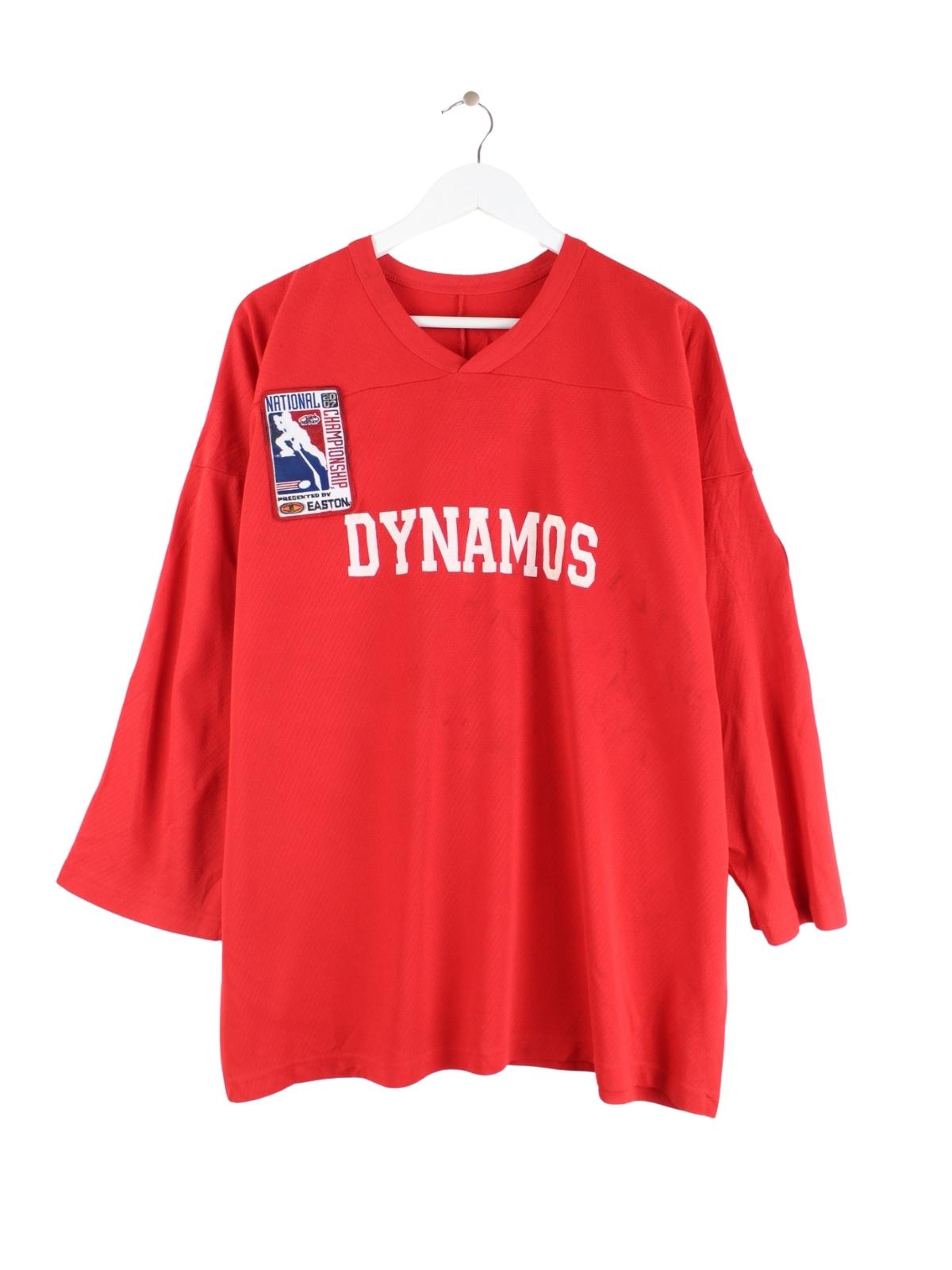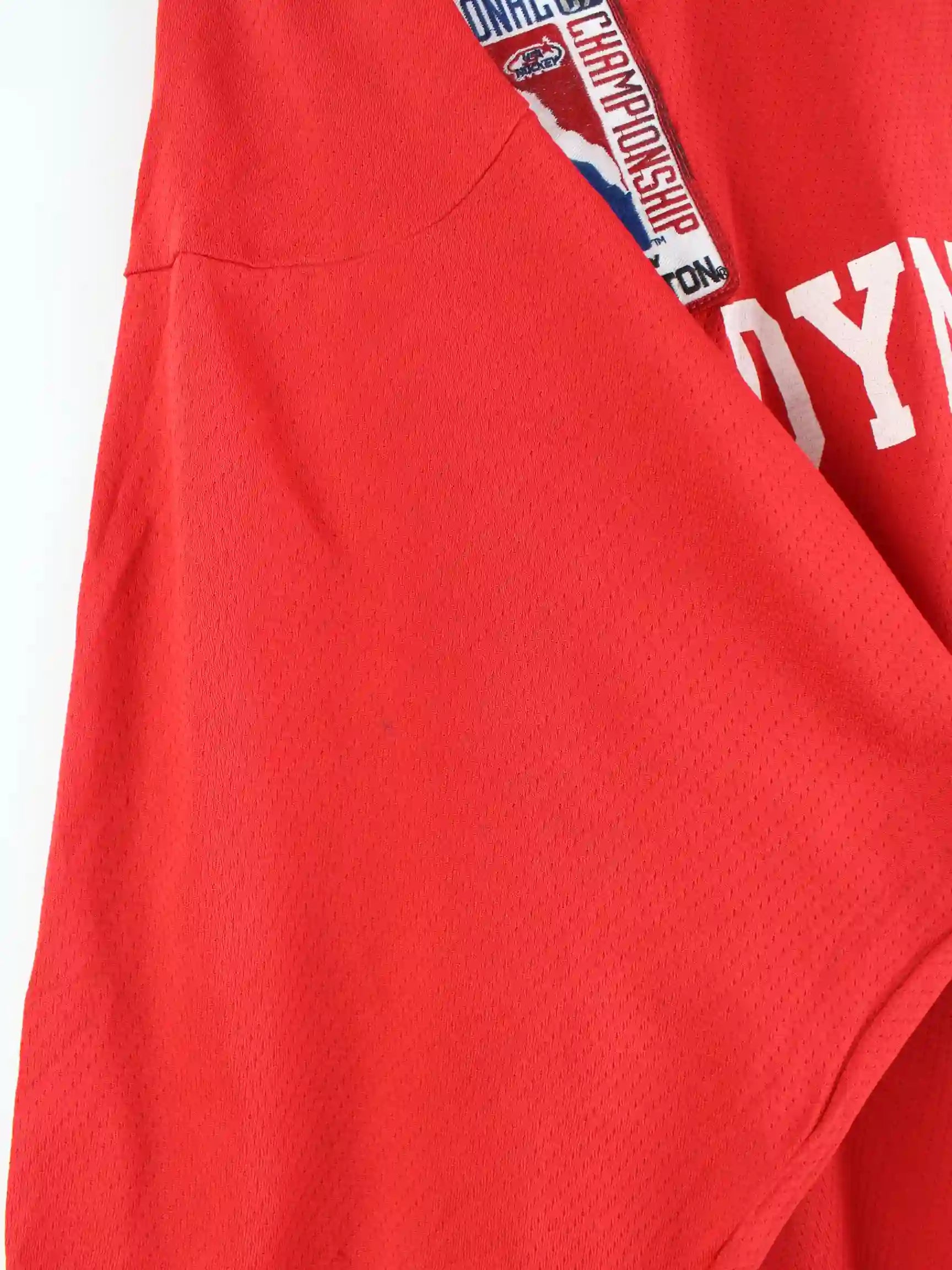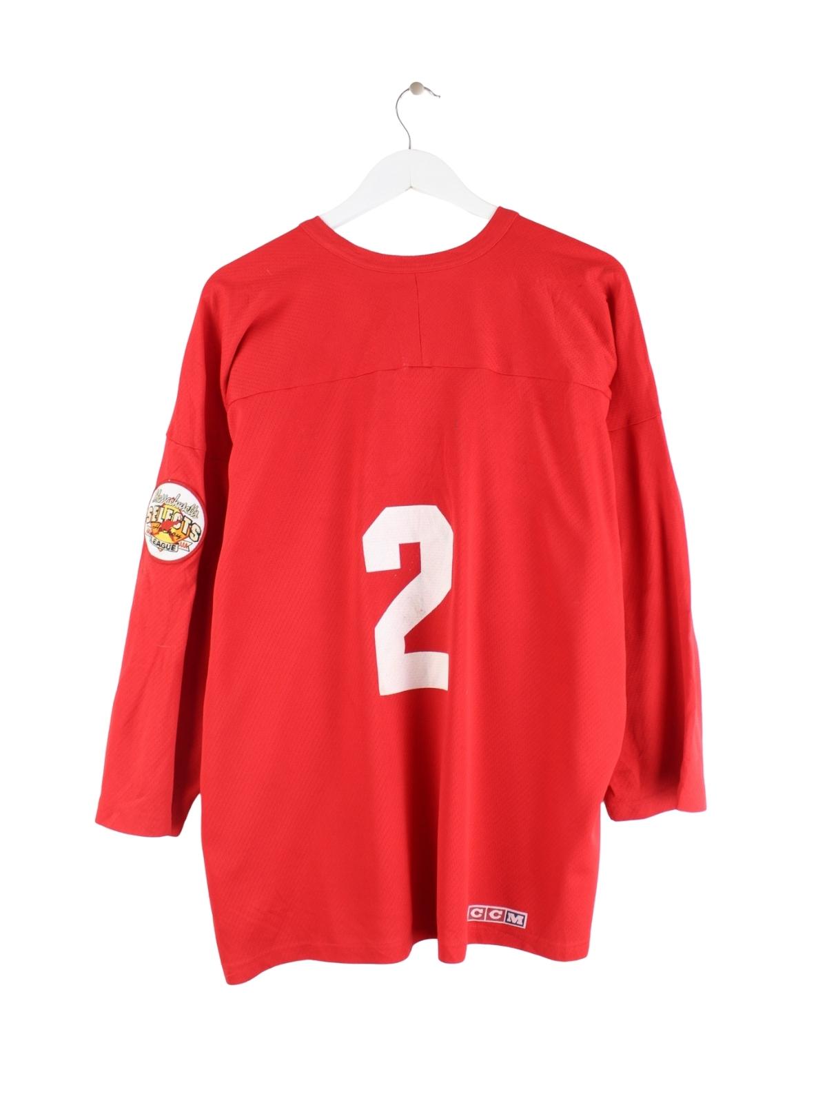 Rotes Vintage Eishockey Jersey der Brand CCM aus den 90'ern in Größe XXL. Es ist aus Synthetik gefertigt. Den Zustand würden wir als 'In Ordnung' bezeichnen (vergl. Bilder).