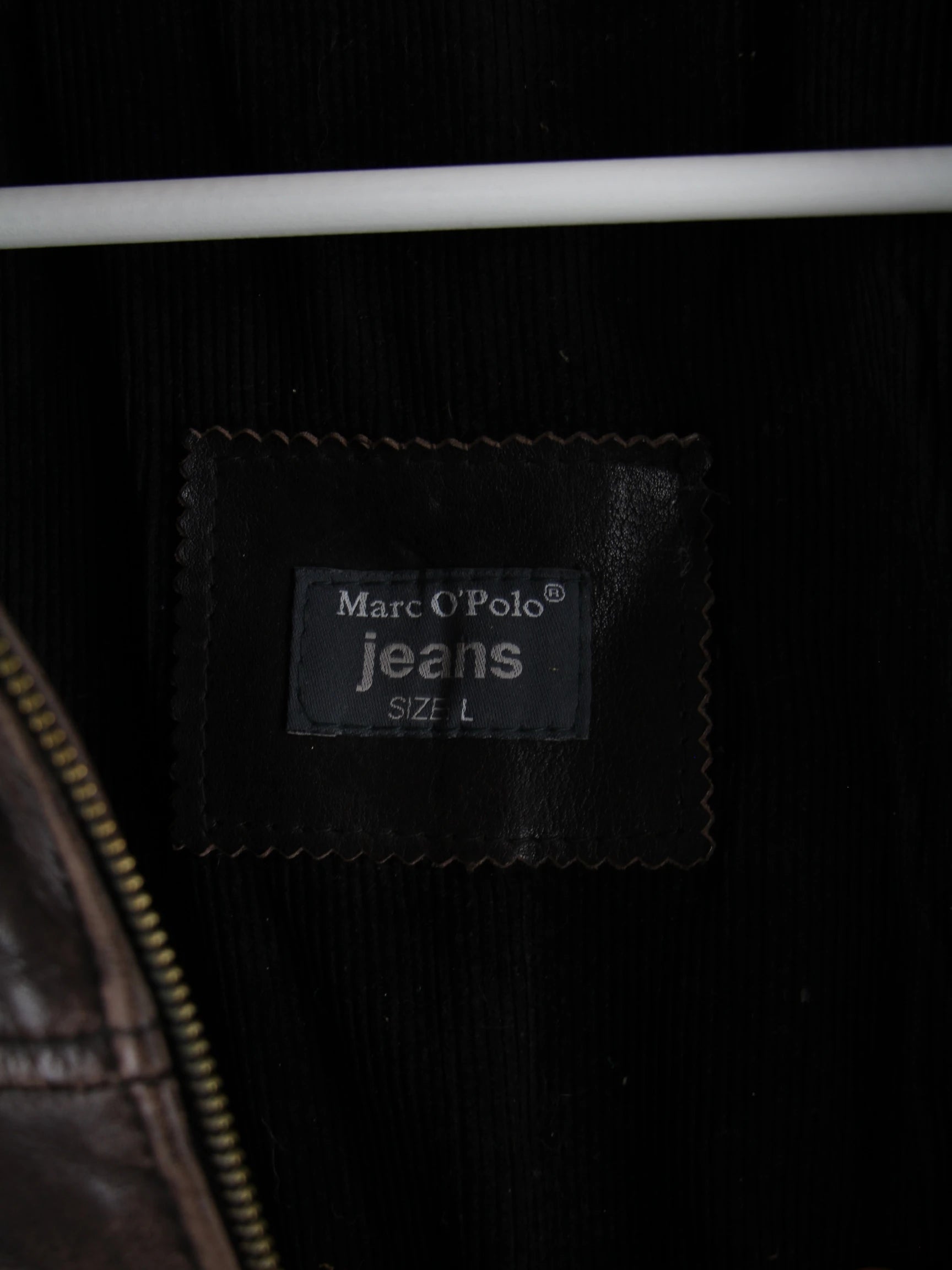 Jacke vom Brand Marc O' Polo in Größe L aus den 90'ern. Sie ist aus Leder produziert und in Braun zu bekommen.