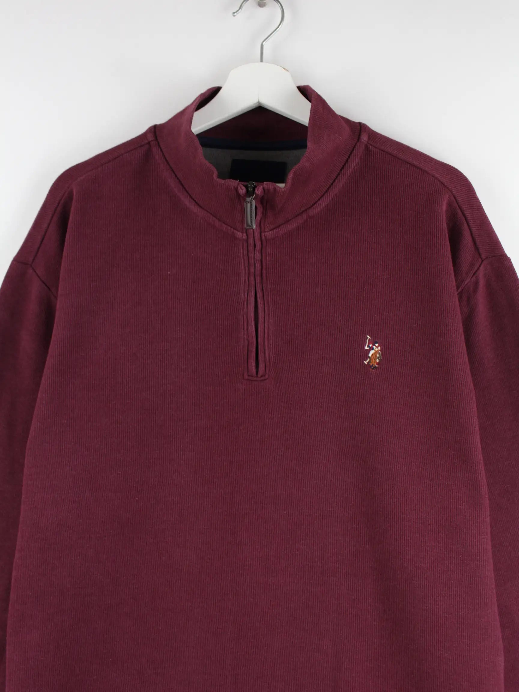 Pullover der Brand U.S. Polo ASSN. mit halbem Reißverschluß in Größe XXL. Er ist aus einer Baumwollmischung hergestellt und in Rot vorrätig.