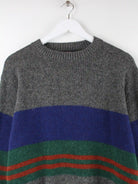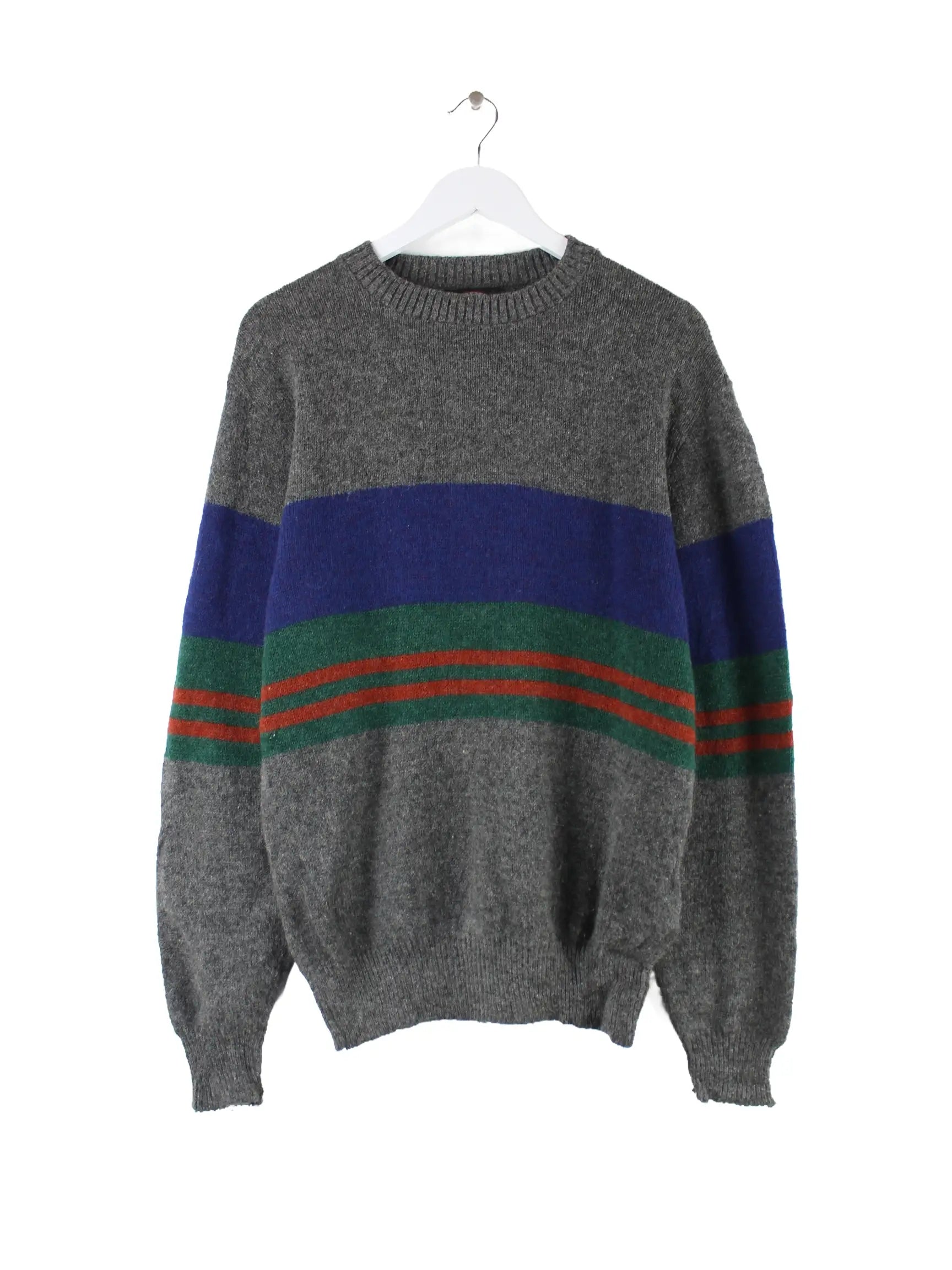 Vintage Pullover in Größe M aus den 90'ern. Er ist aus Acryl produziert und in Grau zu haben.
