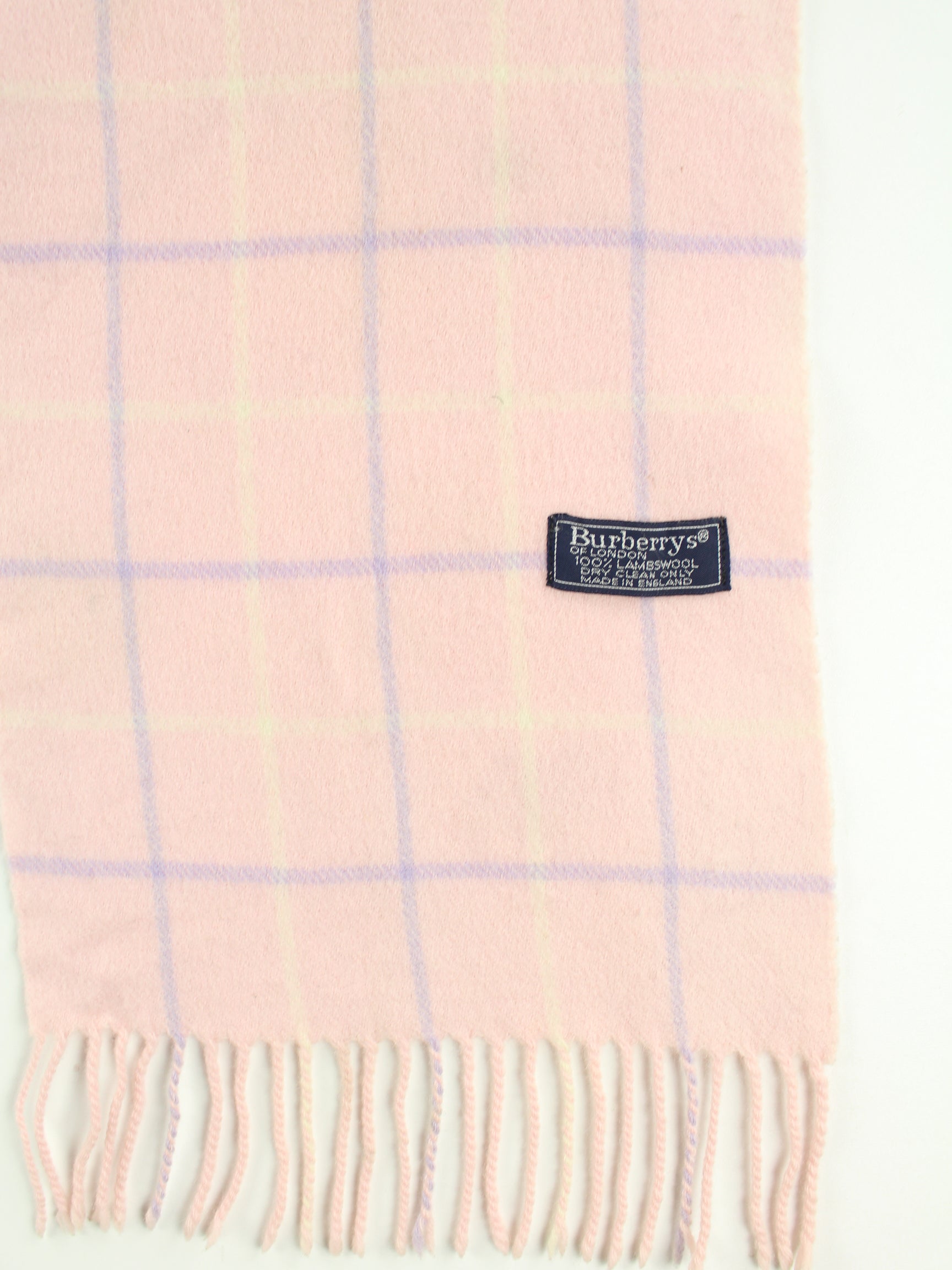 Pink Burberry 90s Vintage Scarf made of 100% lambswool.