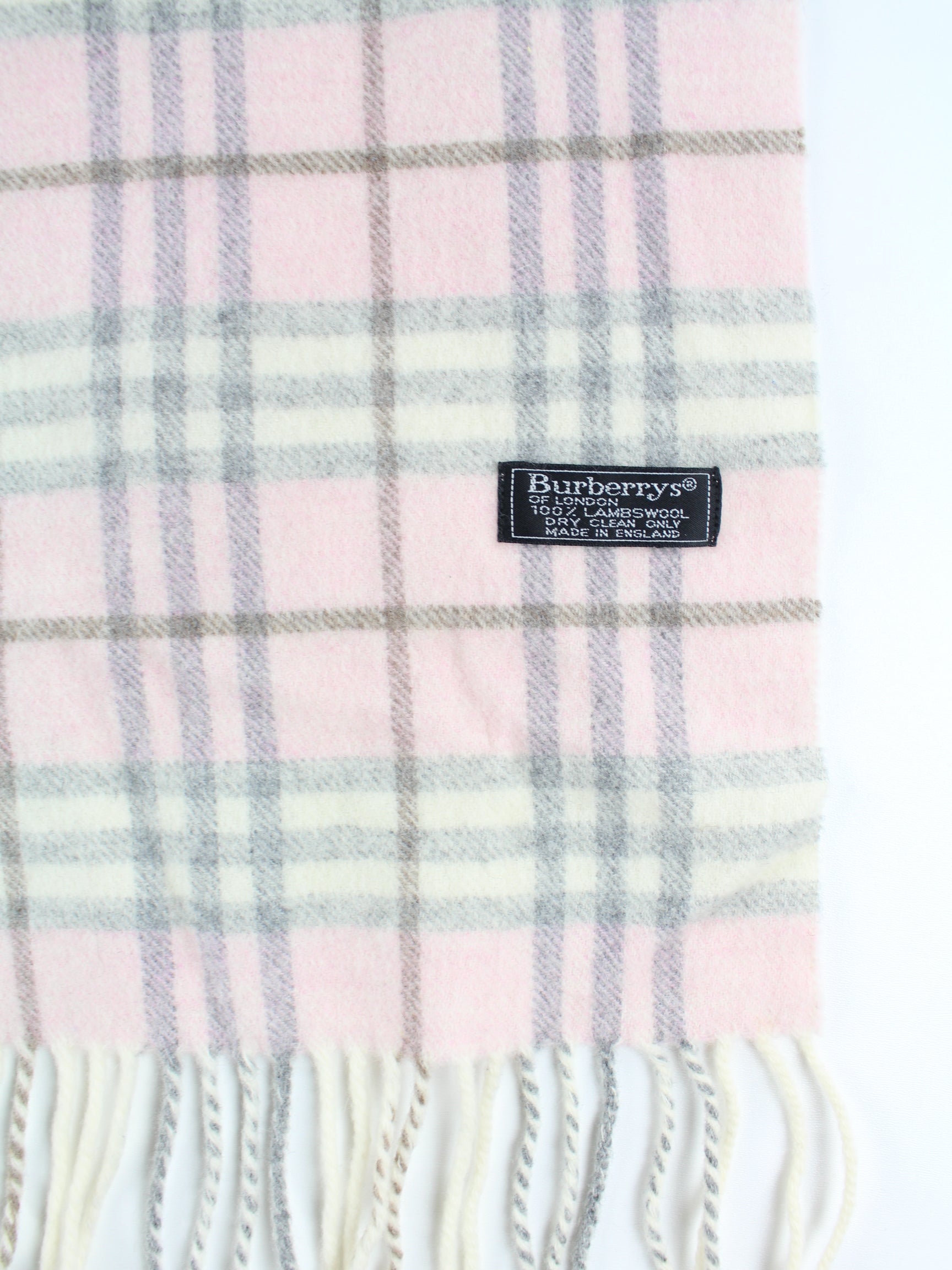 Pink Vintage Burberry Scarf from the 90s made of 100% lambswool.