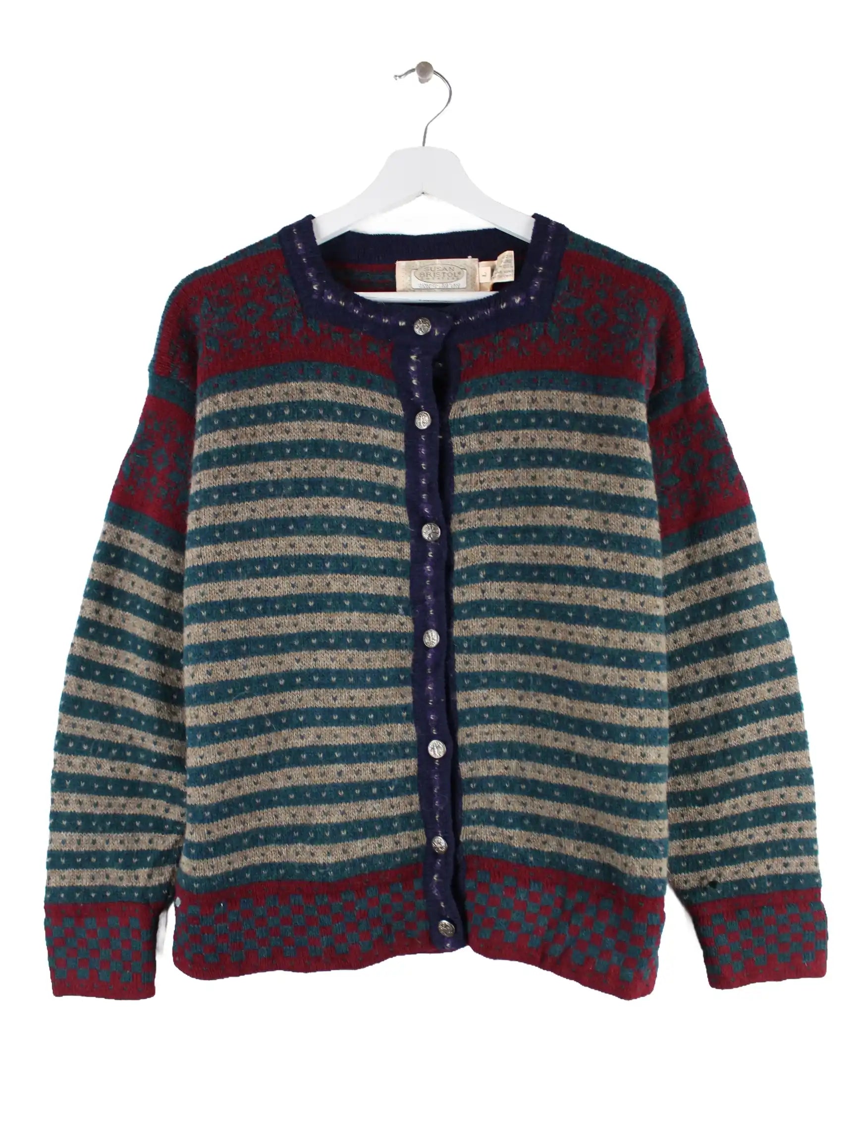 Vintage Damen 90s Pattern Woll Strickjacke Mehrfarbig L