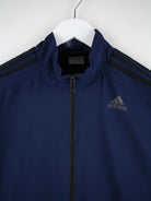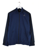 Blaue Trainingsjacke des Labels Adidas in Größe M. Sie ist aus Synthetik produziert und in gutem Zustand lieferbar.