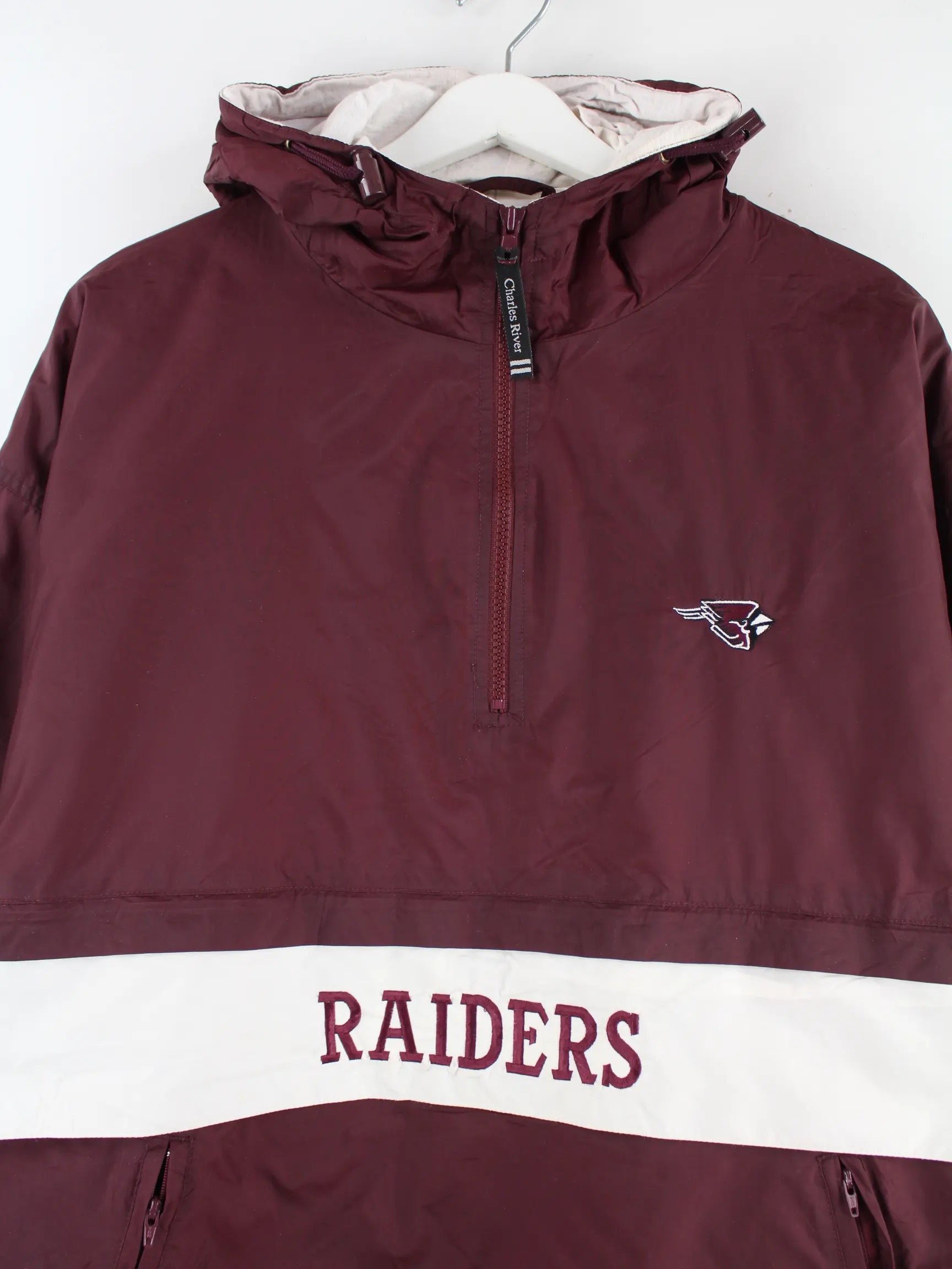 Vintage Windbreaker in Größe M. Er ist aus Synthetik produziert und in Rot zu haben.