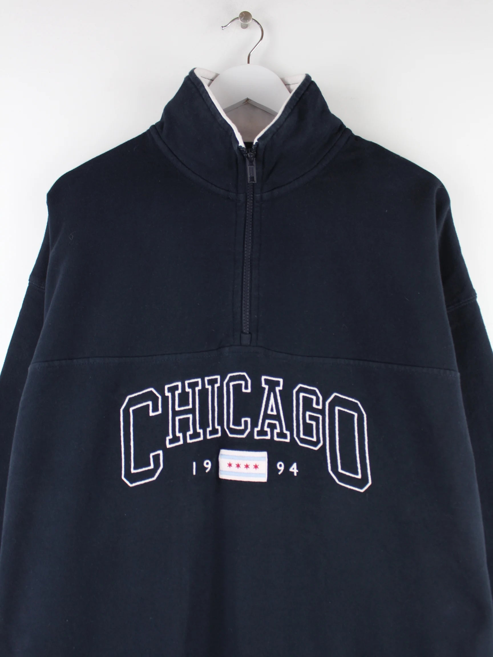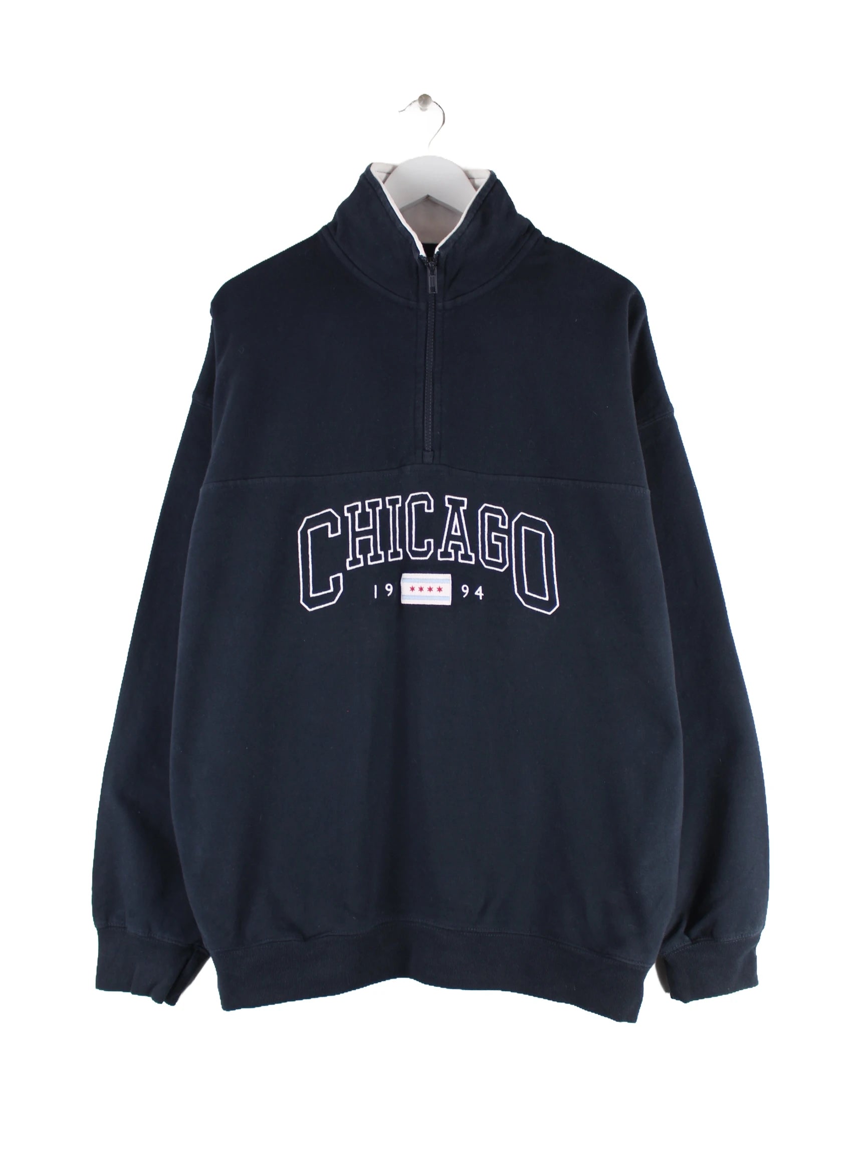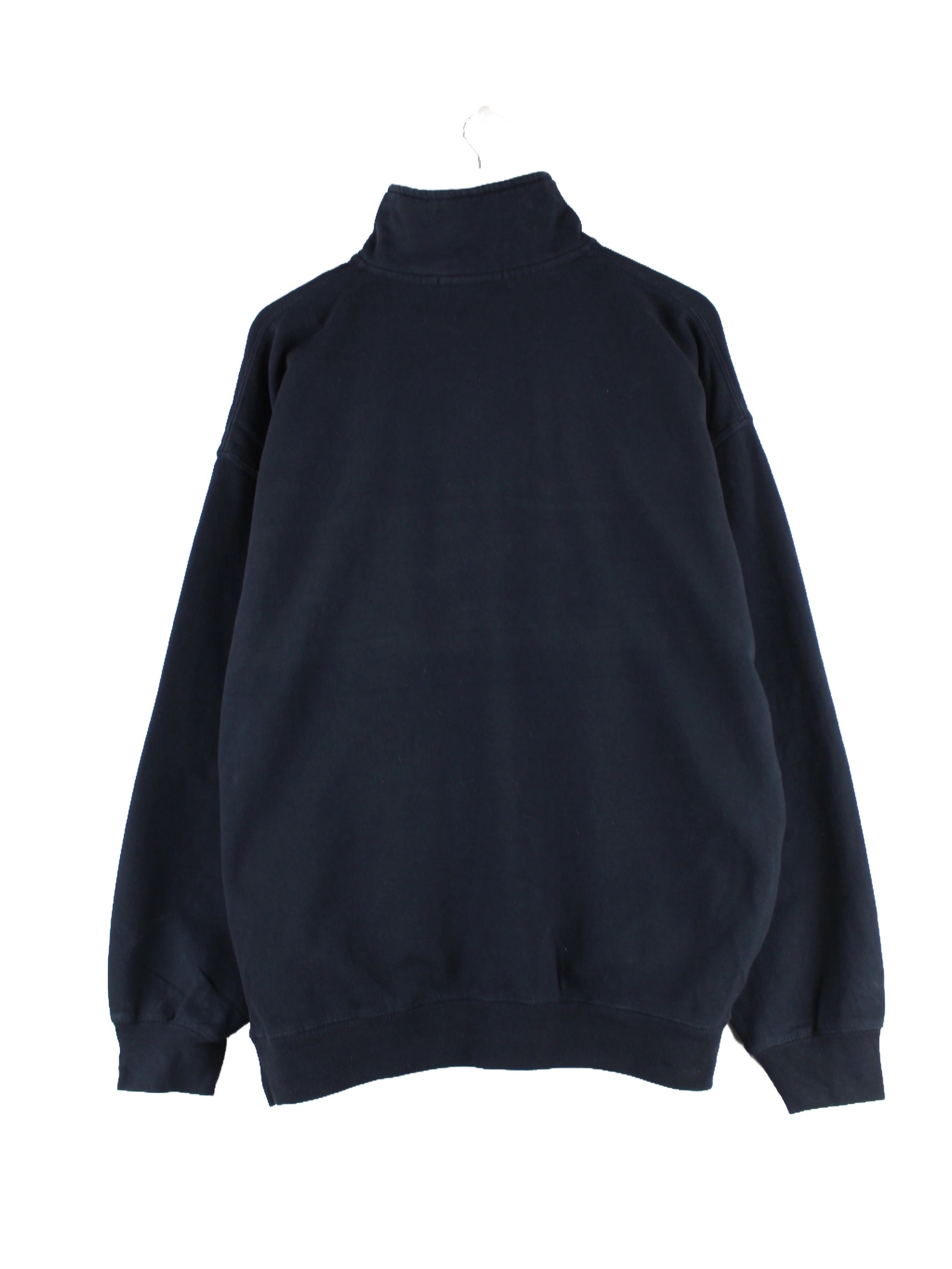 Vintage Sweater mit half Zip in Größe XL. Er ist aus einer Baumwollmischung hergestellt und in Blau zu bekommen.