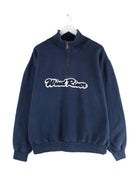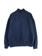 Vintage Sweater mit half Zip in Größe L. Er ist aus einer Baumwollmischung produziert und in Blau bei uns zu bekommen.