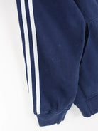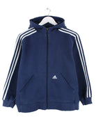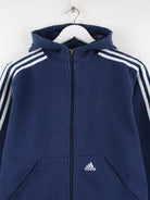 Blauer Hoodie mit Zip vom Brand Adidas in Größe S. Er ist aus einer Baumwollmischung gefertigt und in gutem Zustand bei uns vorrätig.