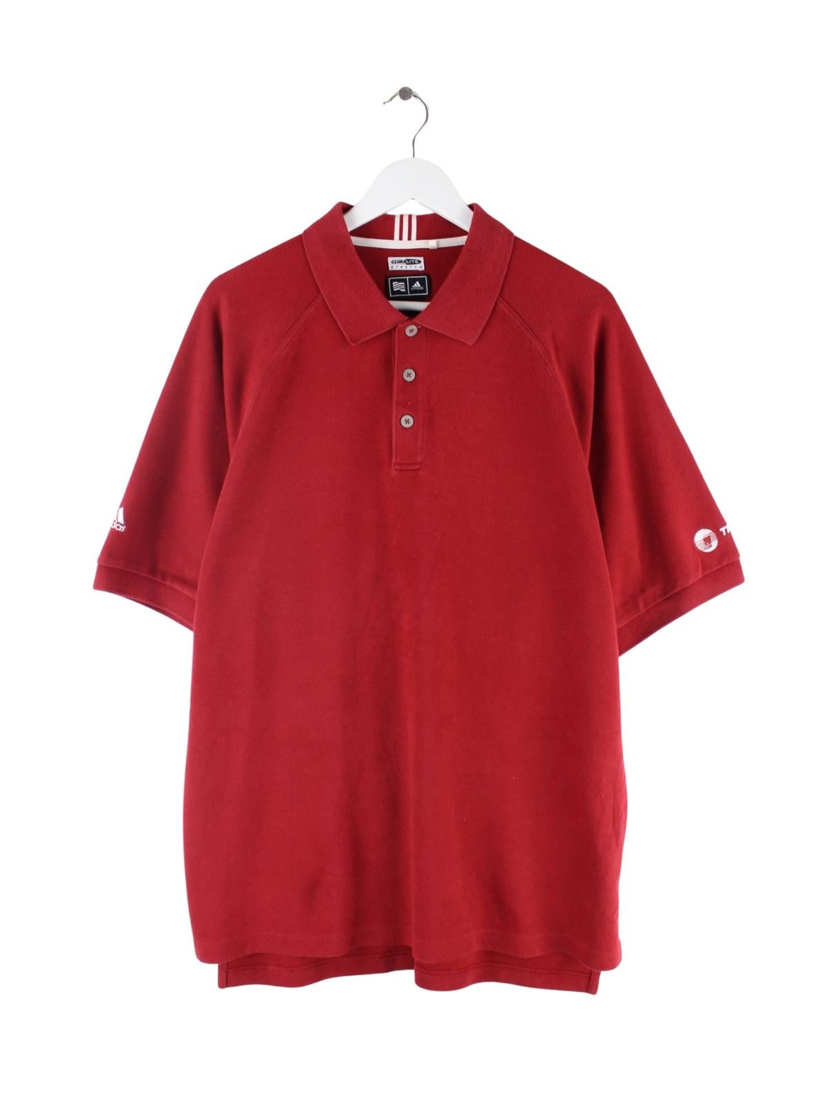 Poloshirt der Marke Adidas in Größe L. Es ist aus Baumwolle produziert und in Rot zu bekommen.