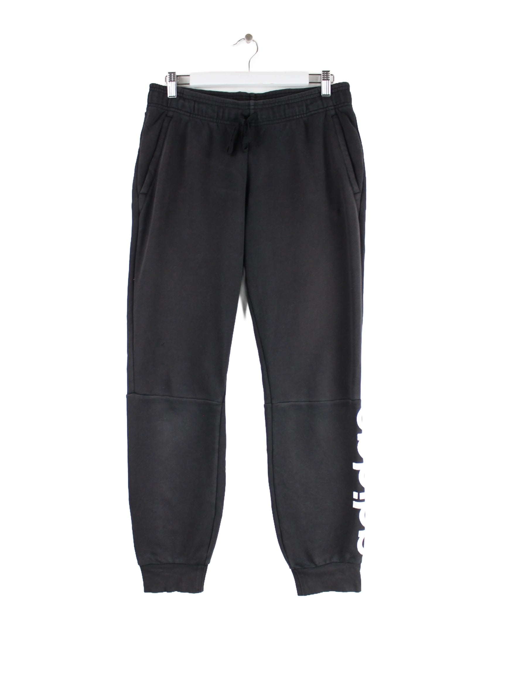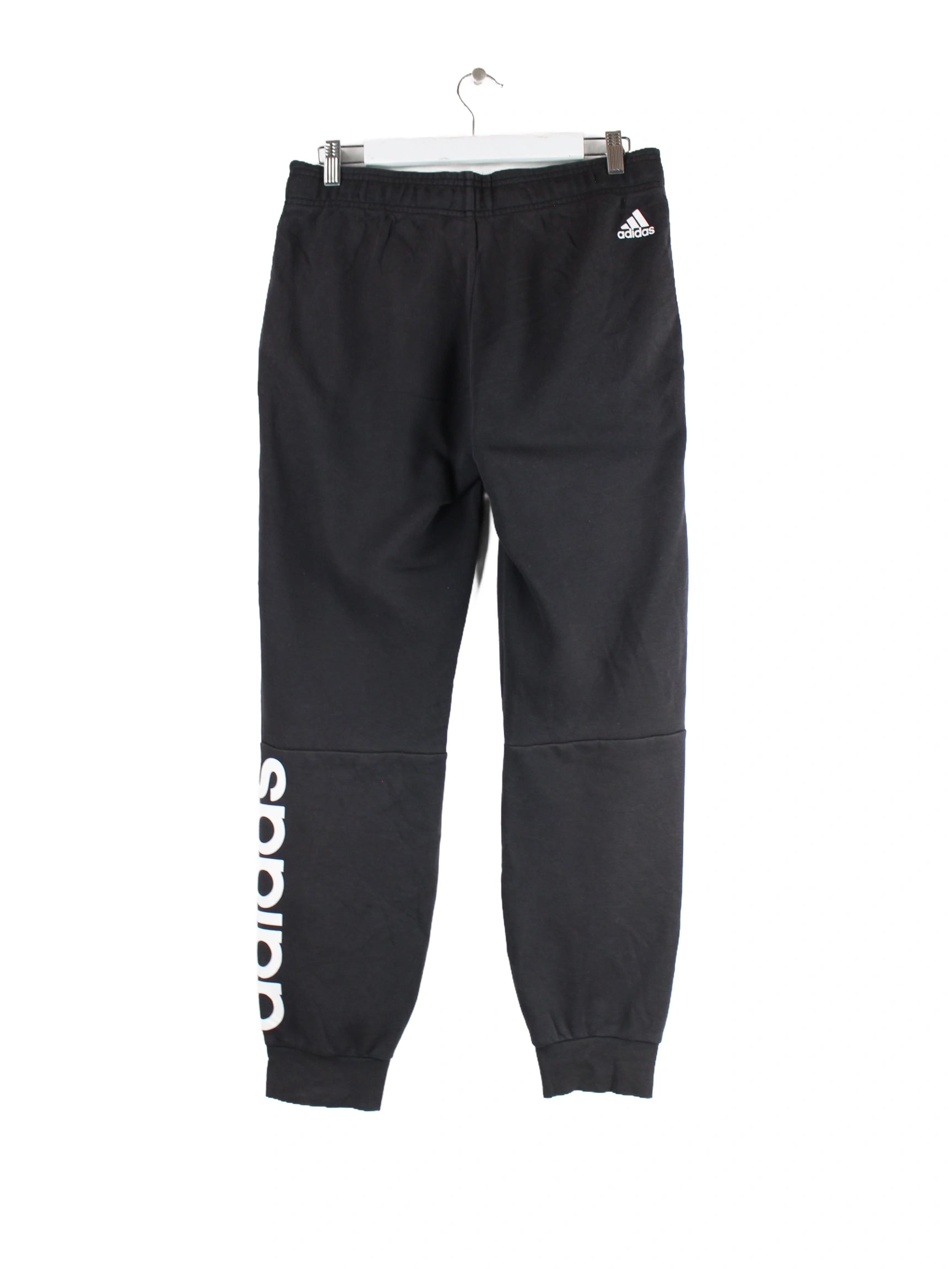 Schwarze Jogginghose vom Label Adidas in Größe M. Sie ist aus einer Baumwollmischung angefertigt. Den Zustand würden wir als 'In Ordnung' bezeichnen (vergl. Bilder).Mit seltenem Print.