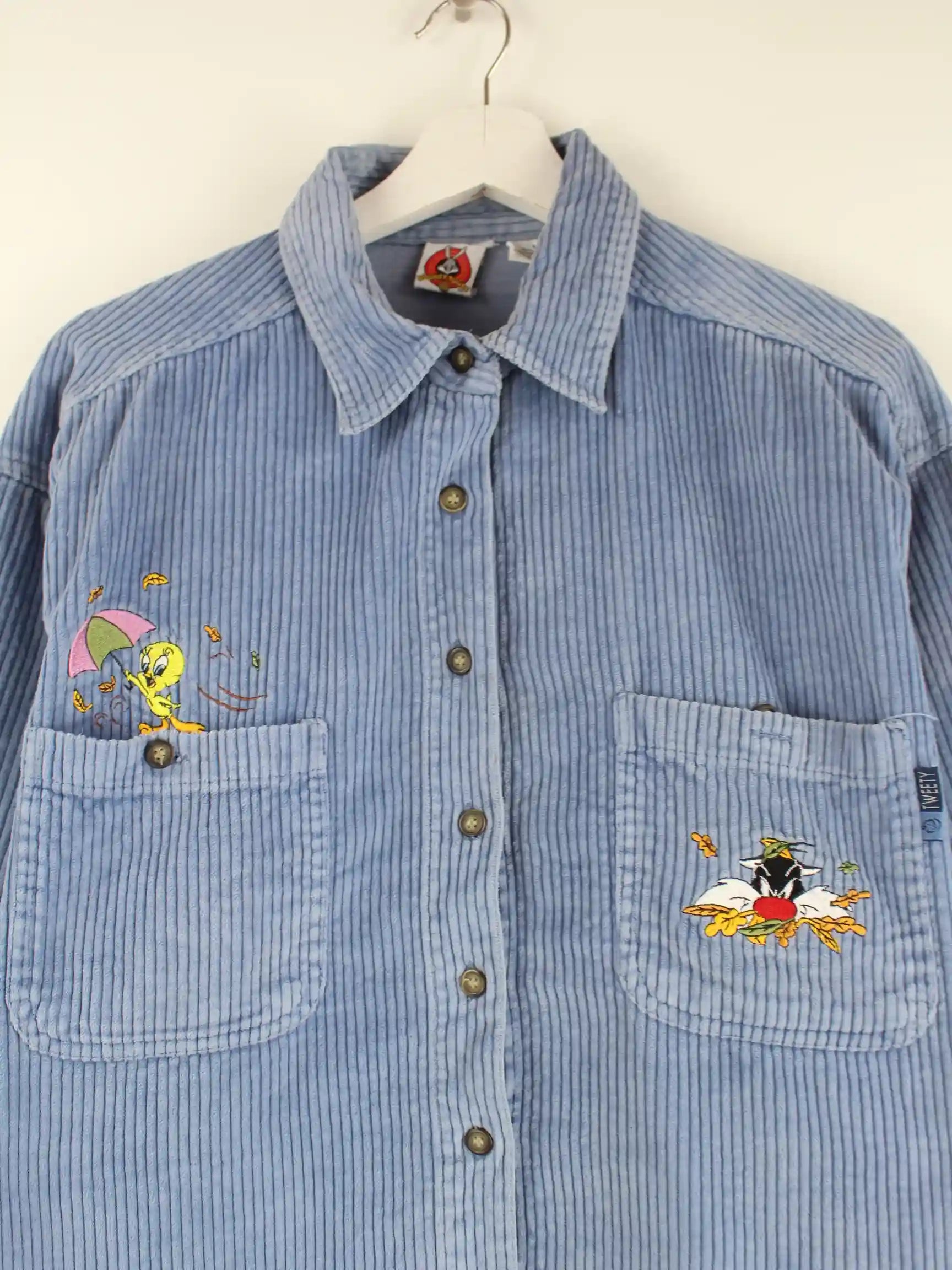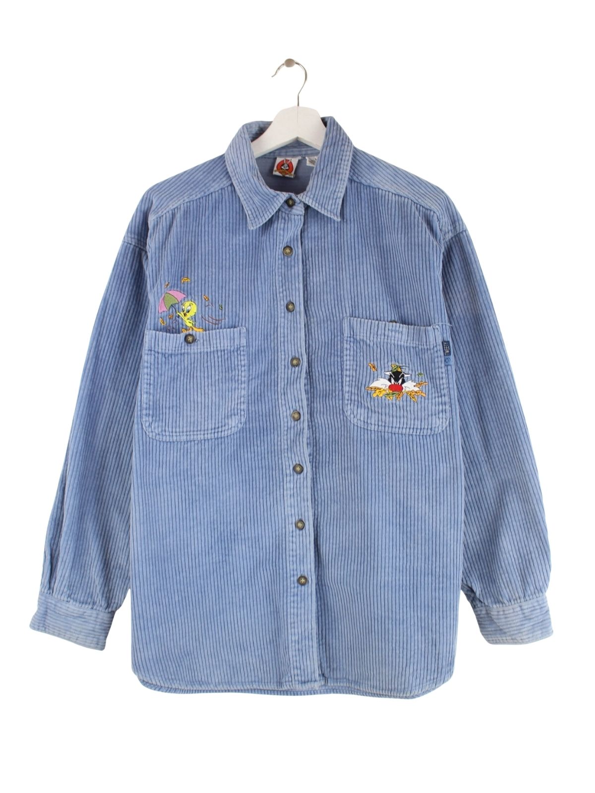 Looney Tunes Damen 90s Vintage Cord Hemd Blau L