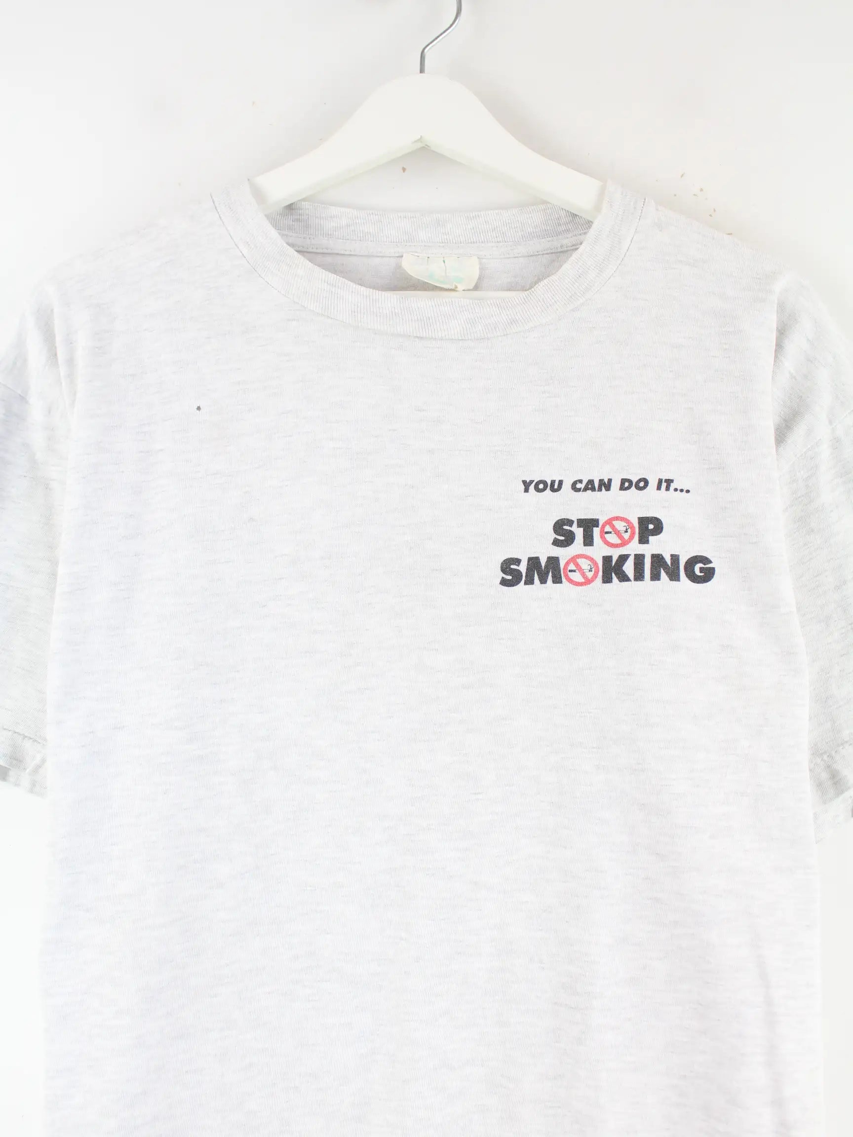 Vintage 90s Stop Smoking Print Single Stitch T-Shirt Grau L