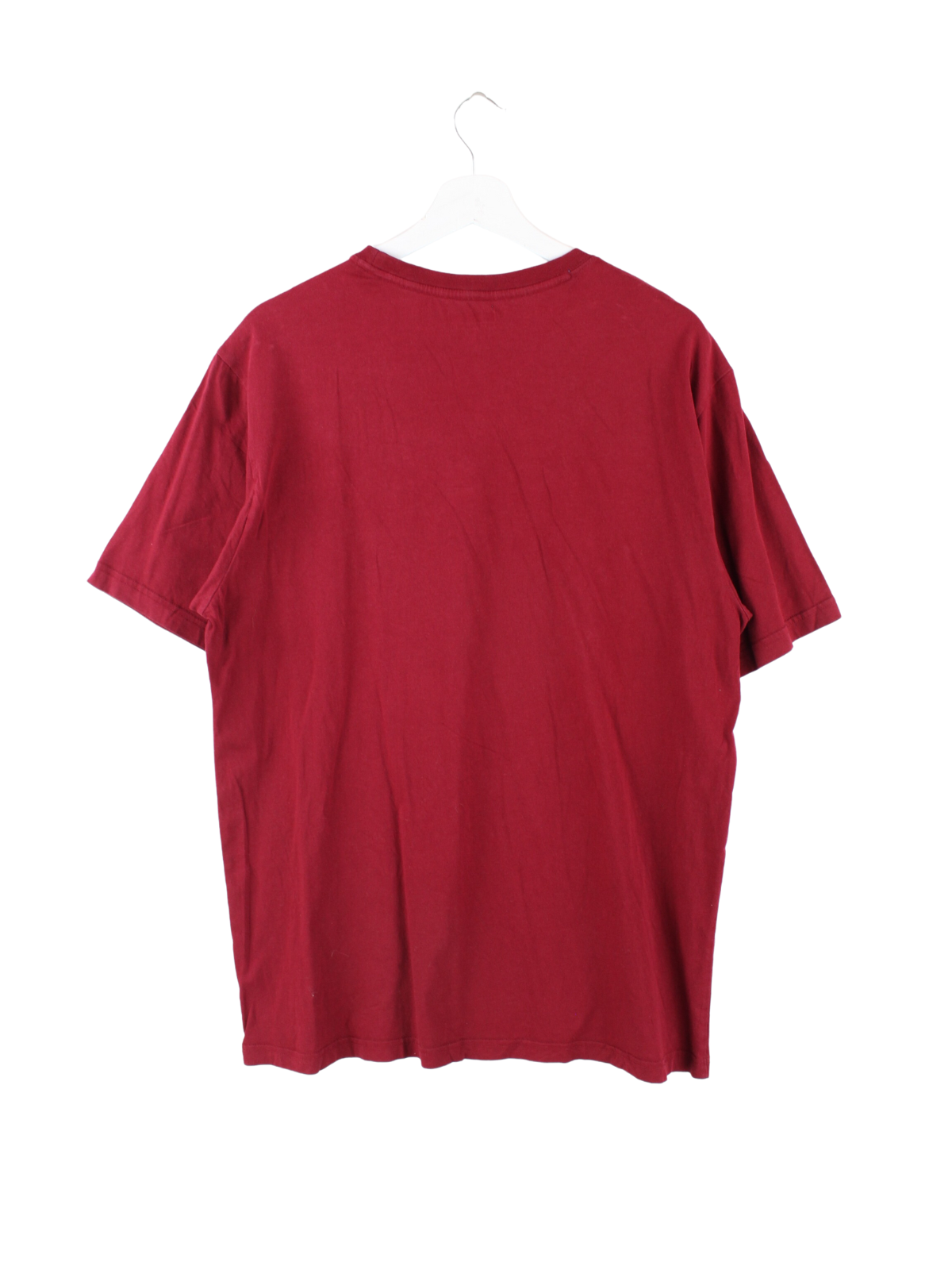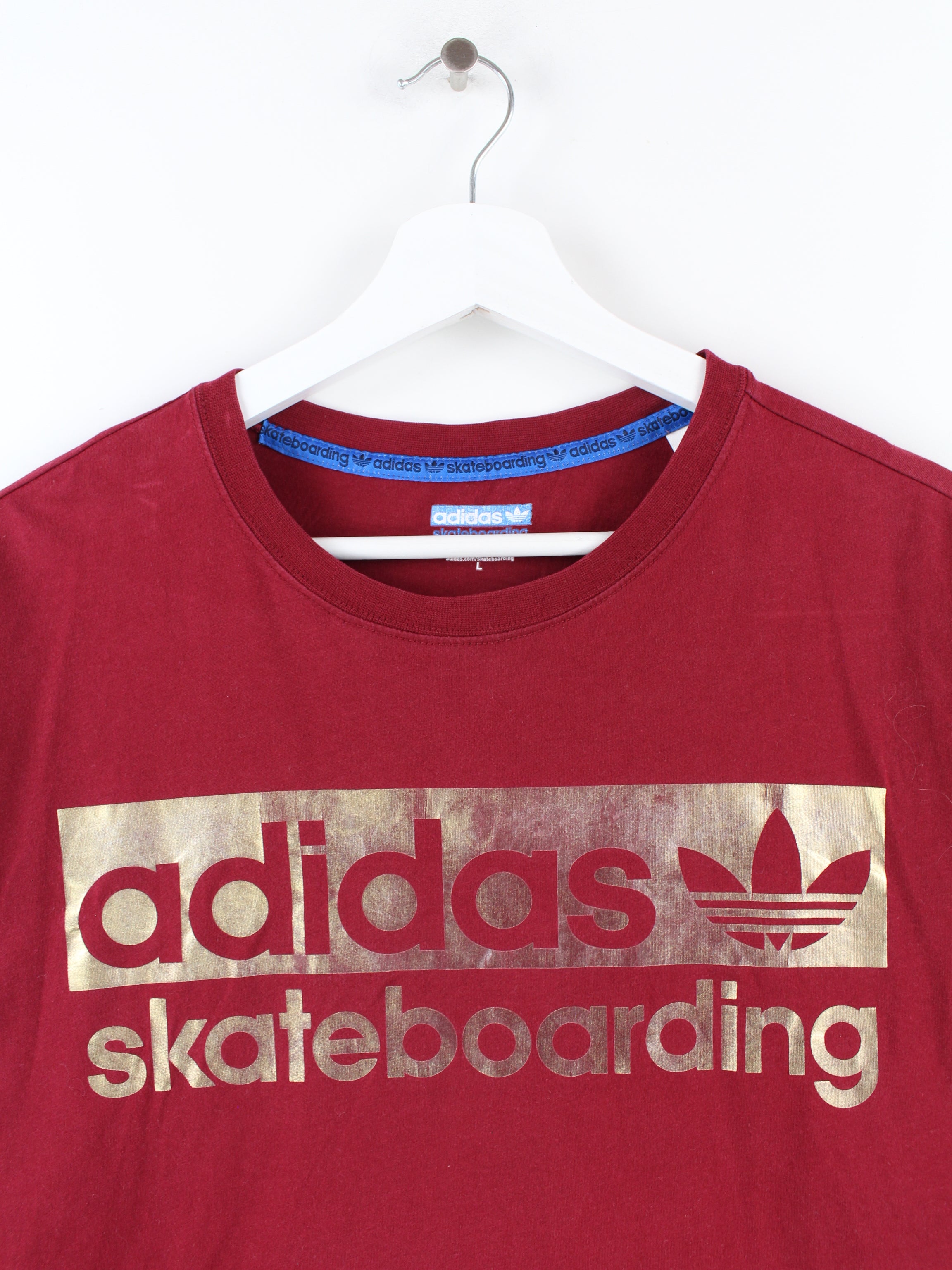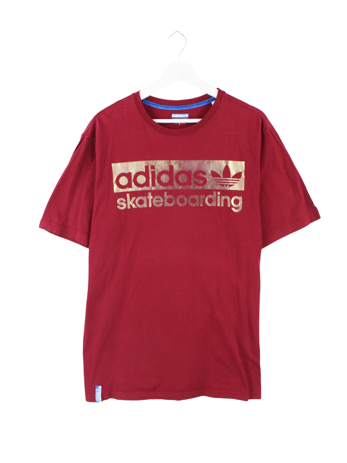 Rotes Adidas Skateboarding T-Shirt mit goldenem Print.