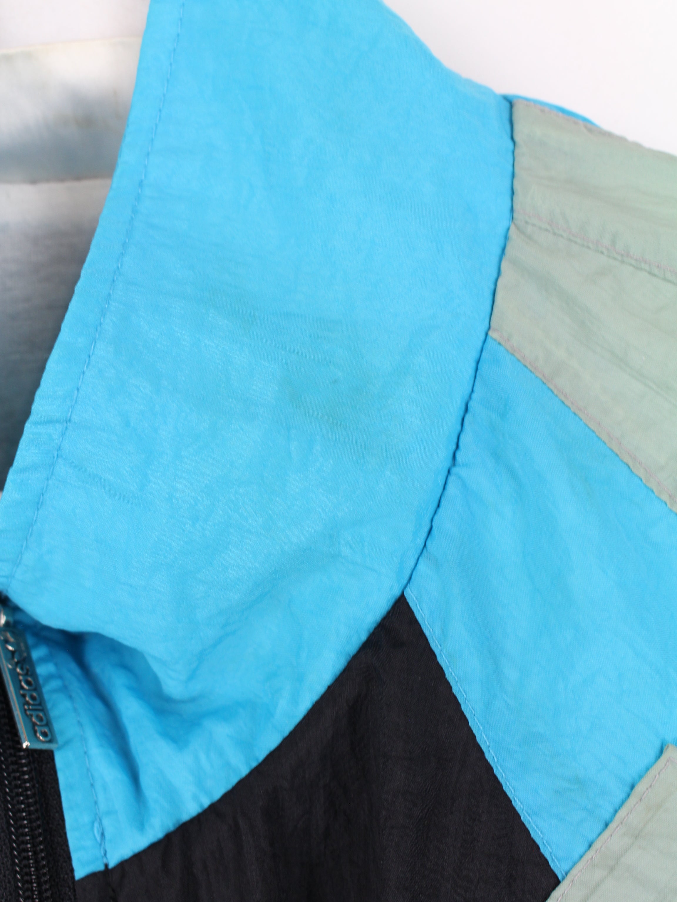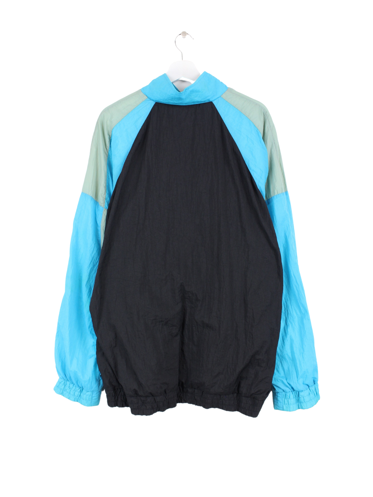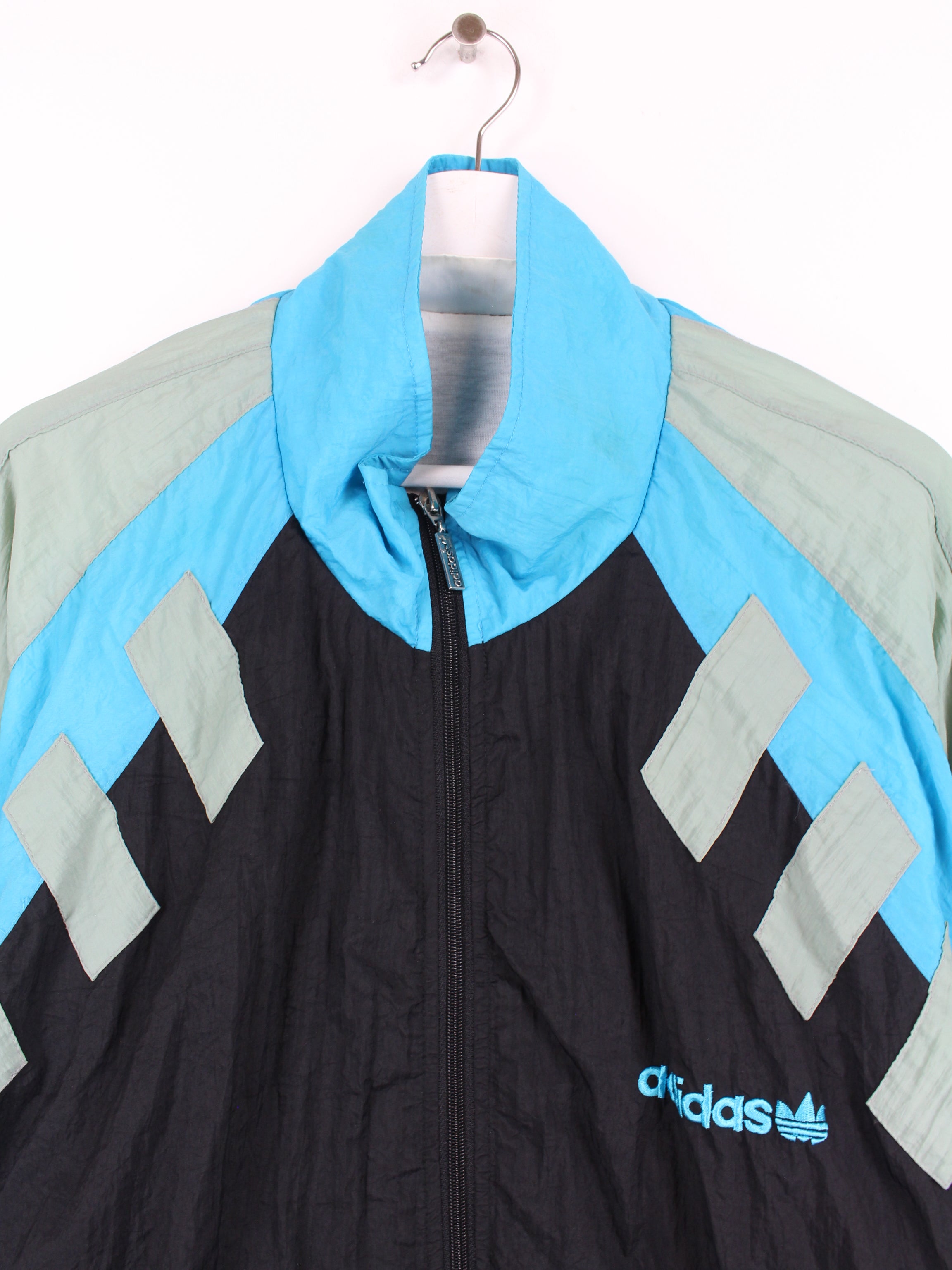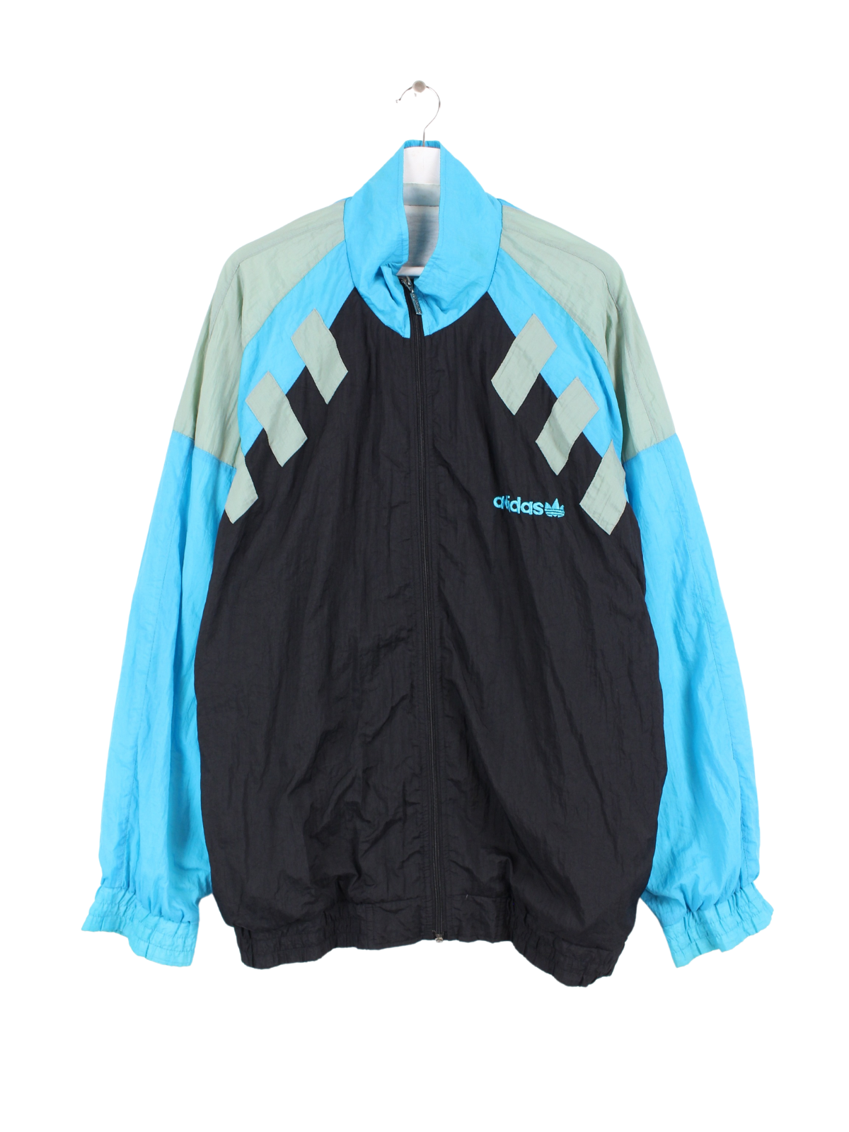 Schwarz blaue Vintage Adidas Trainingsjacke aus den 90er Jahren.