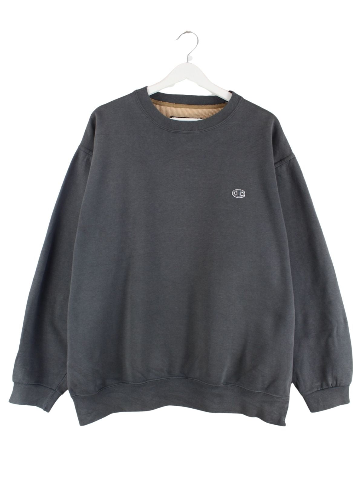Grauer Sweater von Champion in Größe XL. Er ist aus einer Baumwollmischung angefertigt. Den Zustand würden wir als 'In Ordnung' bezeichnen (vergl. Bilder).