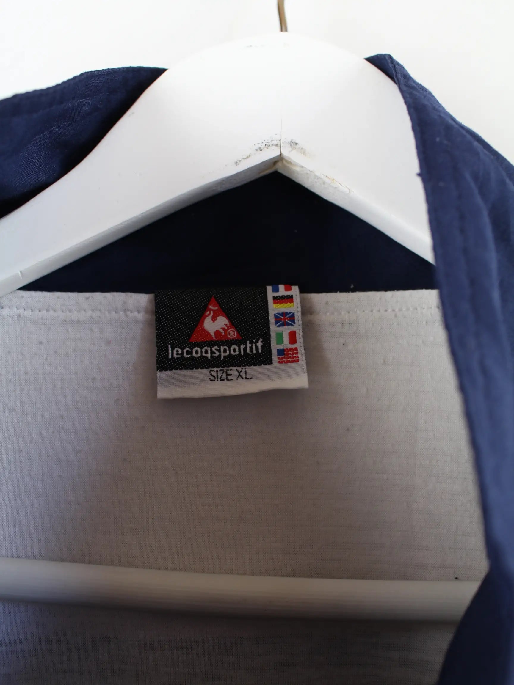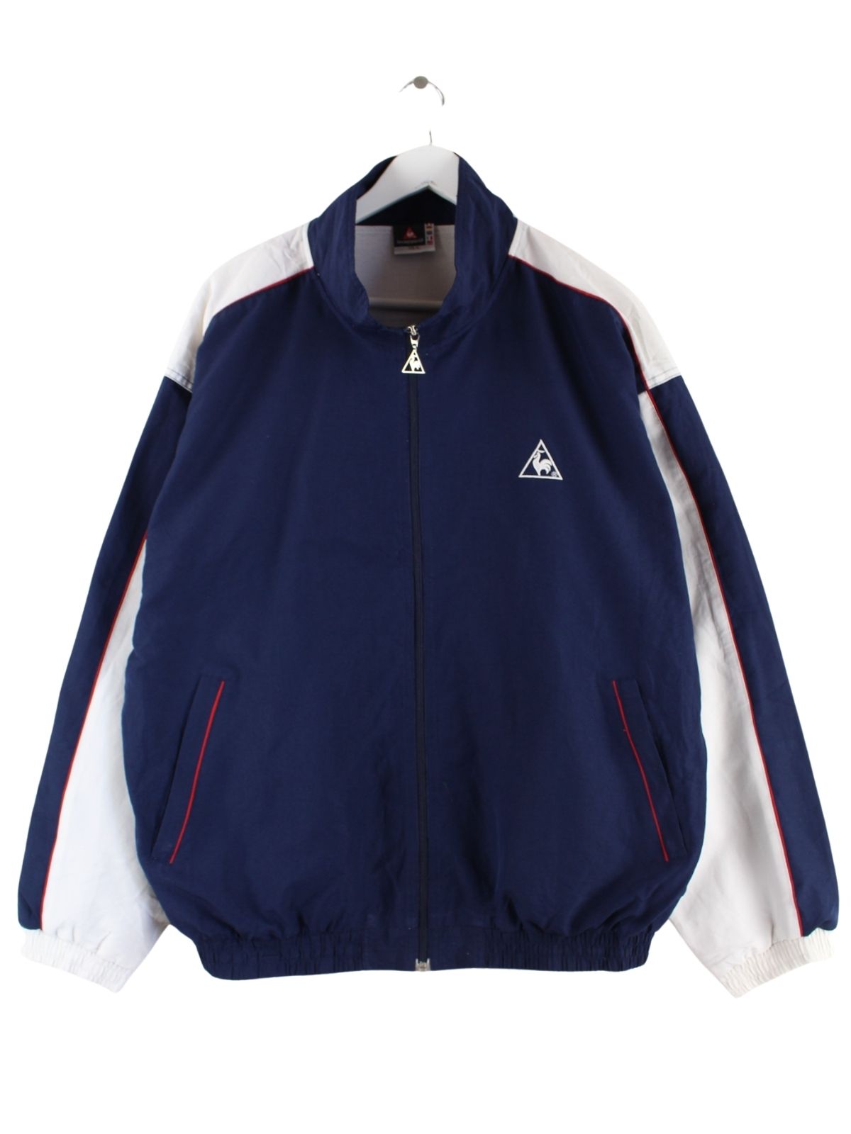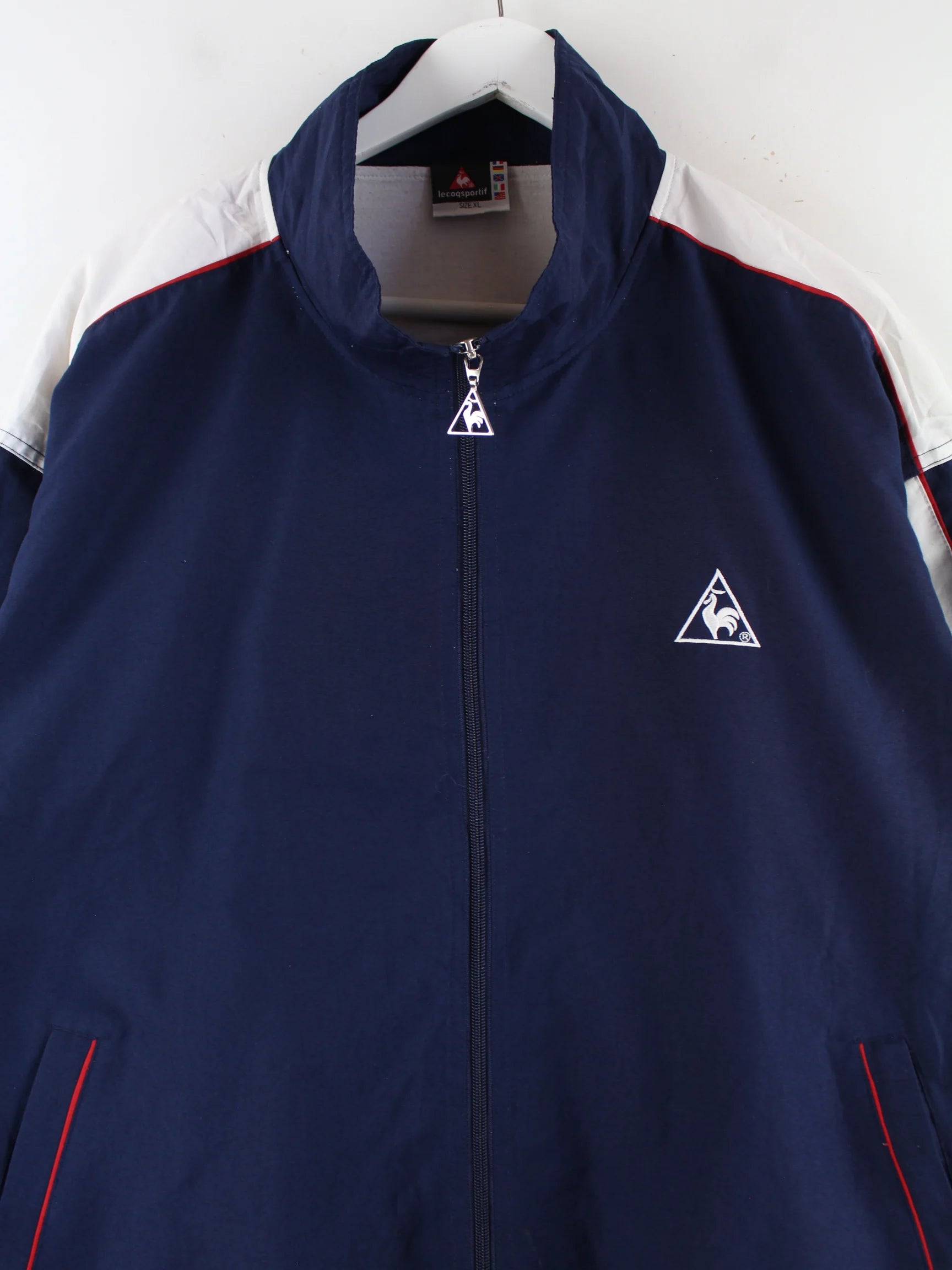 Trainingsjacke aus dem Hause Le Coq Sportif in Größe XL. Sie ist aus Synthetik angefertigt und in Blau zu bekommen.