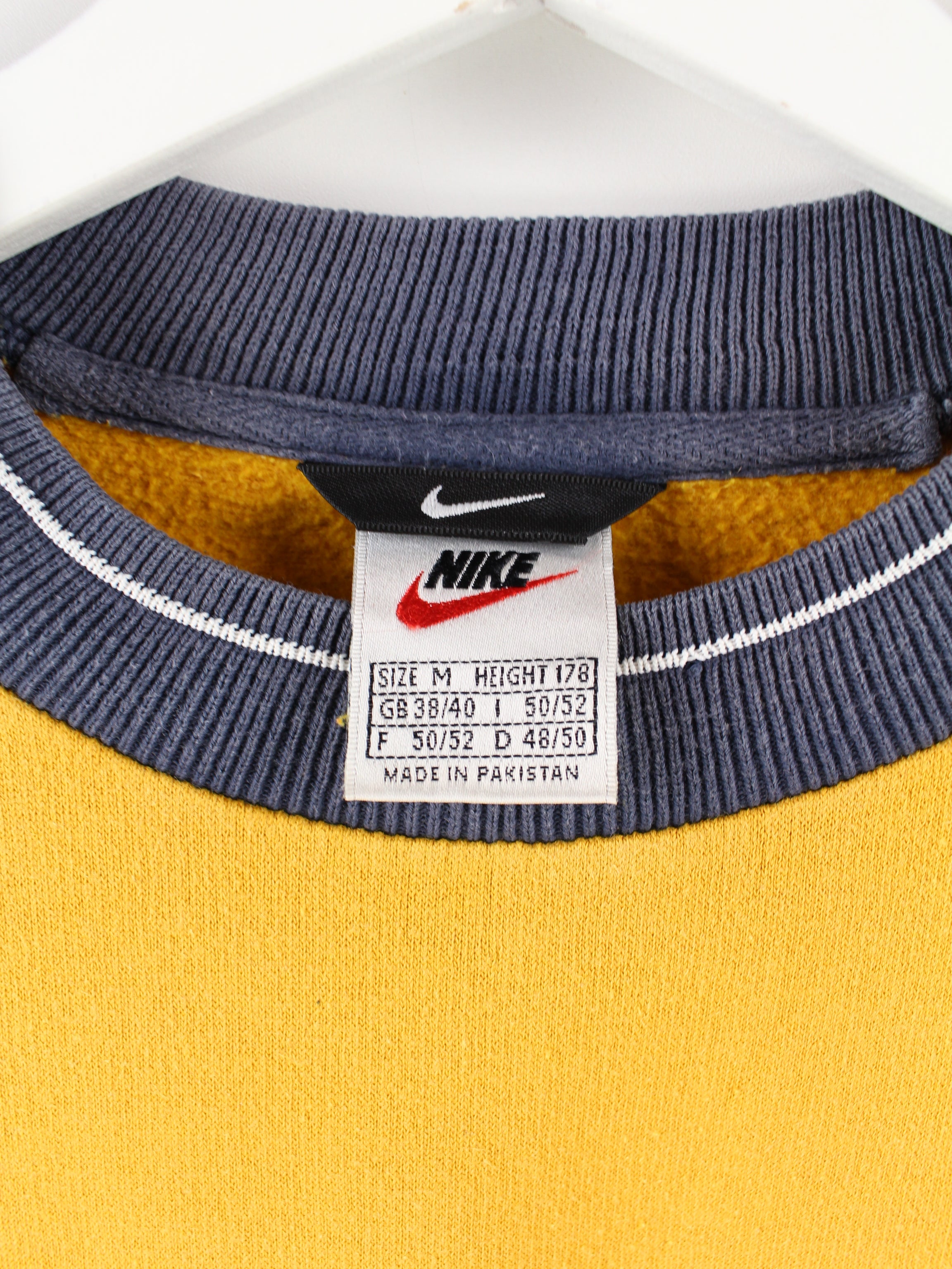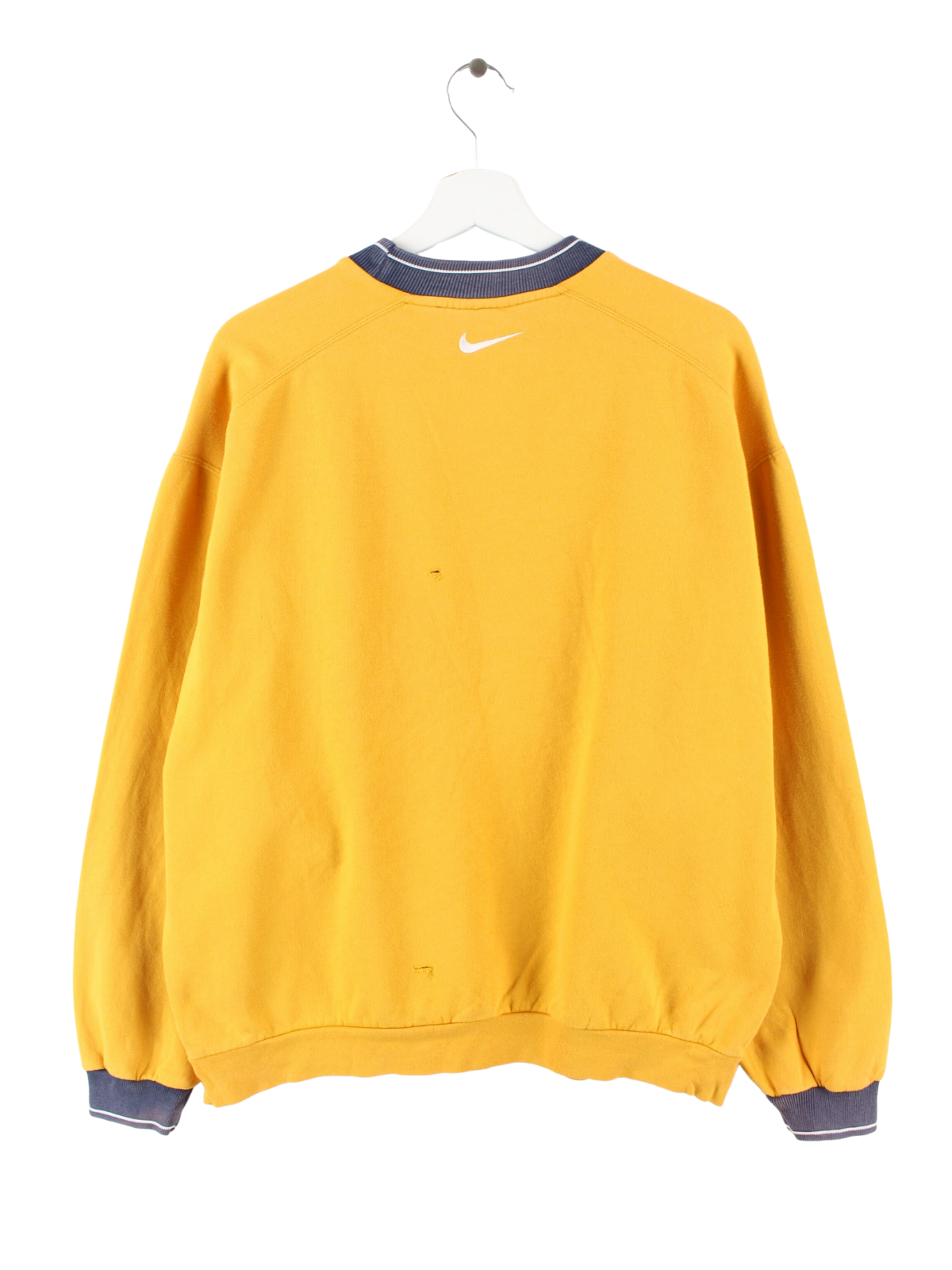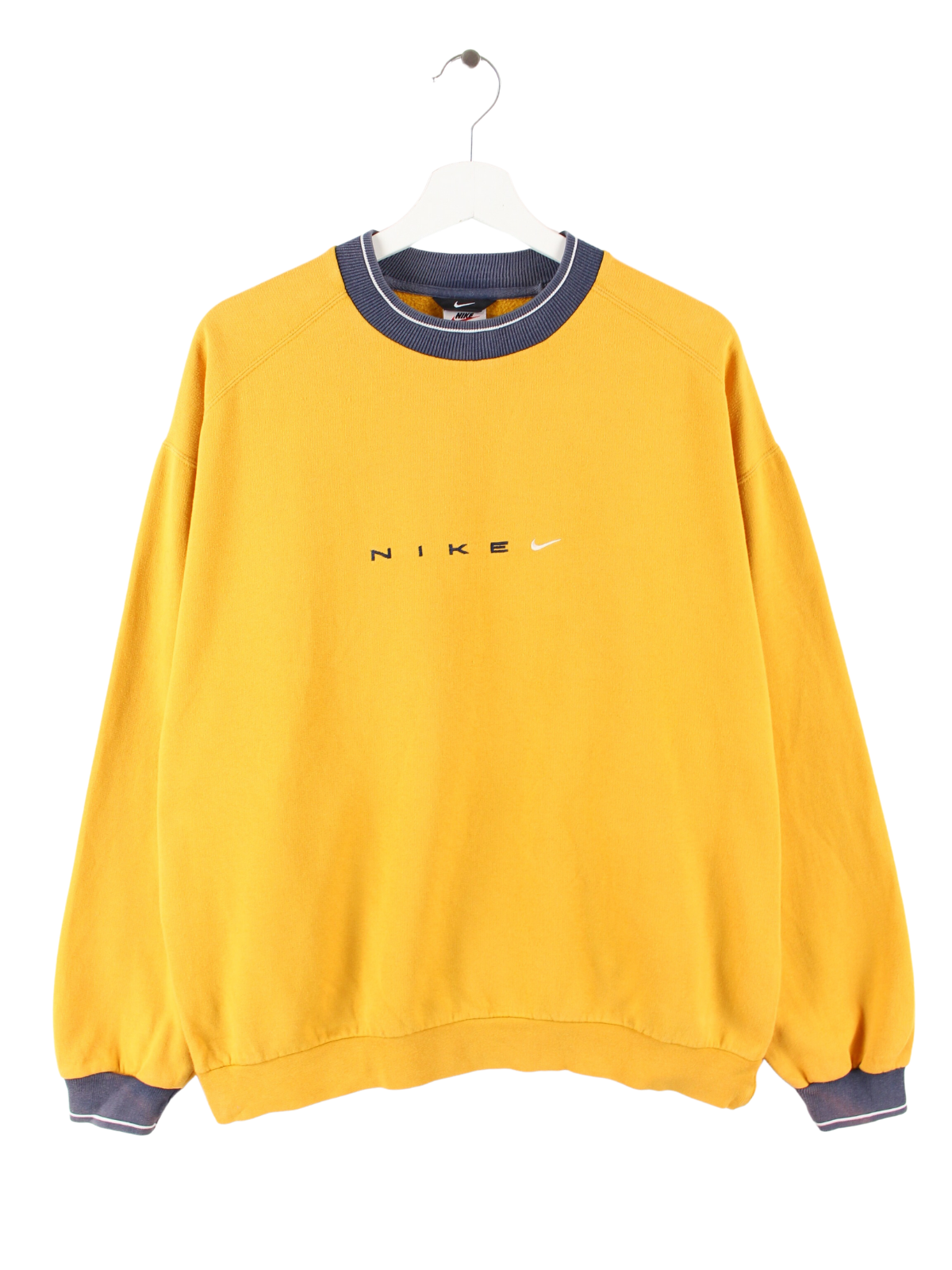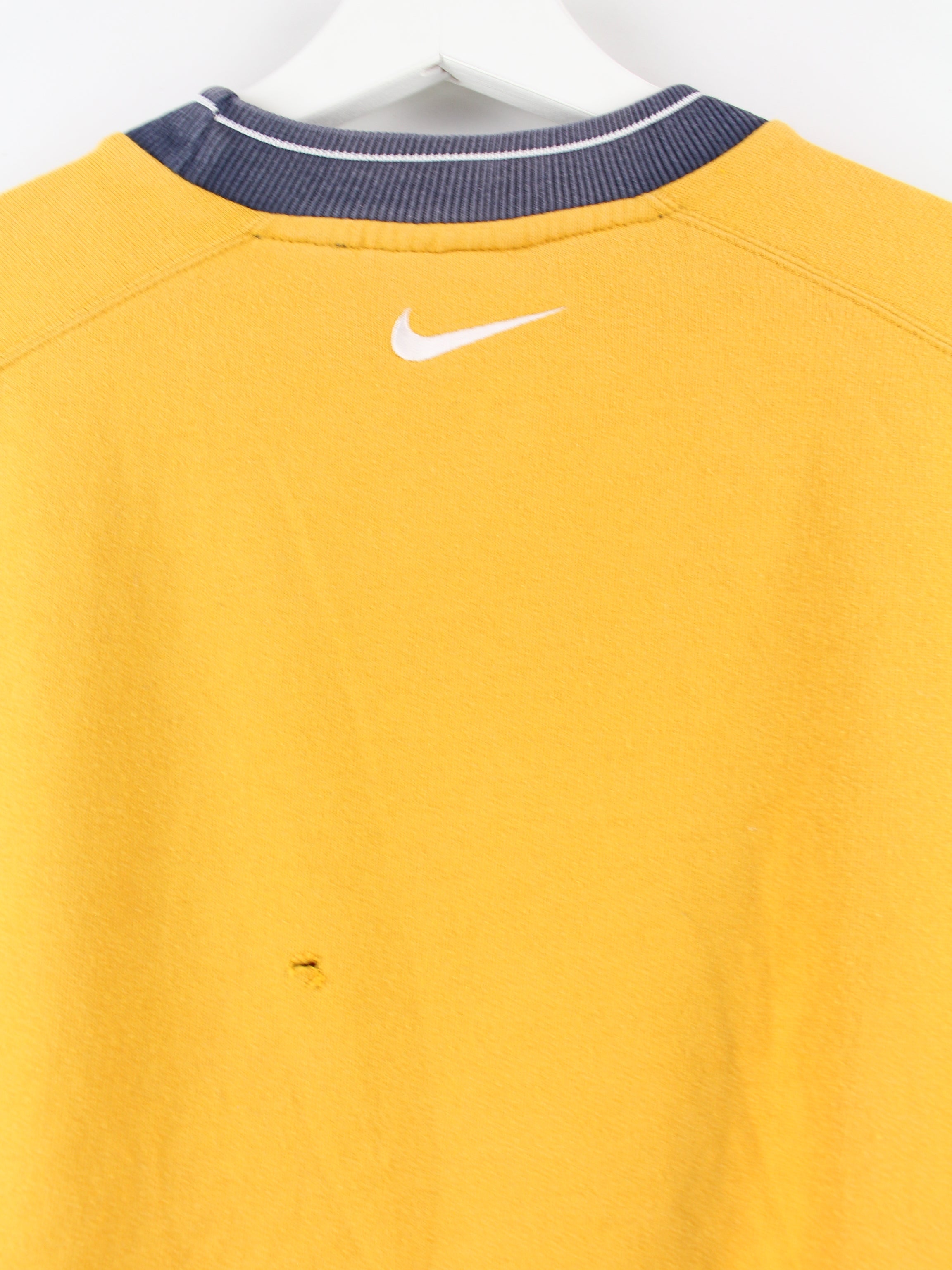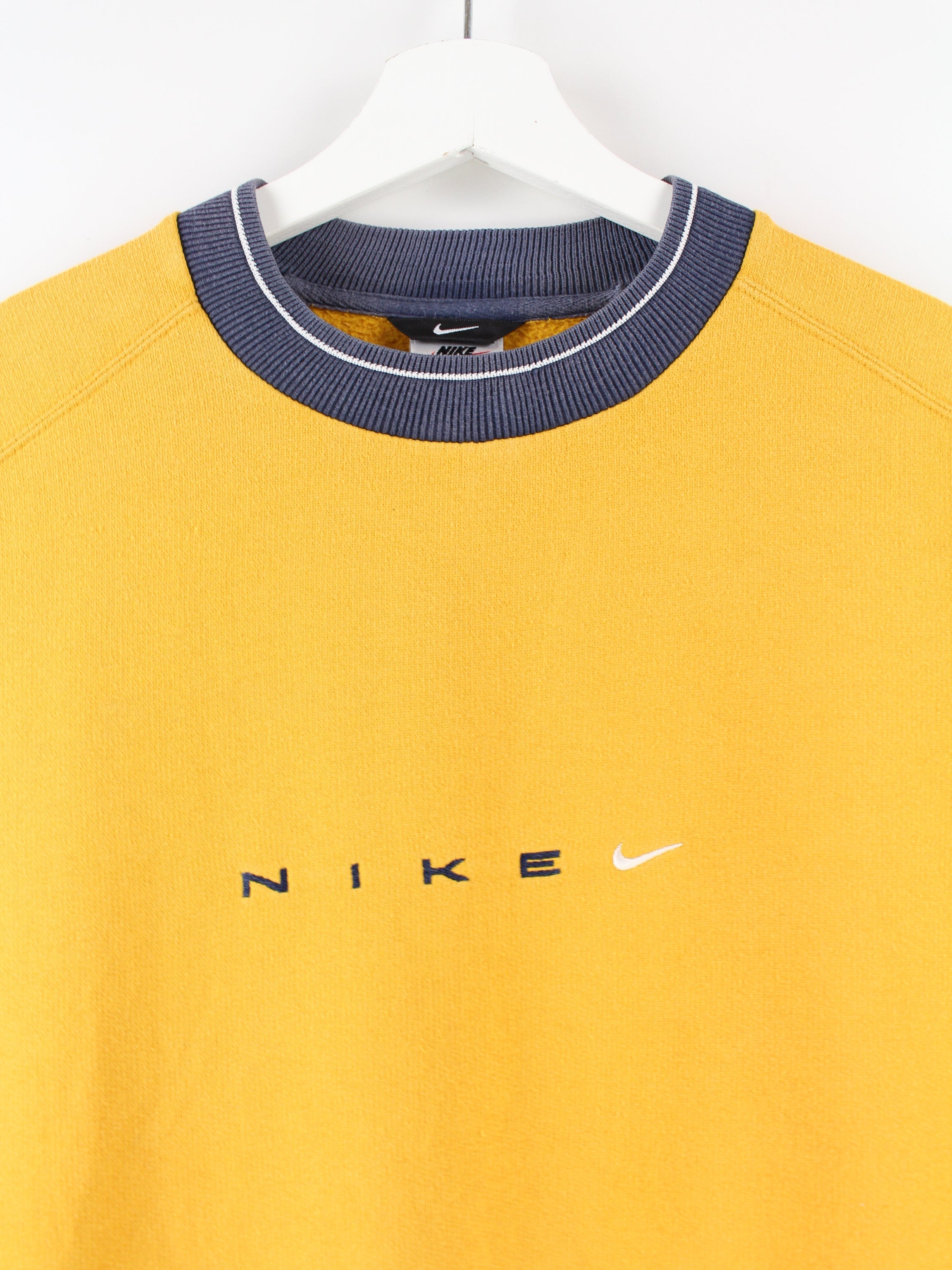 Gelber Vintage Nike Sweater aus den 90s mit aufgesticktem Logo.