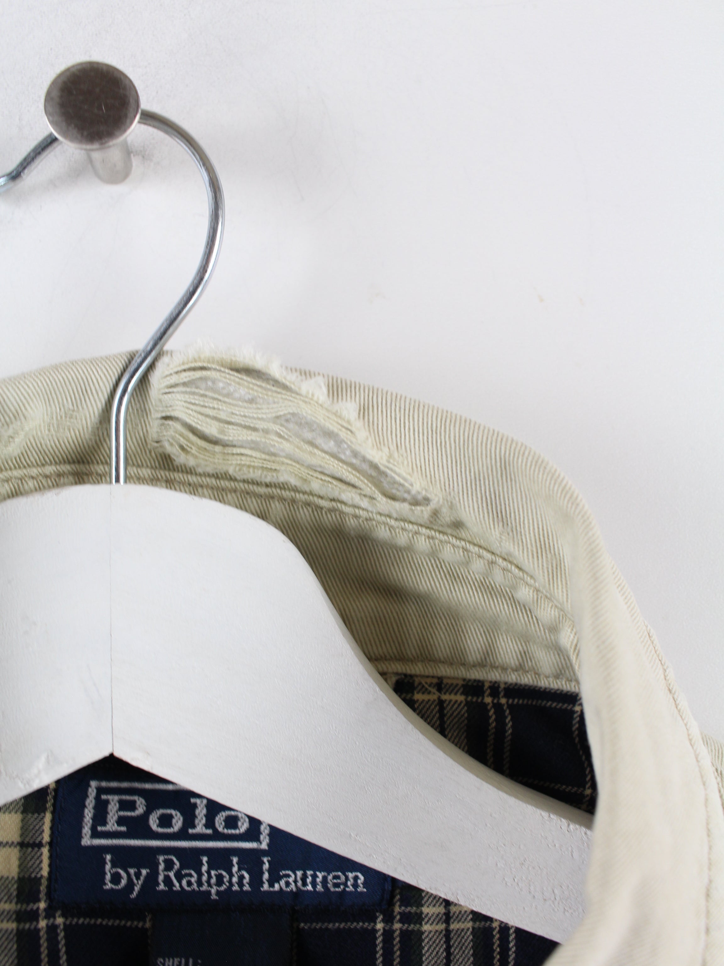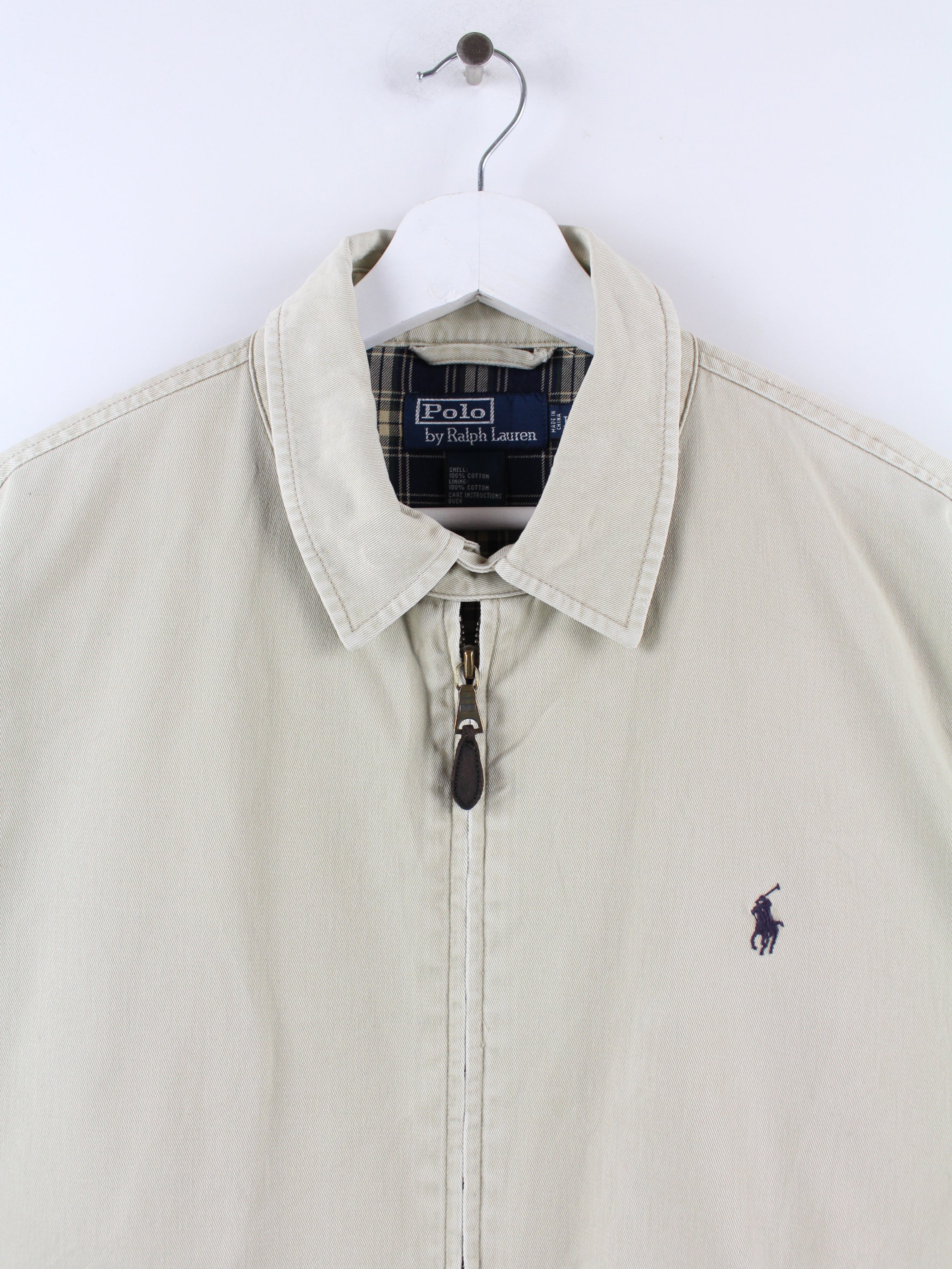 Beige Ralph Lauren Harrington Jacke mit schwarzem aufgesticktem Reiter.