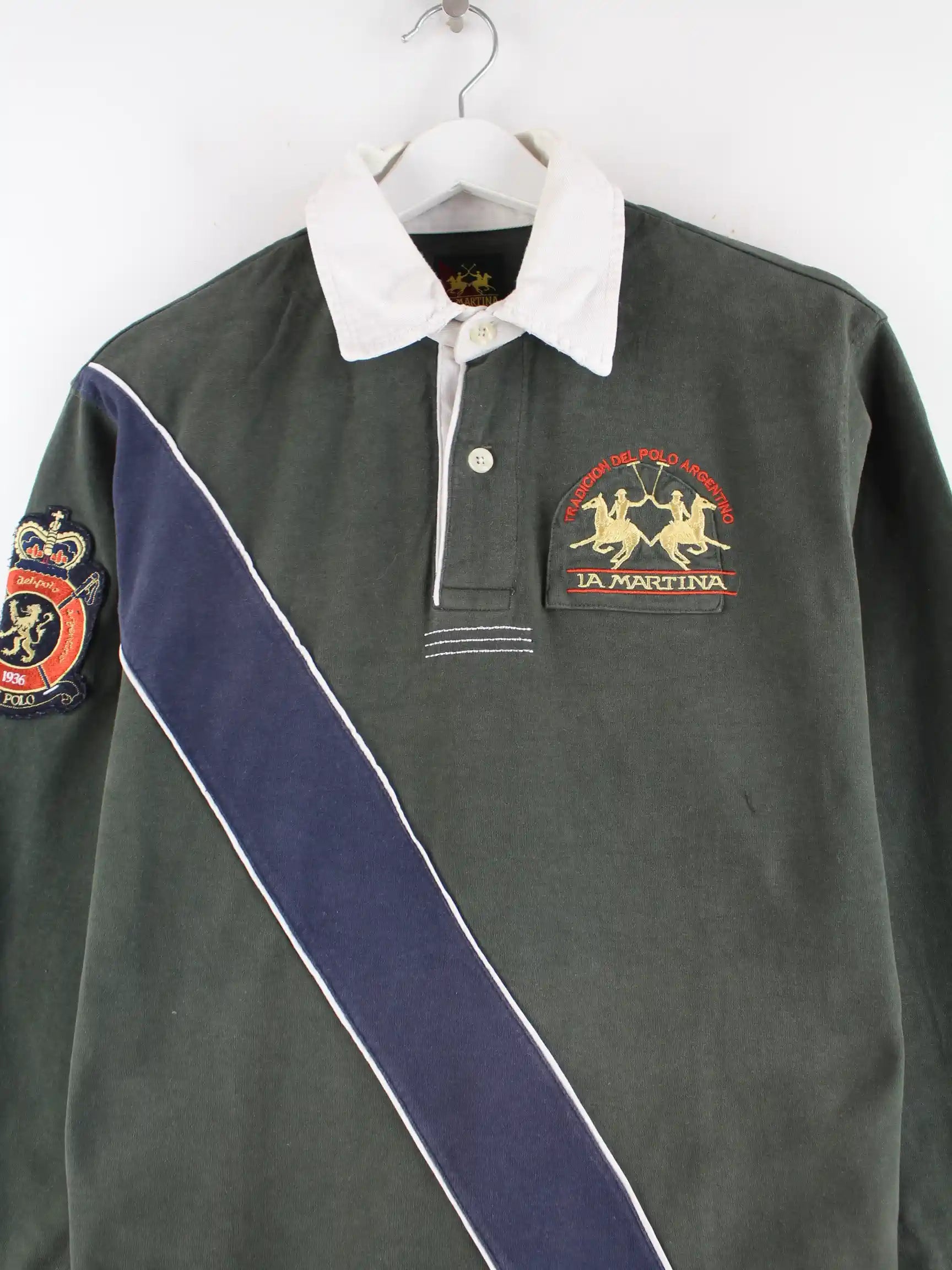 Lonsdale 80s Vintage Striped Langarm Polo Blau XL