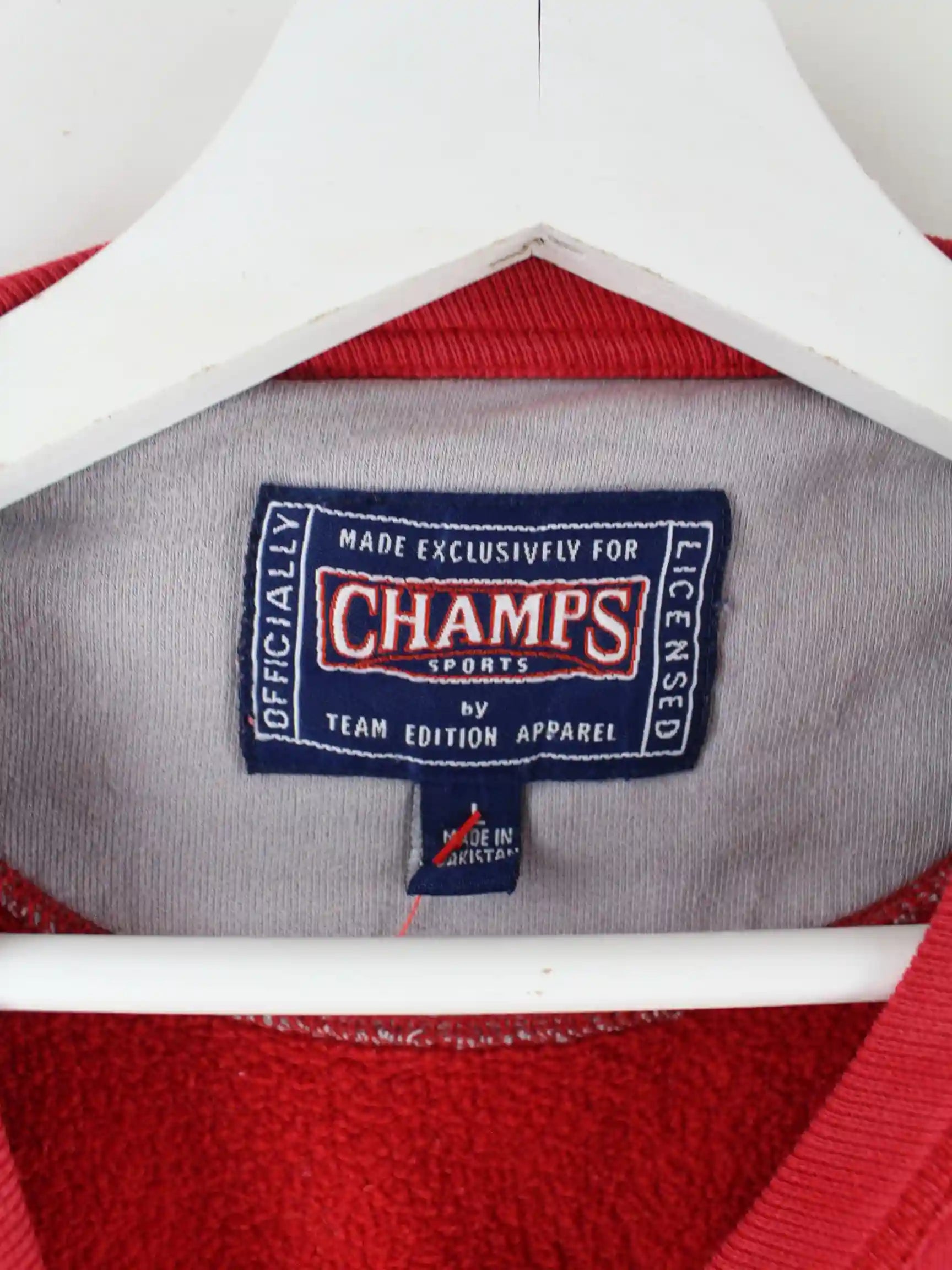 Sweater vom Label Champs mit Stickereien in Größe L. Er ist aus einer Baumwollmischung gemacht und in Rot bei uns vorrätig.