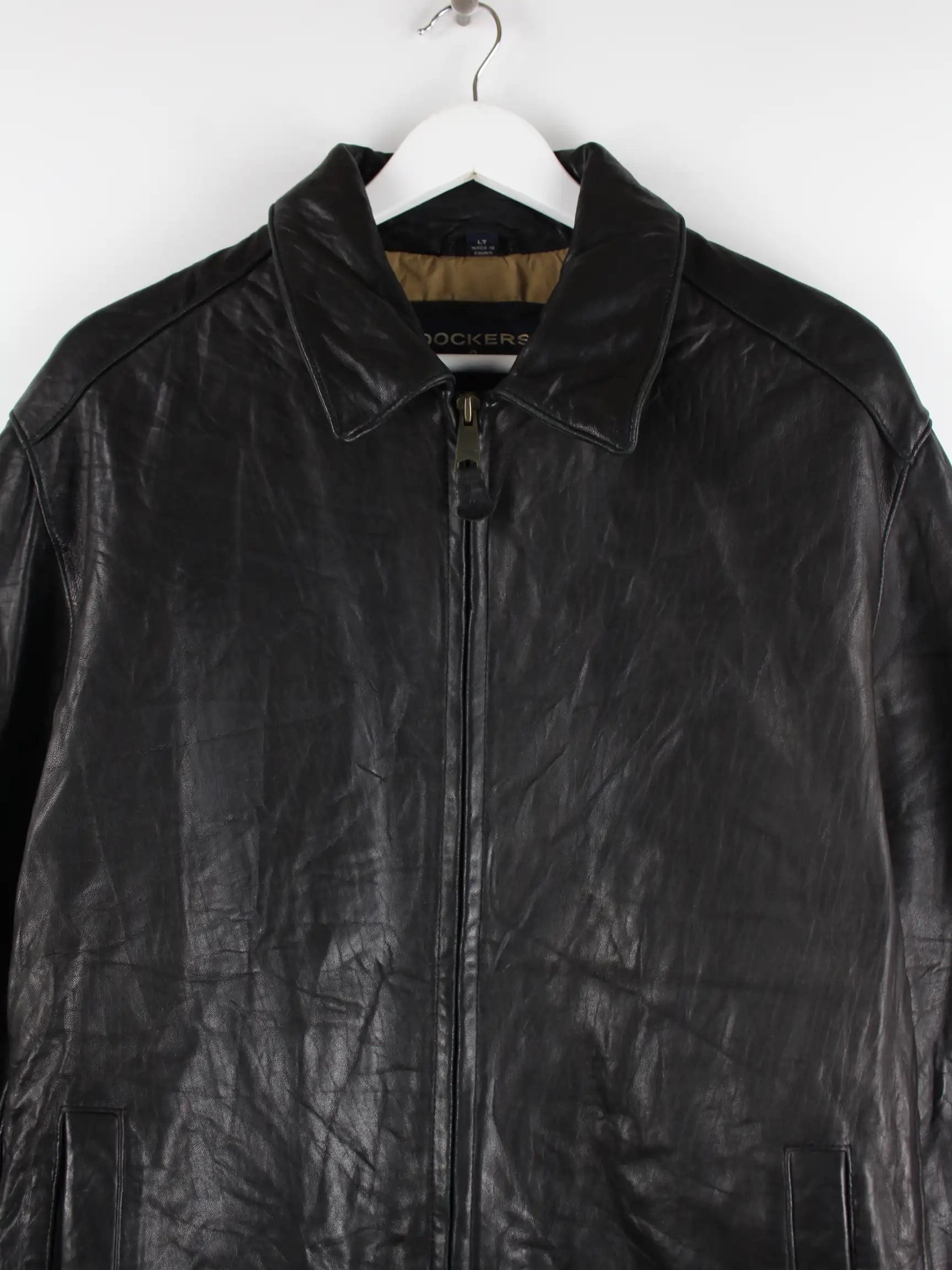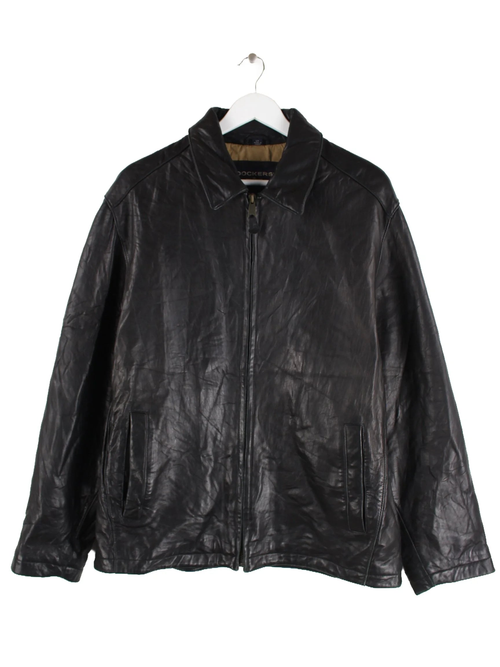 Schwarze Jacke des Labels Dockers in Größe XL. Sie ist aus Leder produziert und in sehr gutem Zustand lieferbar.