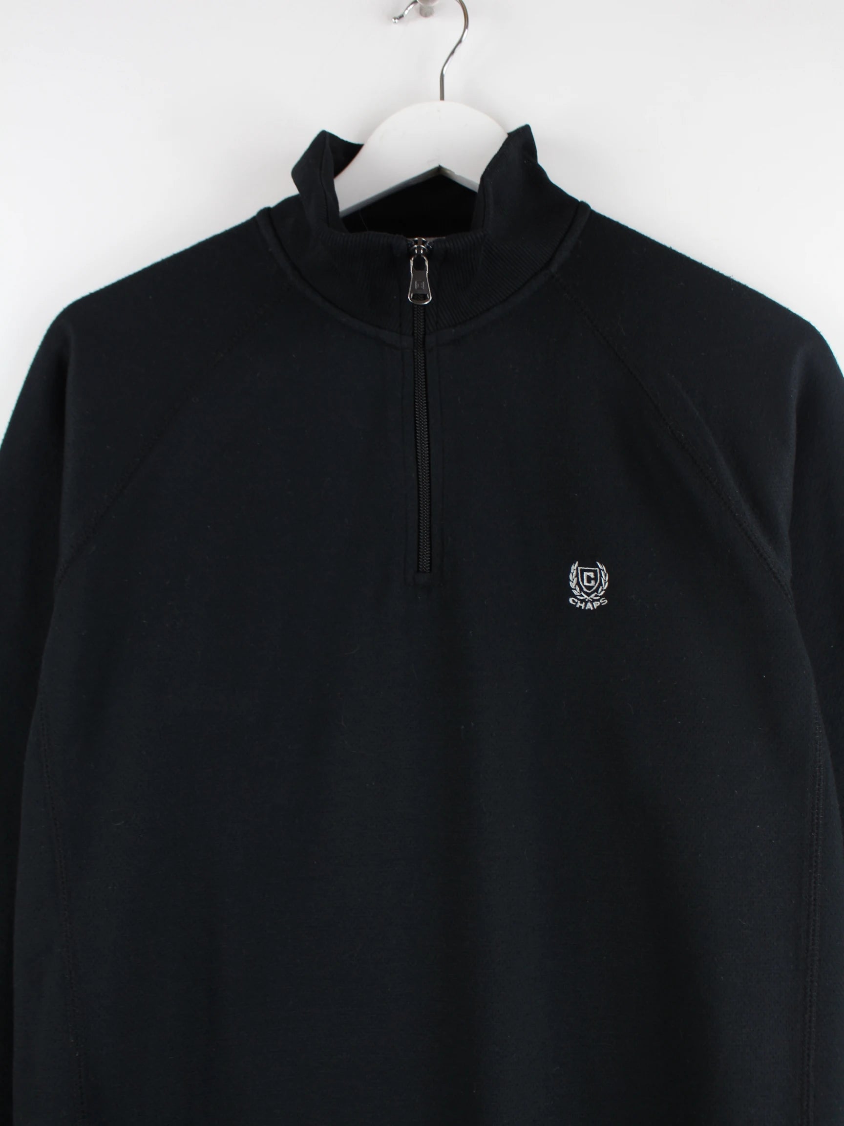 Schwarzer Sweater mit halbem Reißverschluß vom Label Chaps by Ralph Lauren in Größe L. Er ist aus einer Baumwollmischung angefertigt und in sehr gutem Zustand zu haben.