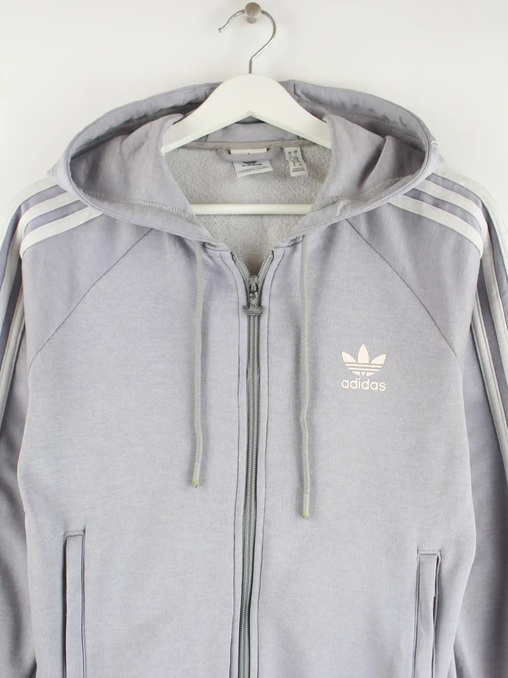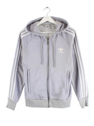 Hoodie der Brand Adidas mit Zip in Größe S. Er ist aus einer Baumwollmischung hergestellt und in Grau vorrätig.
