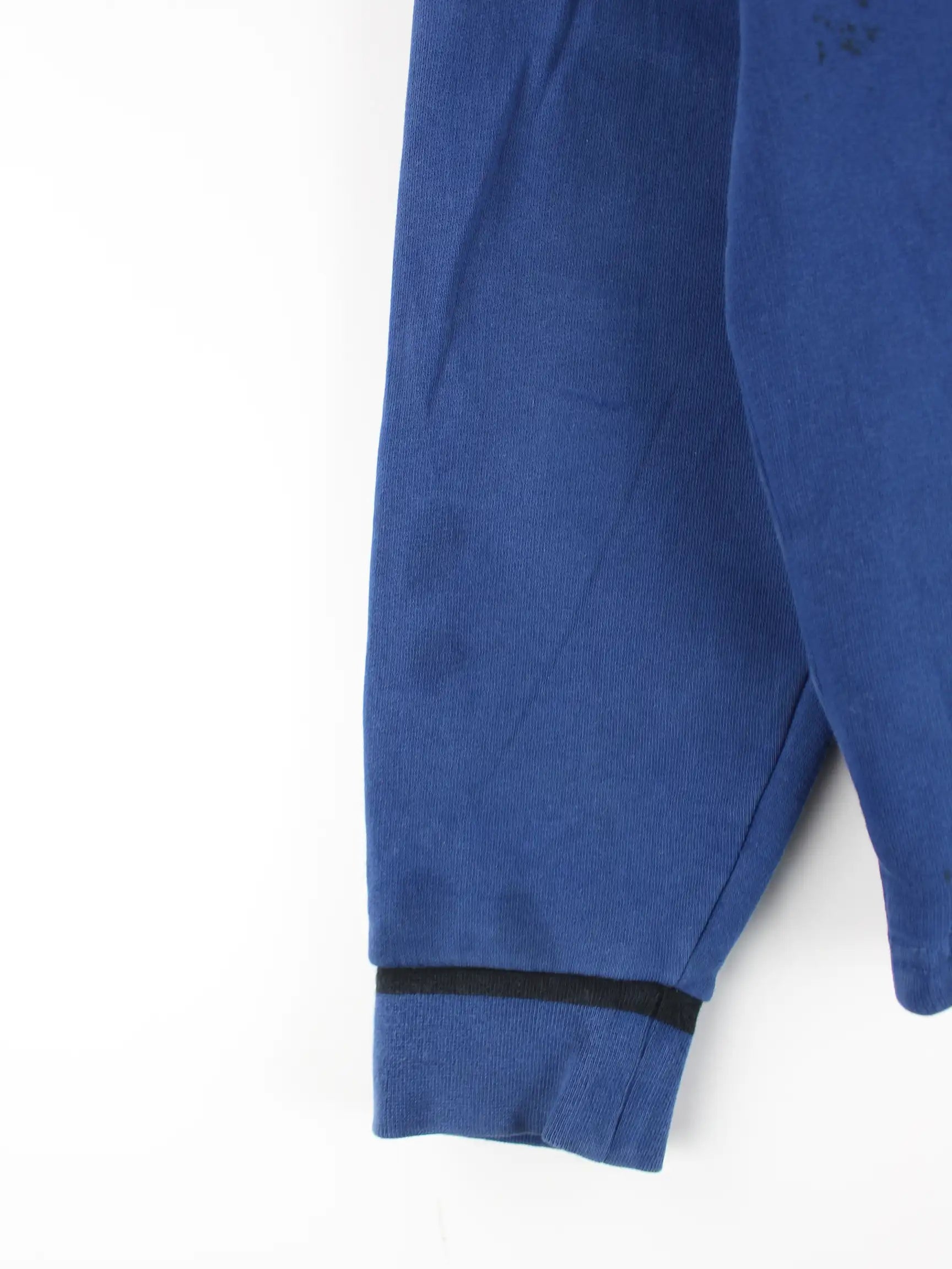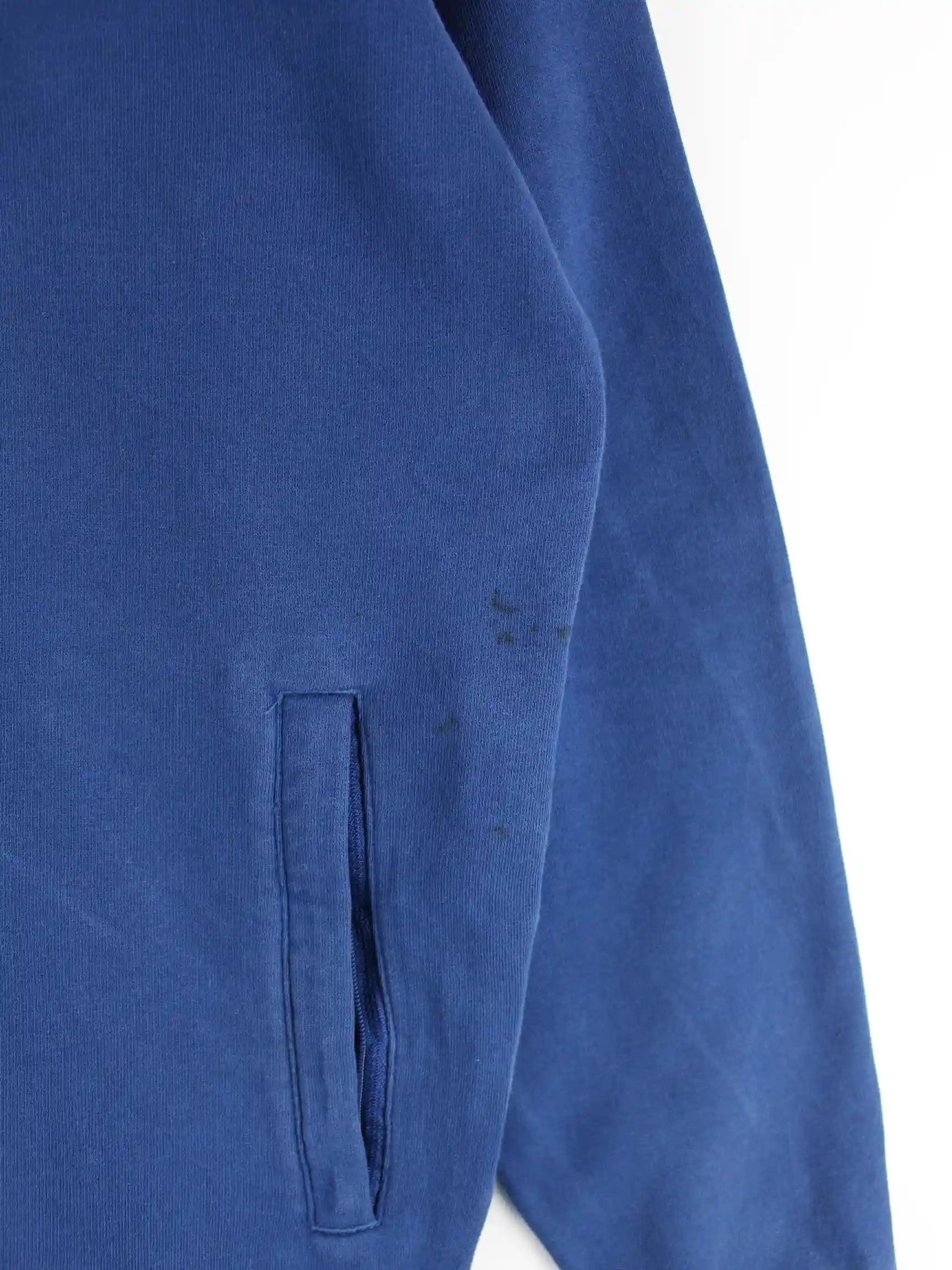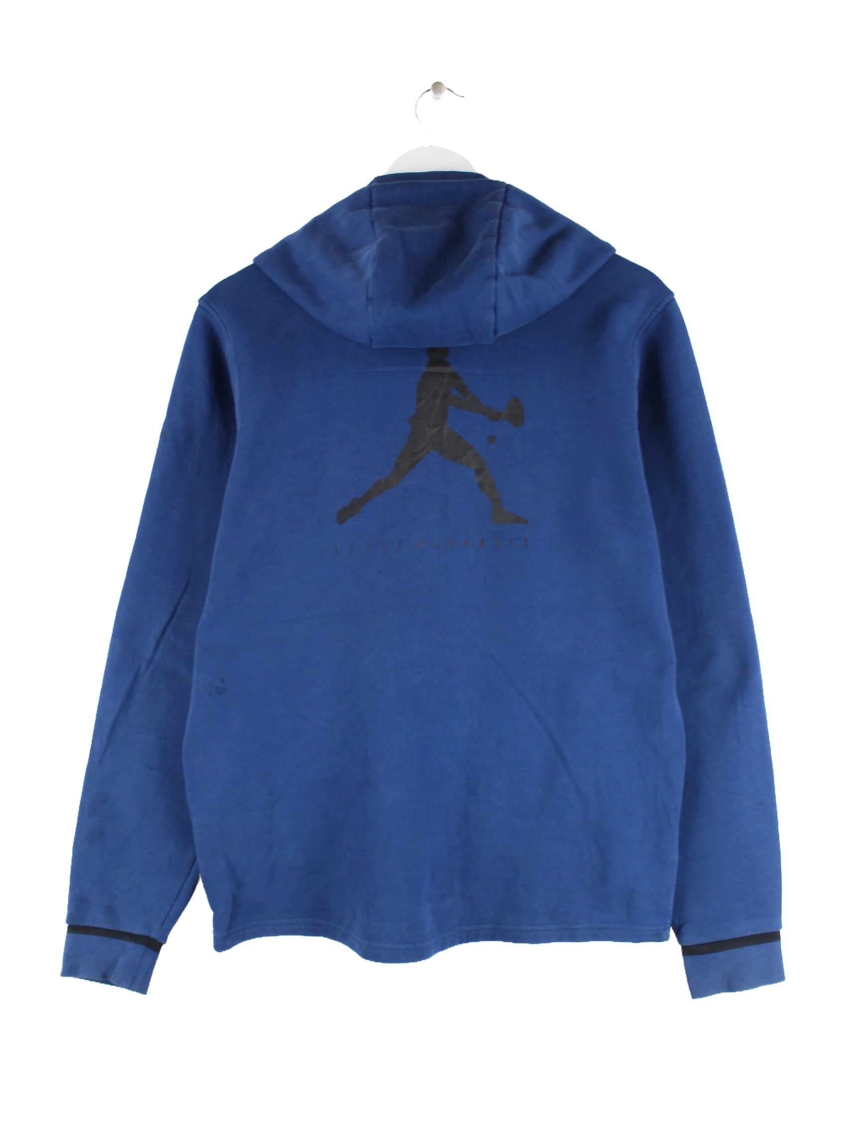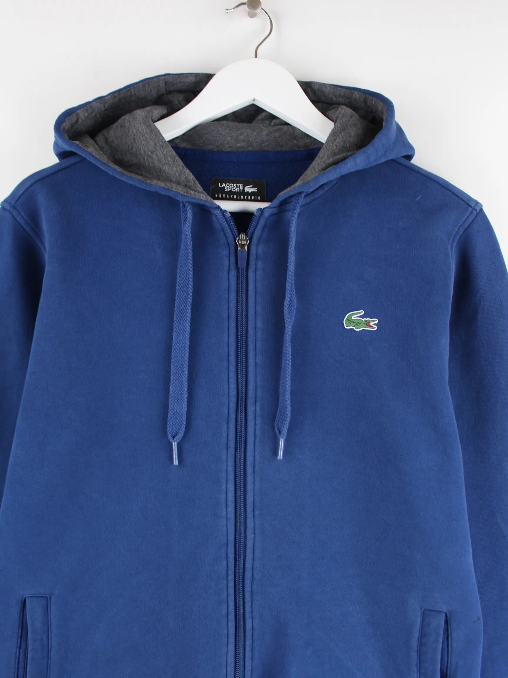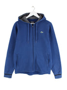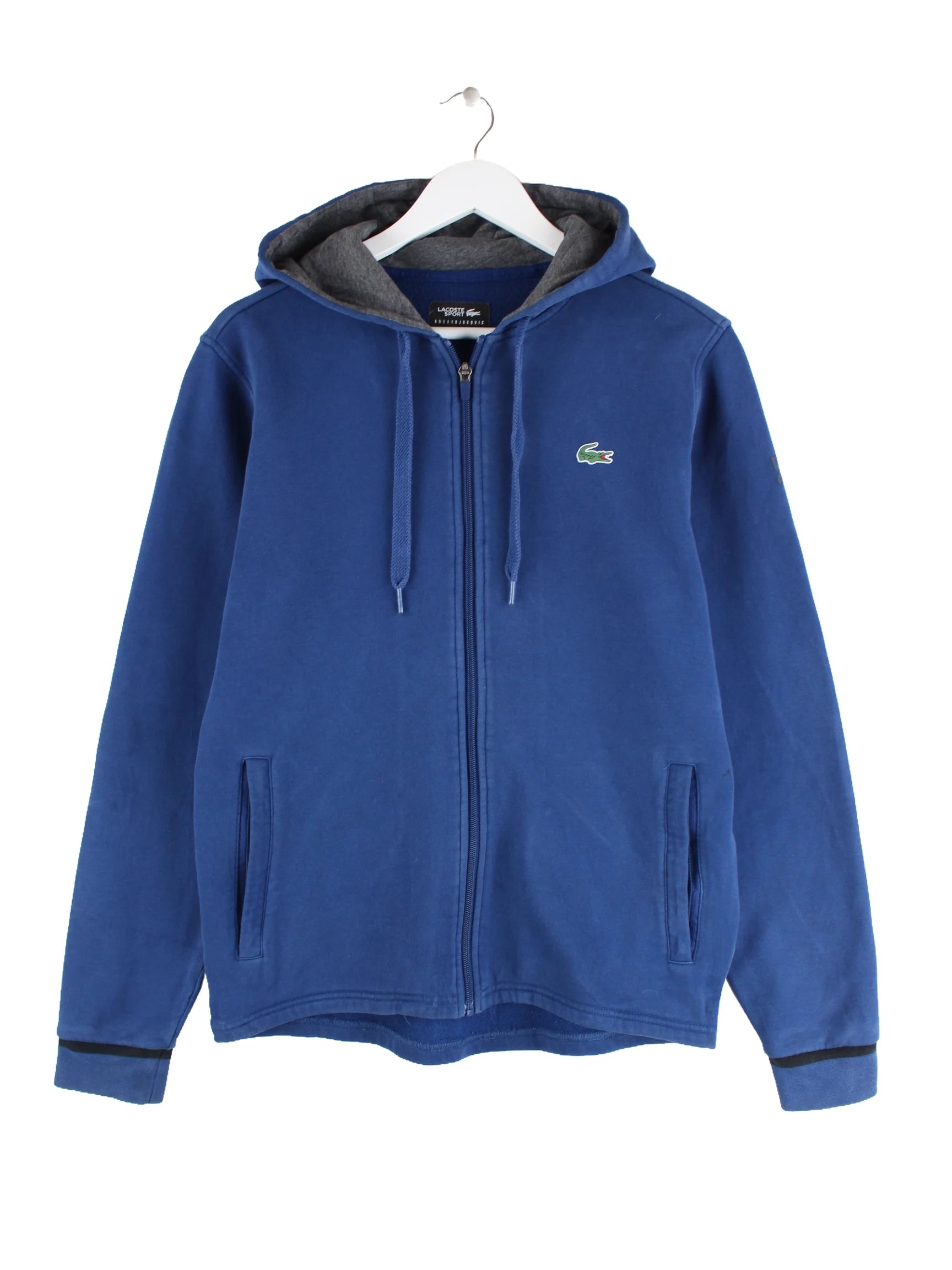 Hoodie des Labels Lacoste mit langem Reißverschluß in Größe M. Er ist aus einer Baumwollmischung gefertigt und in Blau zu bekommen. Mit schönem Sport Print.