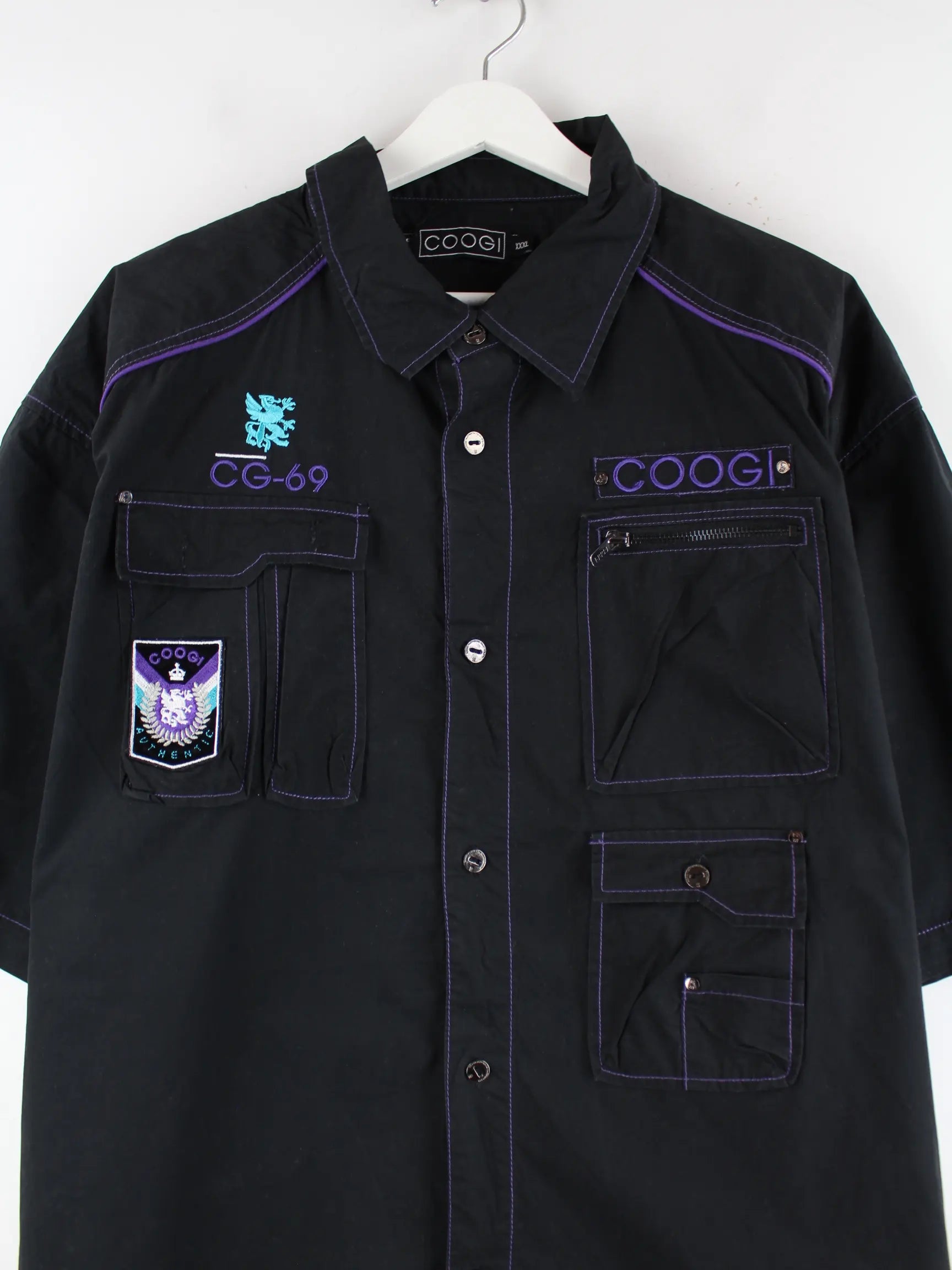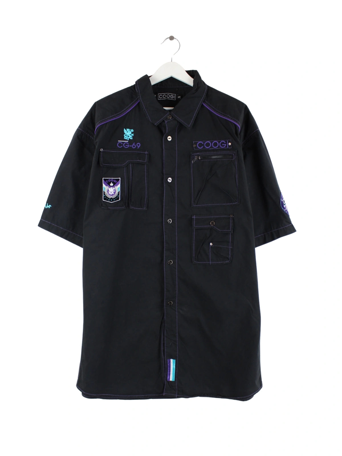 Coogi y2k Embroidered Kurzarm Hemd Schwarz 3XL