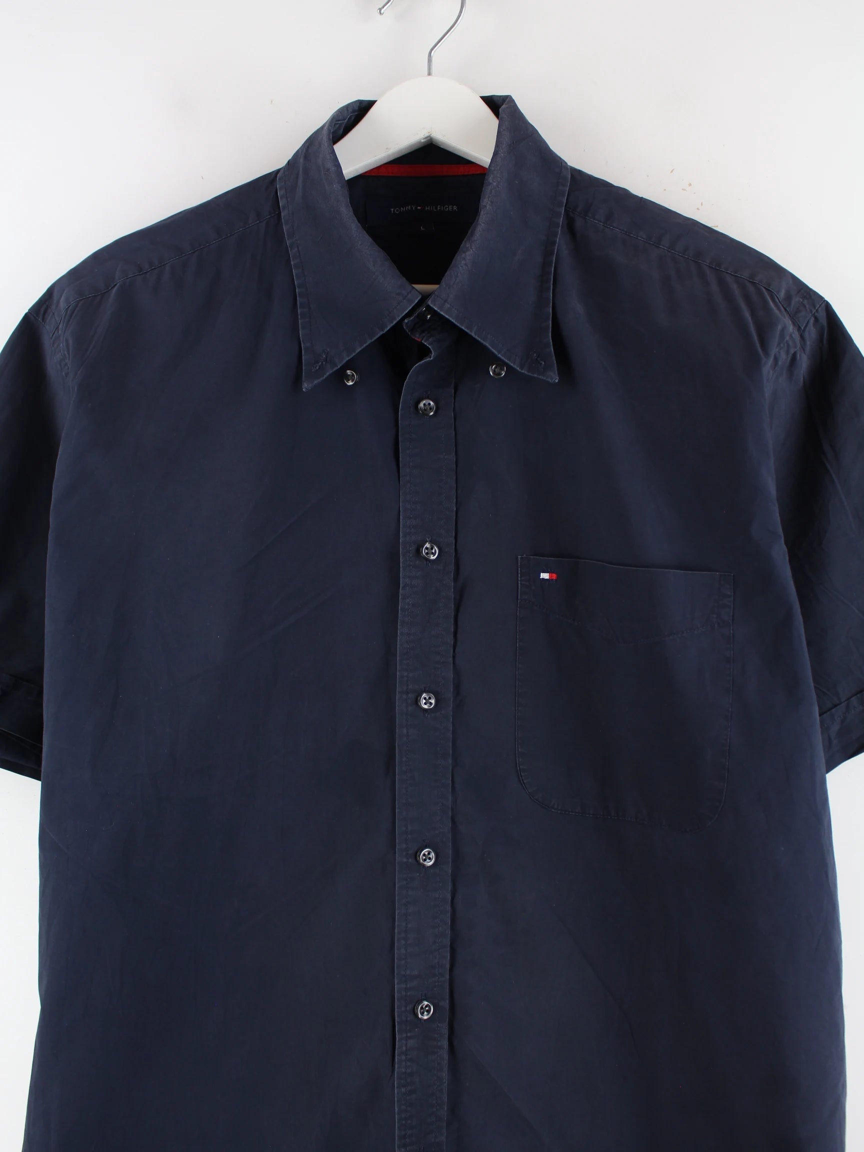 Freizeit Hemd der Brand Tommy Hilfiger in Größe L. Es ist aus Baumwolle hergestellt und in Blau im Bestand.