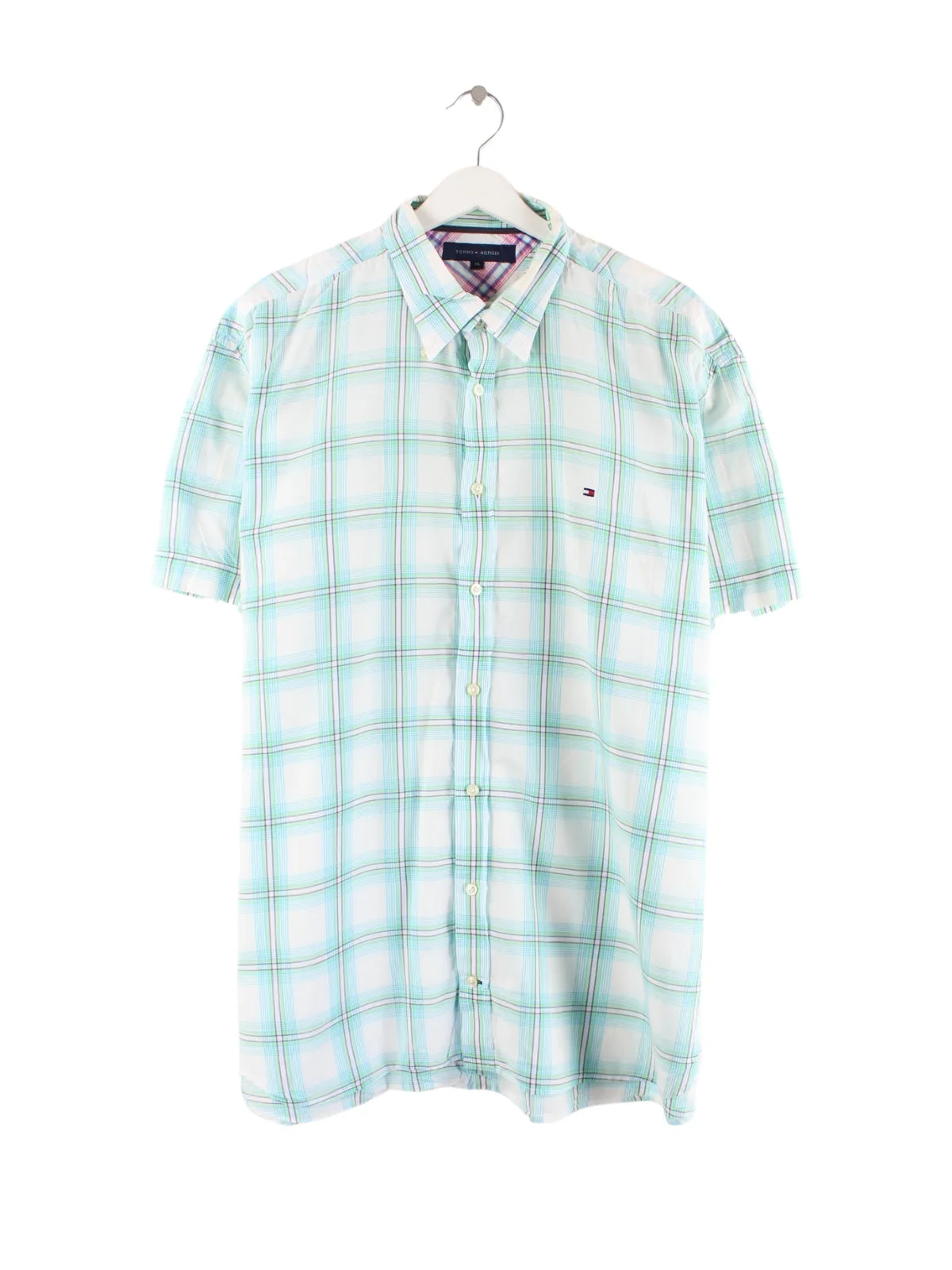 Freizeit Hemd der Brand Tommy Hilfiger in Größe XL. Es ist aus Baumwolle gemacht und in Türkis bei uns zu bekommen.