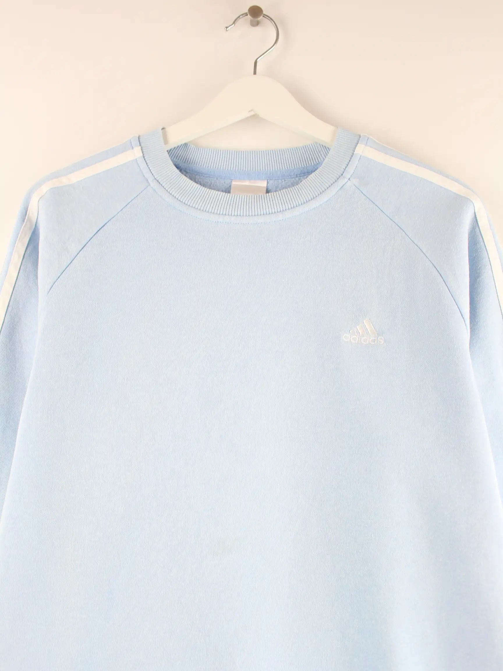 Sweater des Labels Adidas in Größe M. Er ist aus einer Baumwollmischung produziert und in Blau bei uns vorrätig.