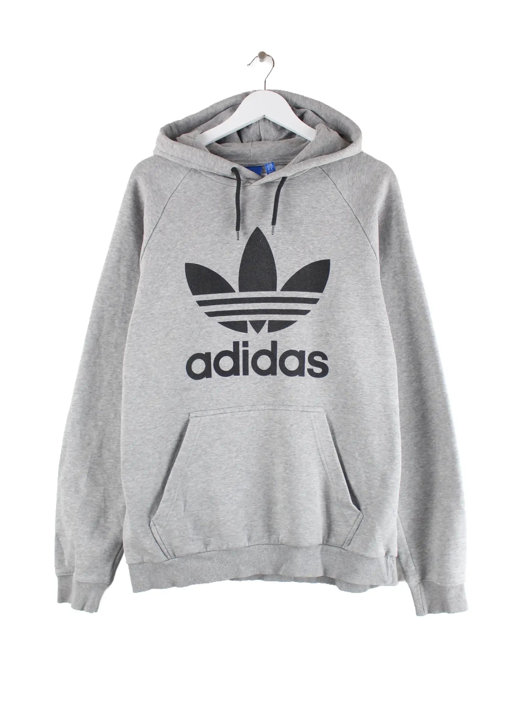 Grauer Hoodie der Marke Adidas in Größe L. Er ist aus einer Baumwollmischung hergestellt und in sehr gutem Zustand bei uns vorrätig.