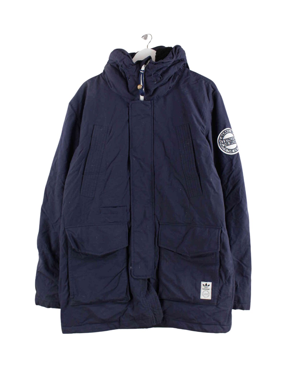 Blaue Jacke des Labels Adidas in Größe S. Sie ist aus Synthetik produziert und in gutem Zustand in Stock.